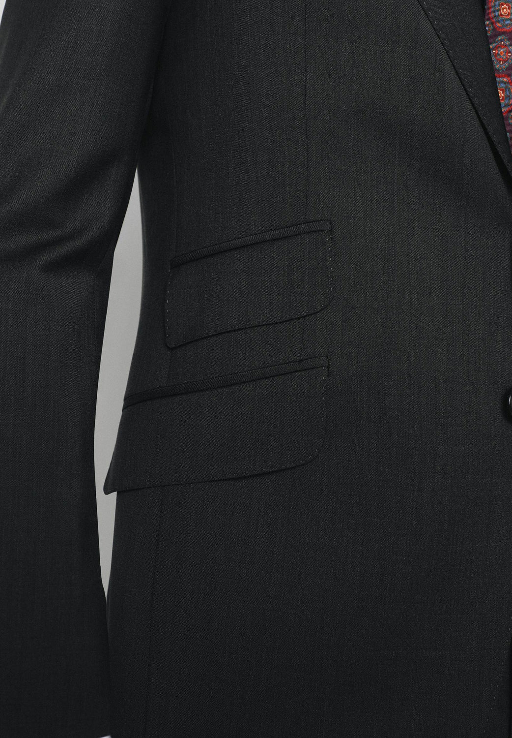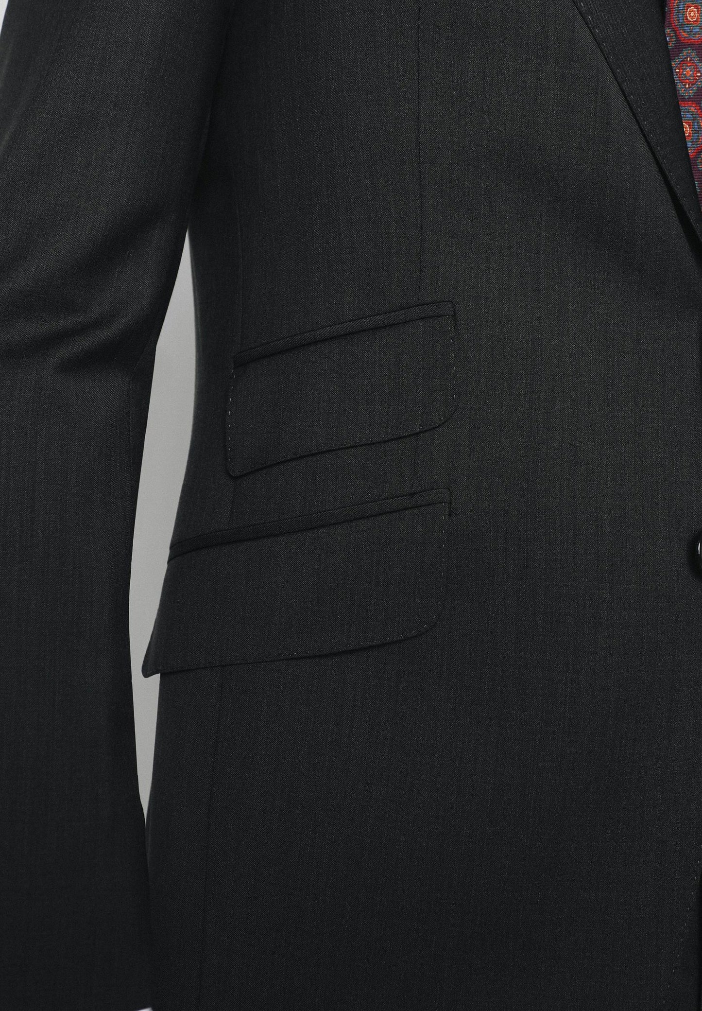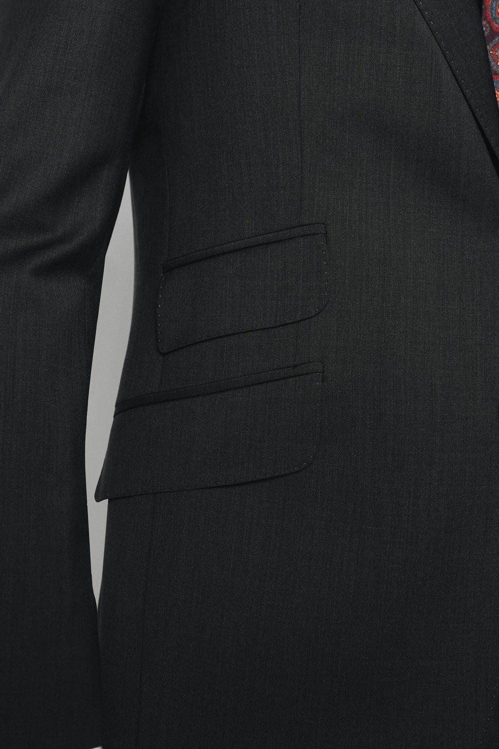 Americana confeccionada en tejido 100% lana. Corte Regular Fit, cuello con solapas y cierre con botón. Manga larga terminada en puño con botones. Bolsillos delanteros con tapeta y bolsillo insertado a la altura del pecho.