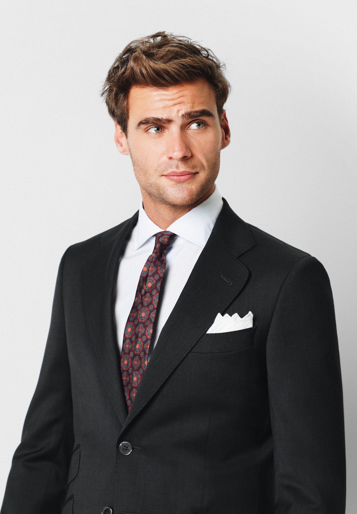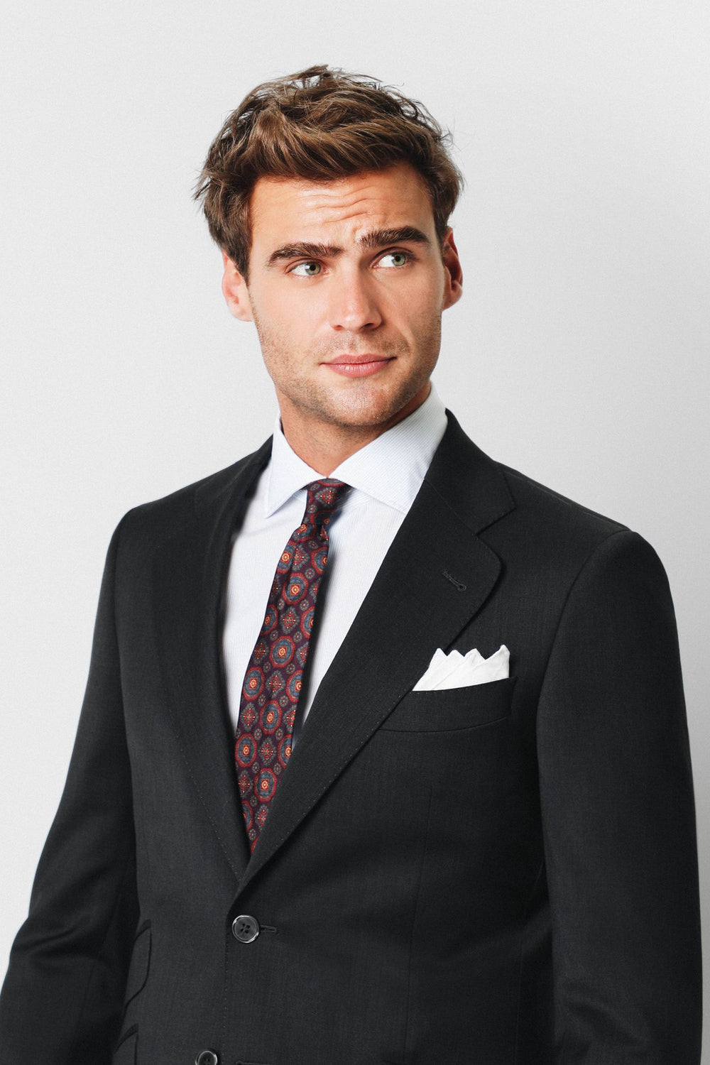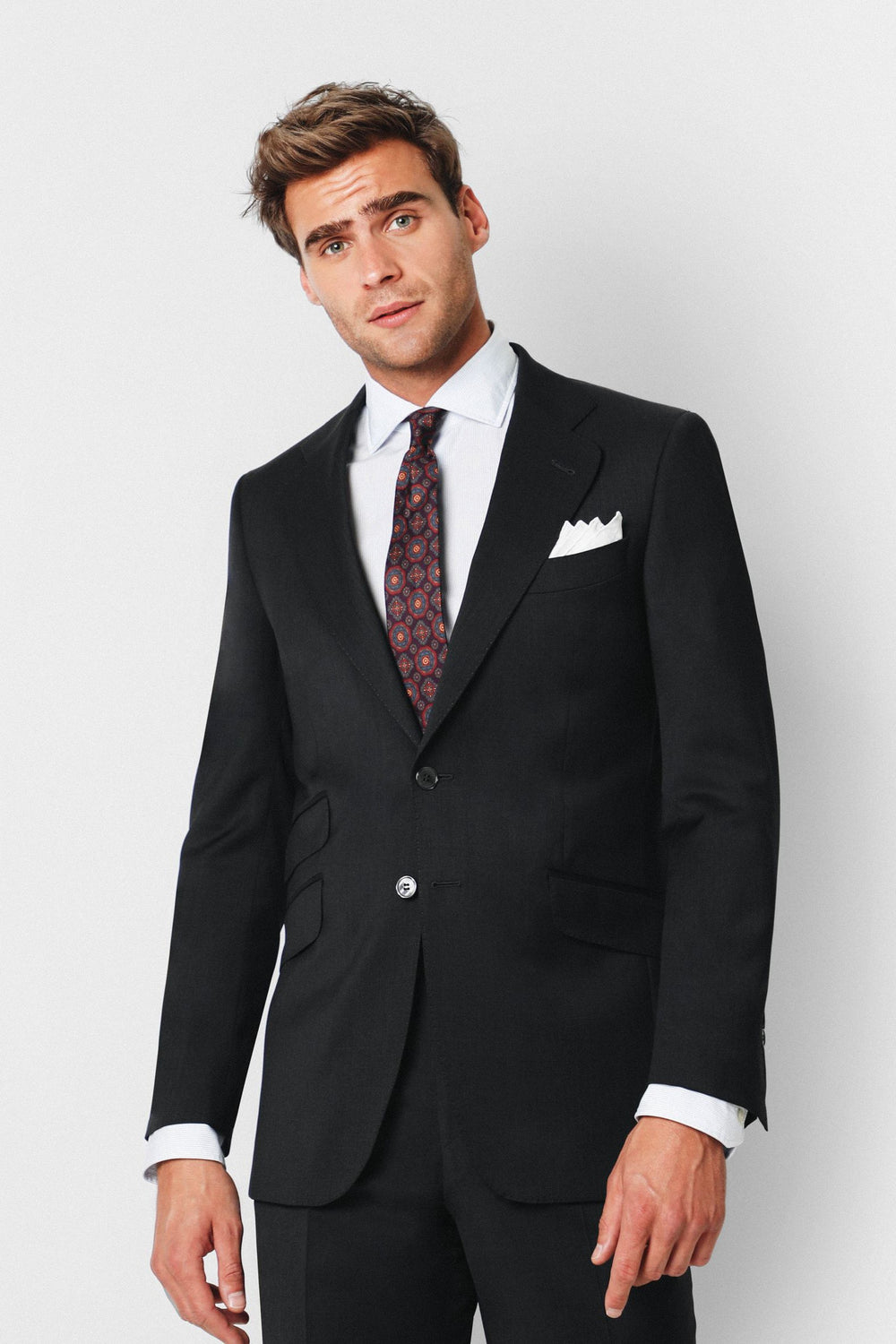 Americana confeccionada en tejido 100% lana. Corte Regular Fit, cuello con solapas y cierre con botón. Manga larga terminada en puño con botones. Bolsillos delanteros con tapeta y bolsillo insertado a la altura del pecho.
