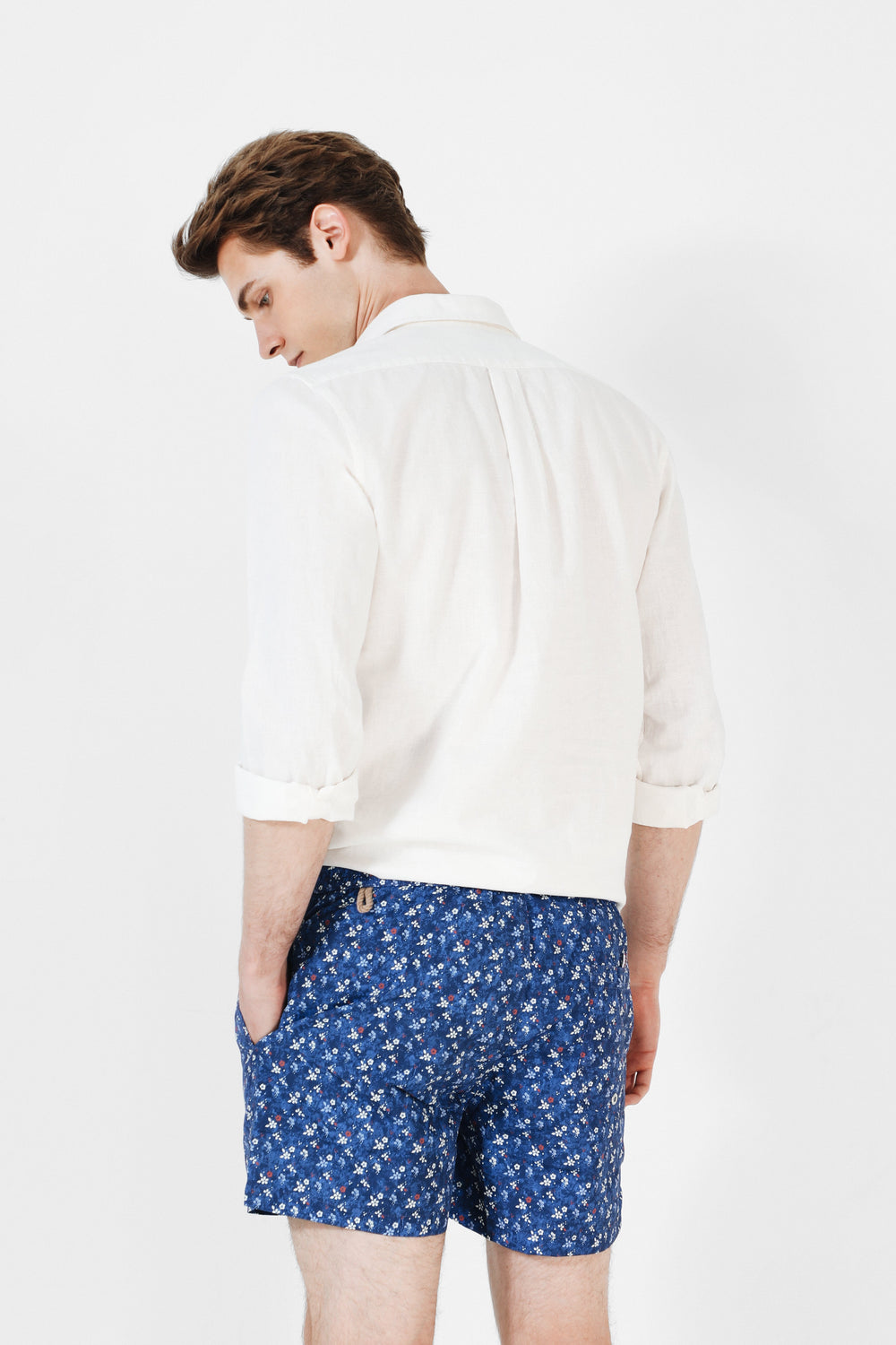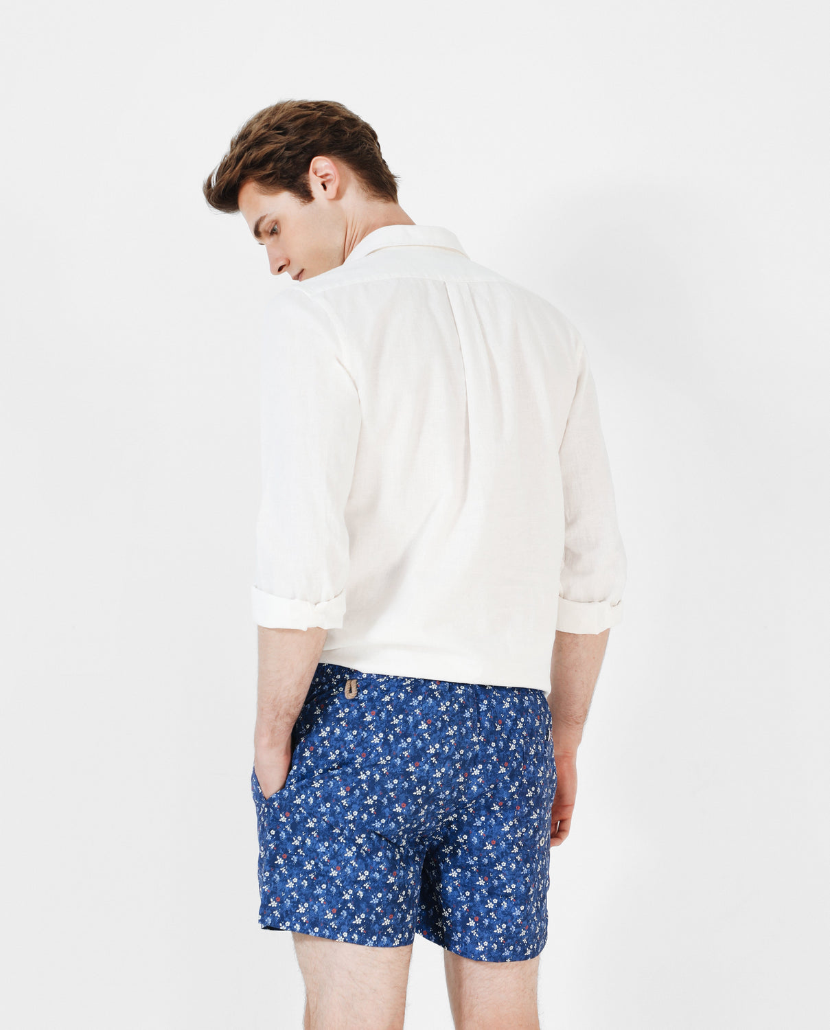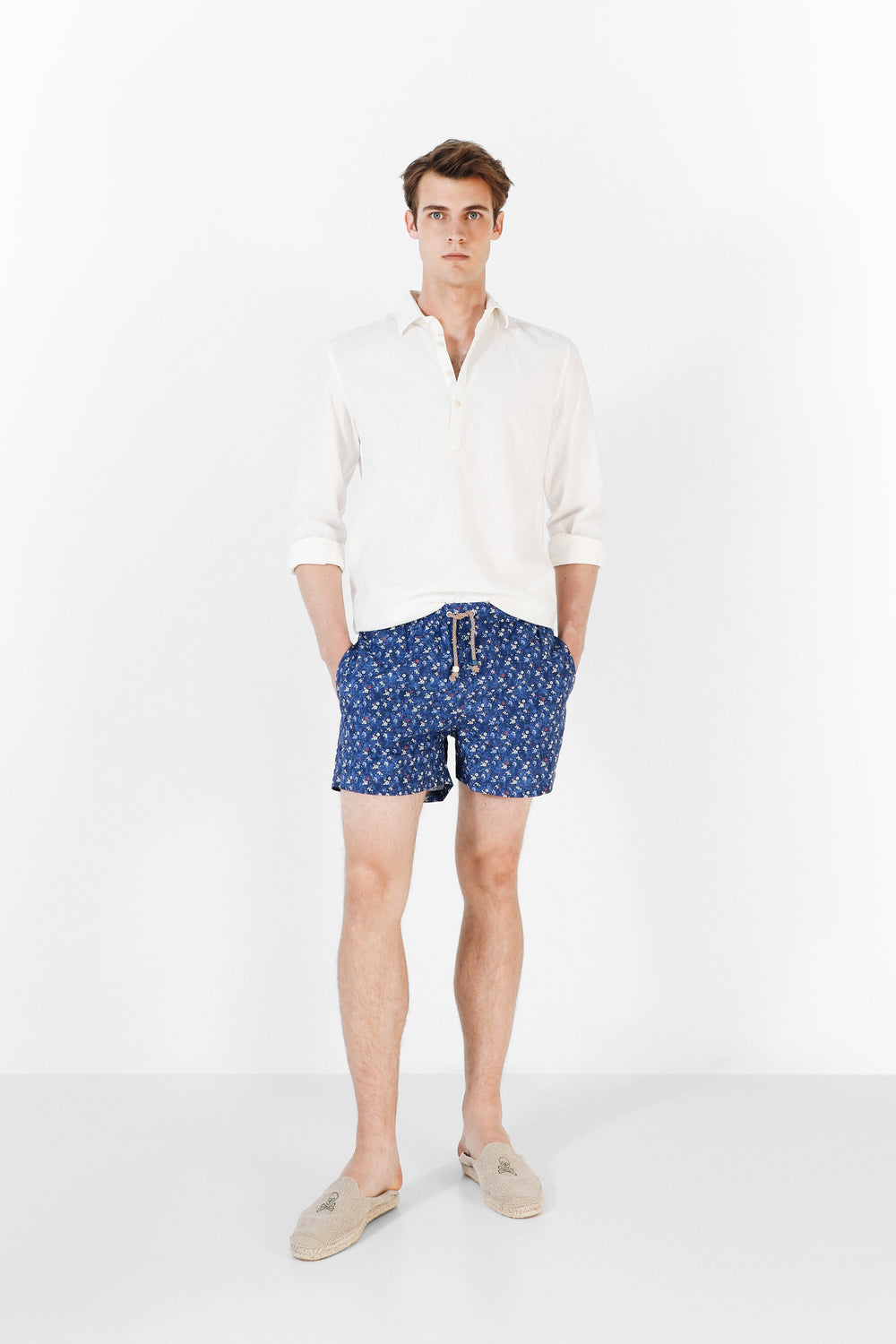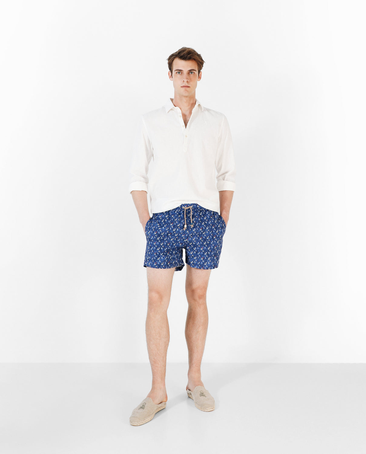 Bañador con estampado de flores. Corte Regular Fit, cierre con cordones y bolsillos laterales y trasero.