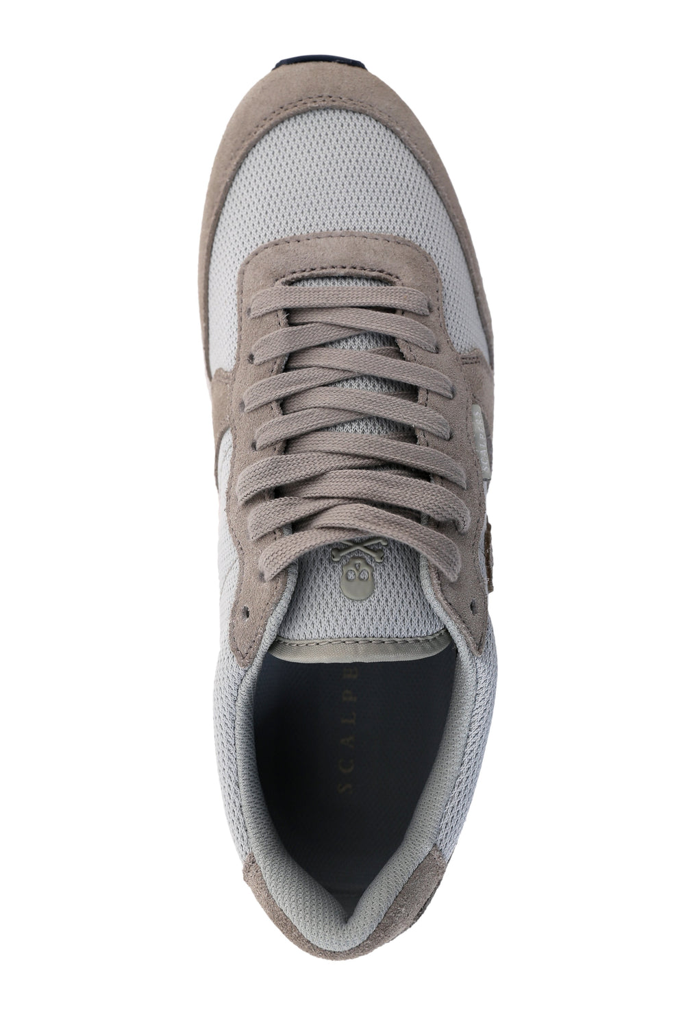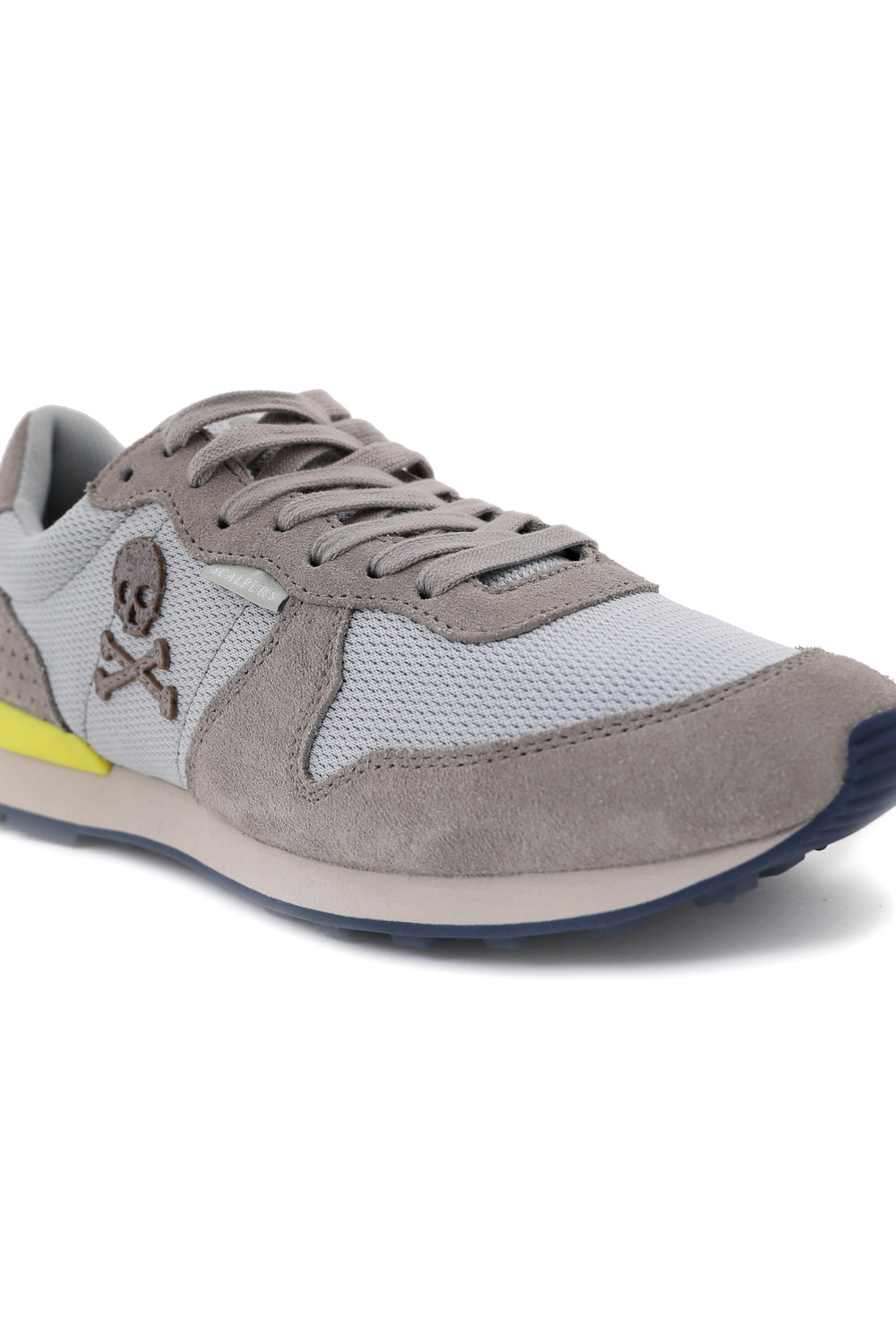 Sneakers confeccionada en serraje y piel. Cierre con cordones, rejilla delantera y cordones. Detalle de calavera bordada.
