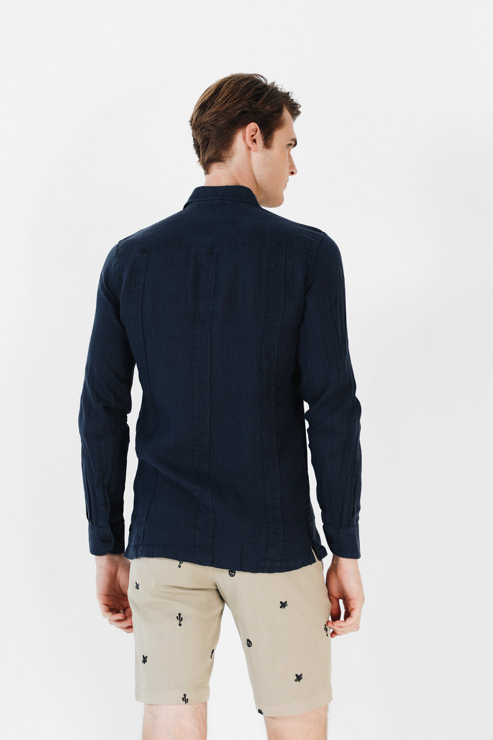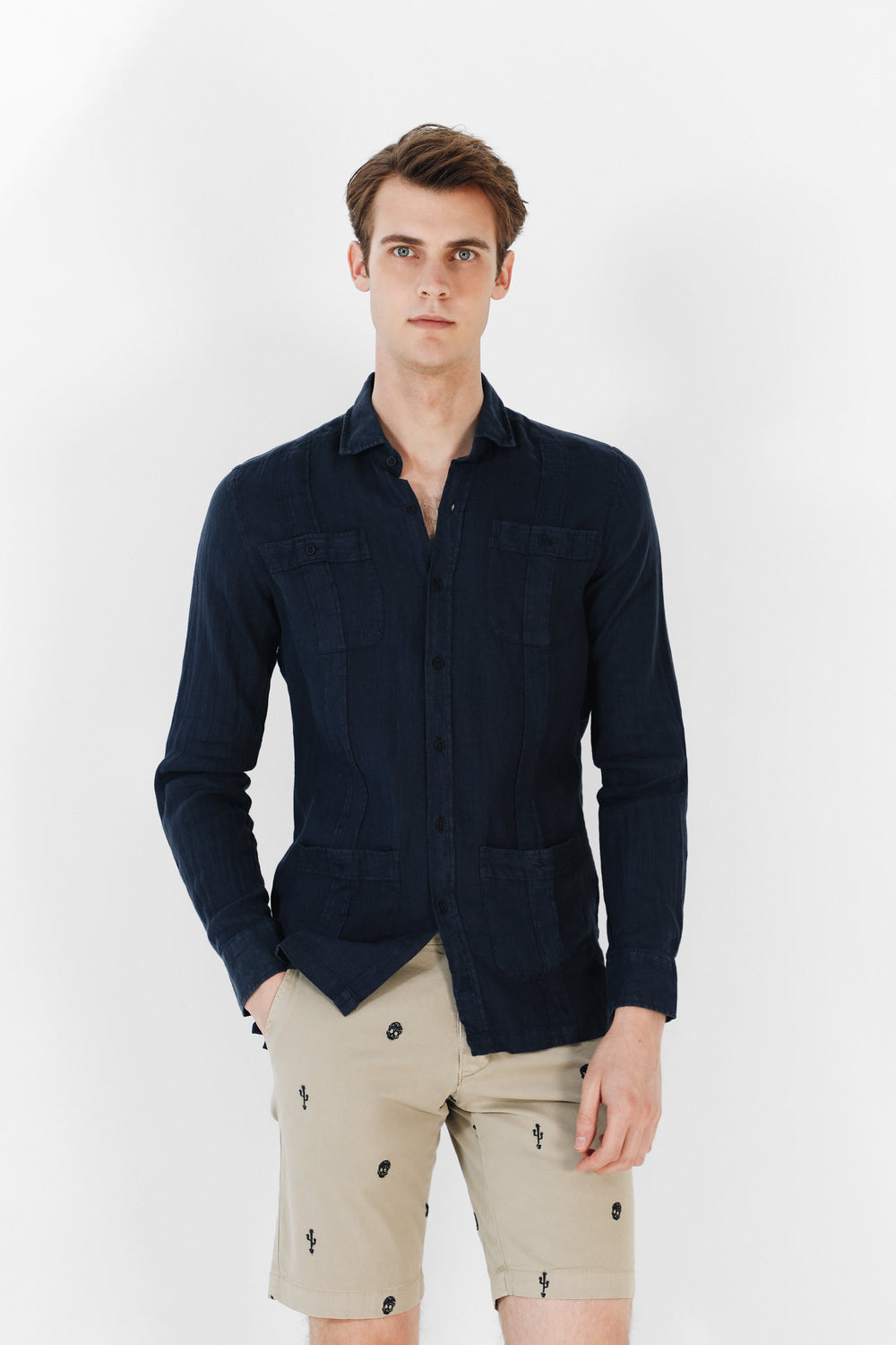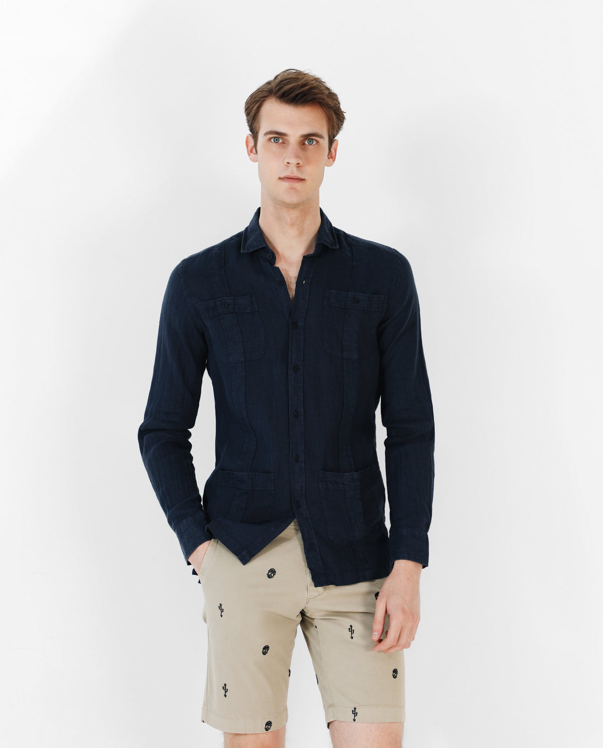 Bermuda confeccionada en tejido de algodón. Corte Regular Fit, cierre con botón y cremallera. Bolsillos laterales y trabillas. Detalles de bordados all over.