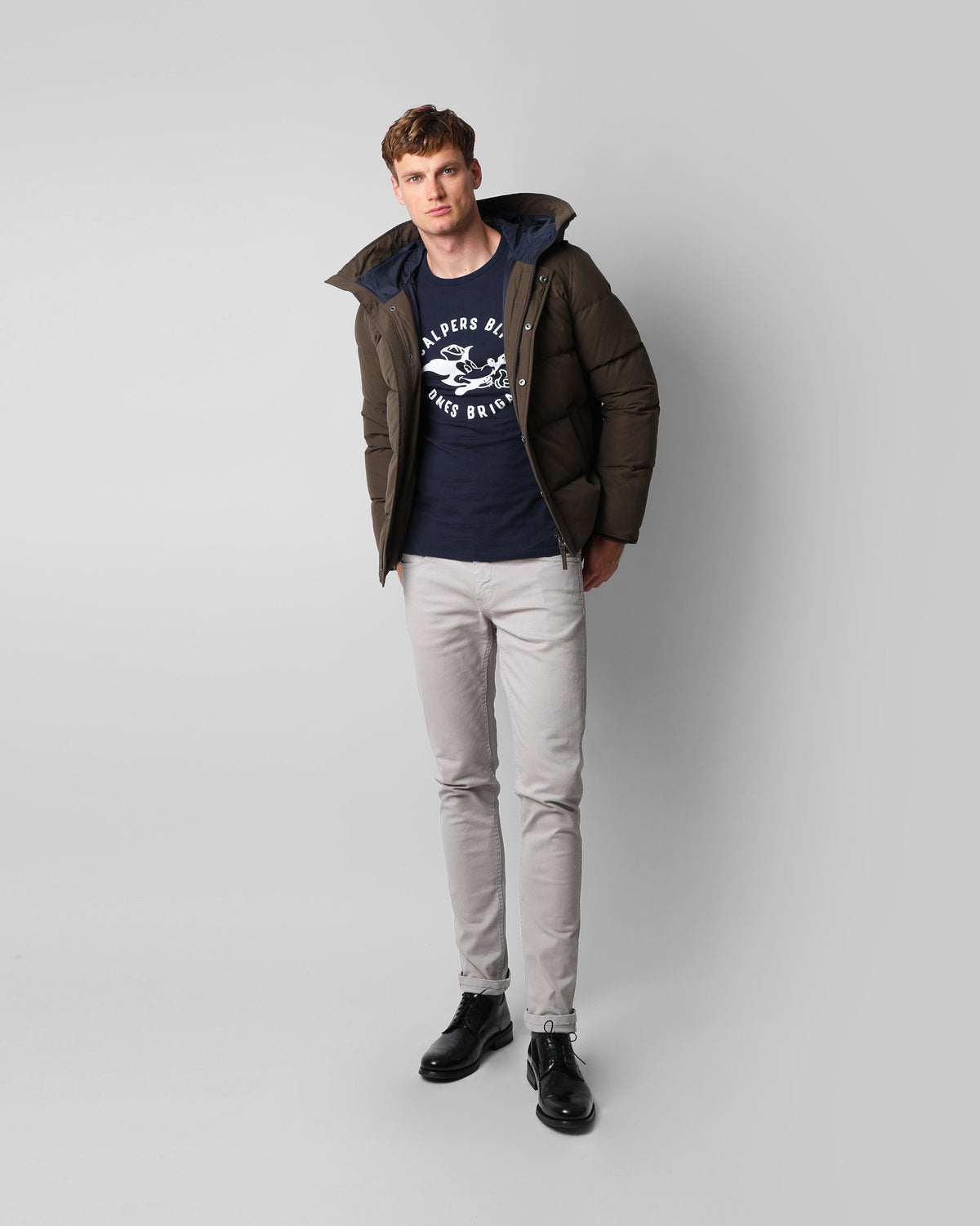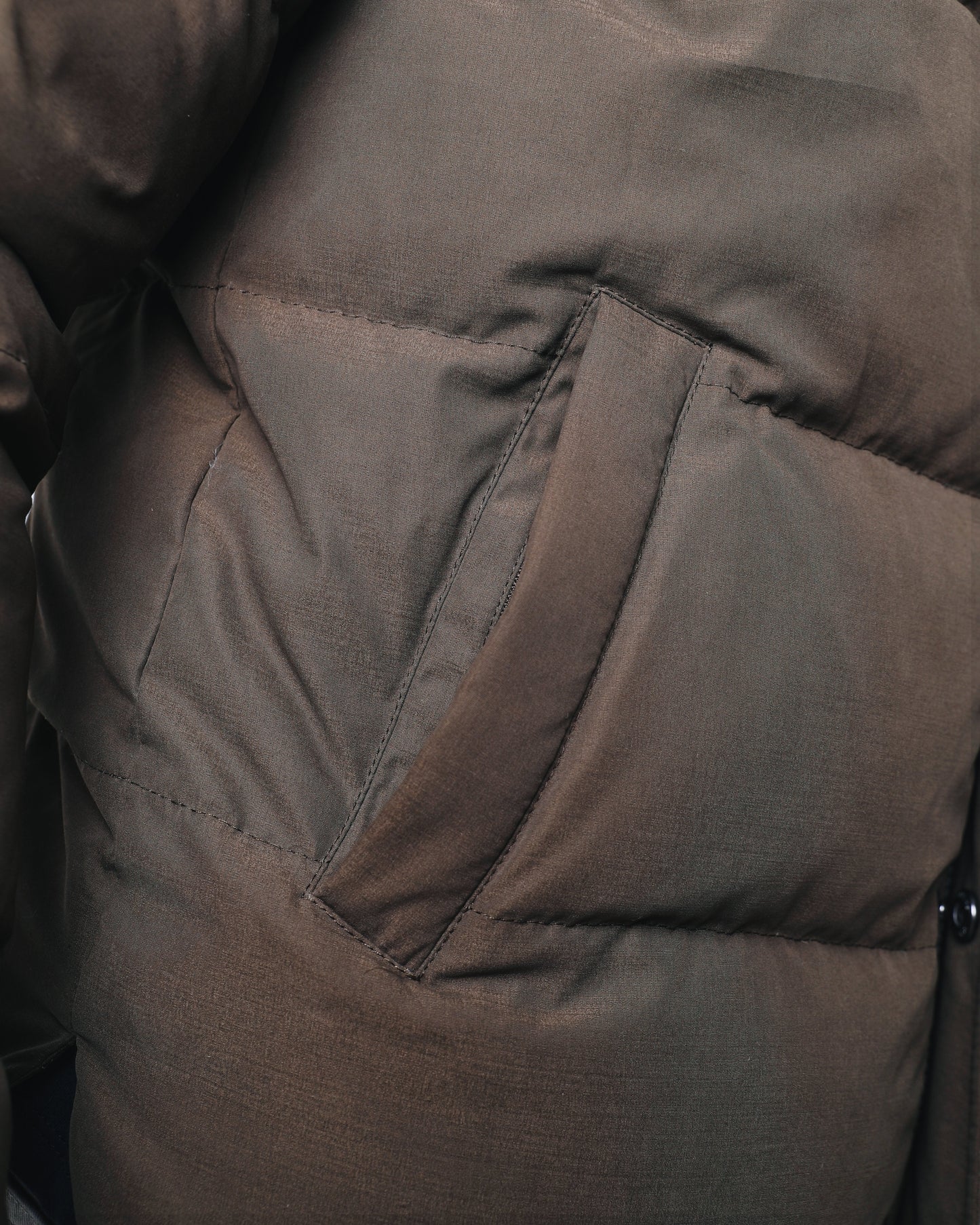 Chaqueta acolchada con capucha, cierre con cremallera y manga larga. Bolsillos laterales.