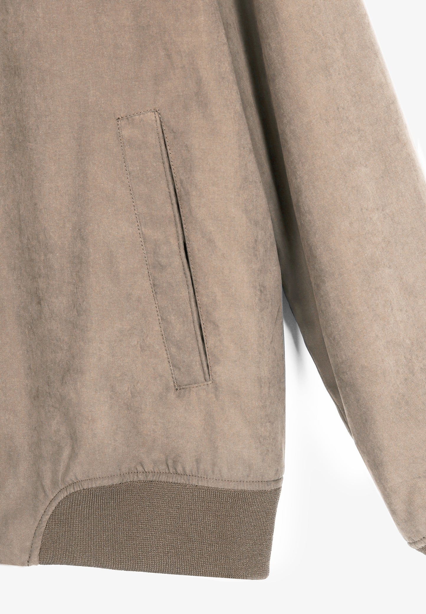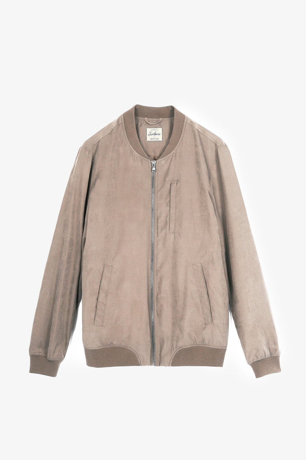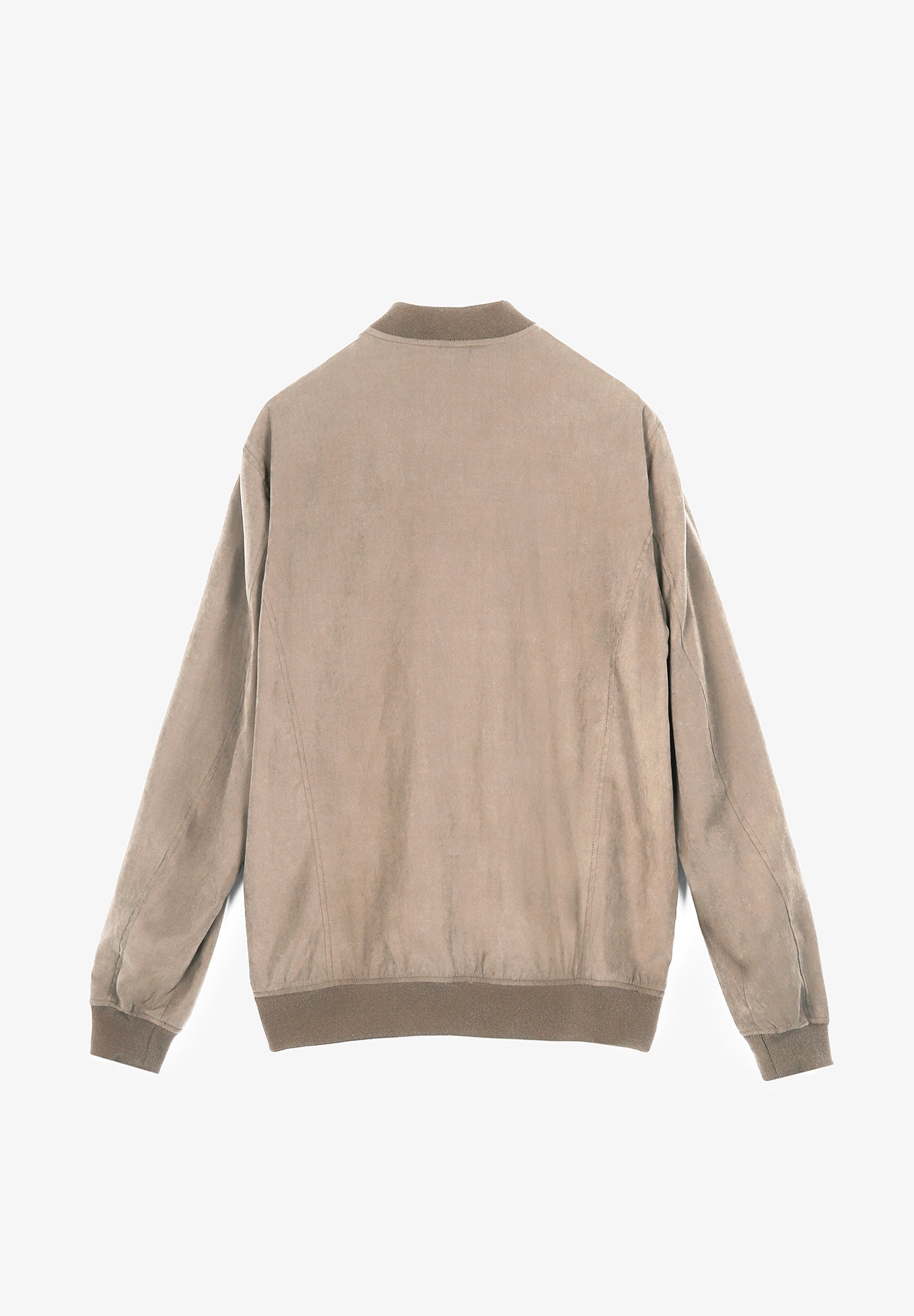 Chaqueta bomber confeccionada en tejido técnico. Corte Regular Fit, cuello redondo y cierre con cremallera. Manga larga terminada en puño con elástico y bolsillos insertados laterales. Detalle de elástico en el bajo.