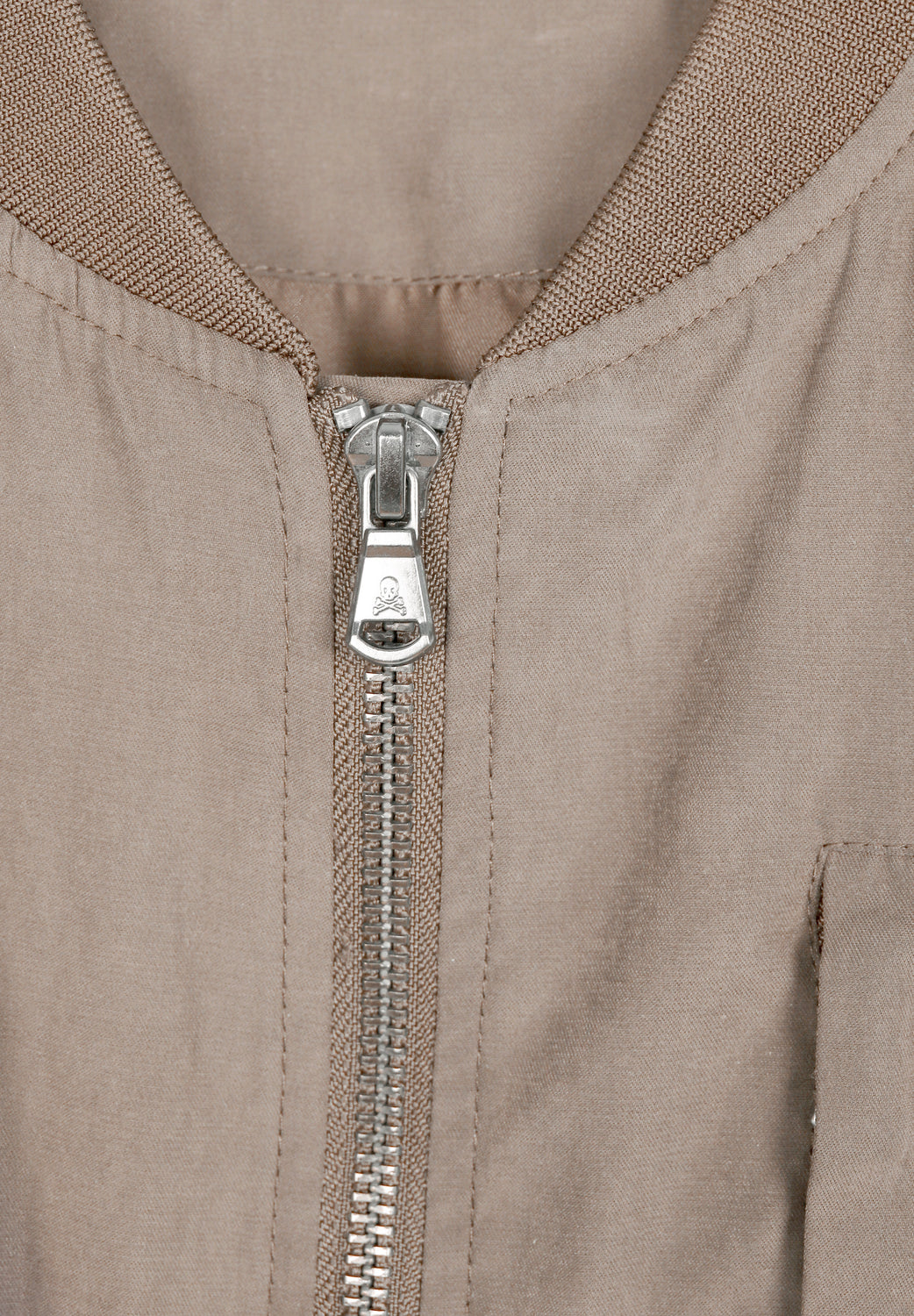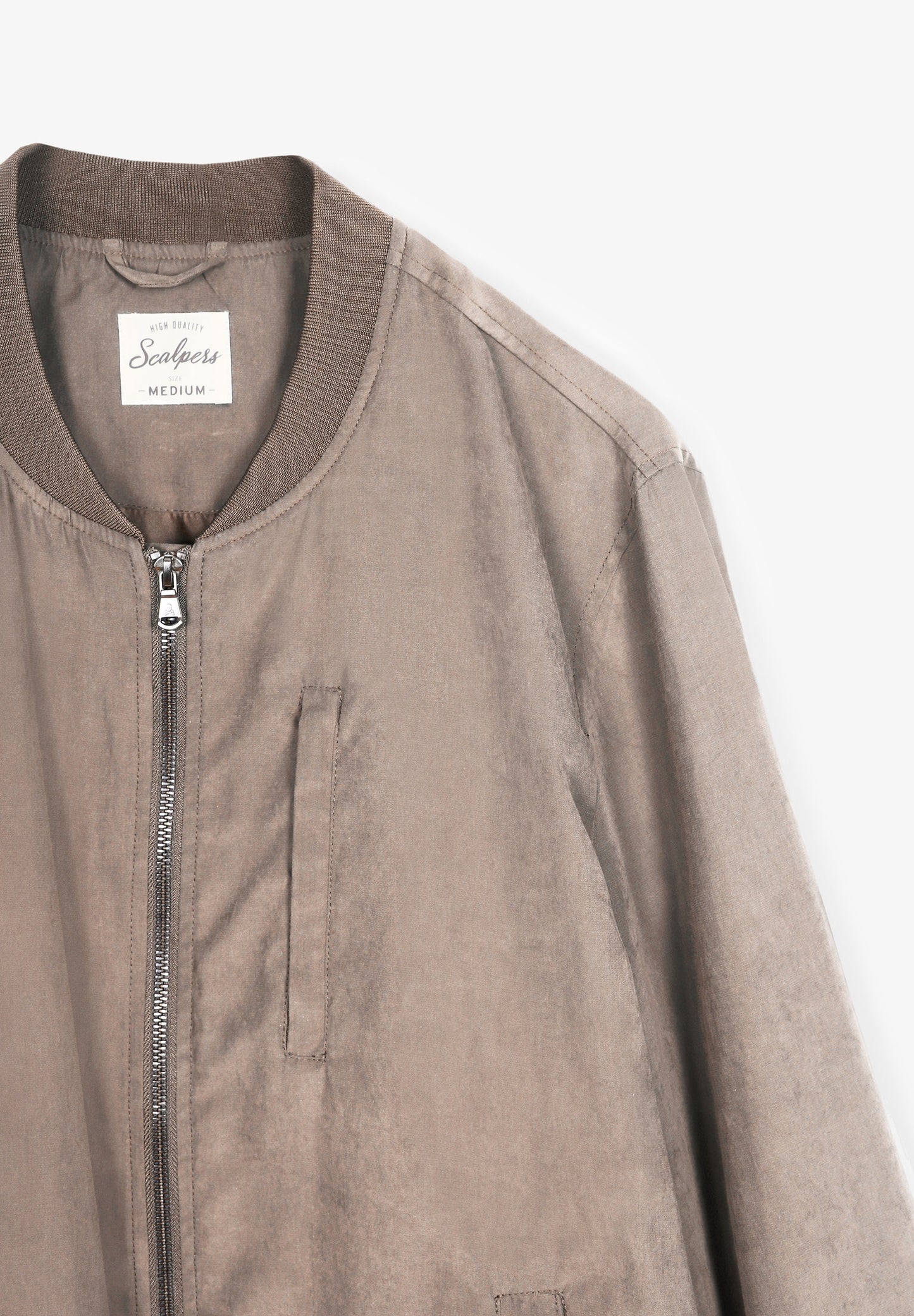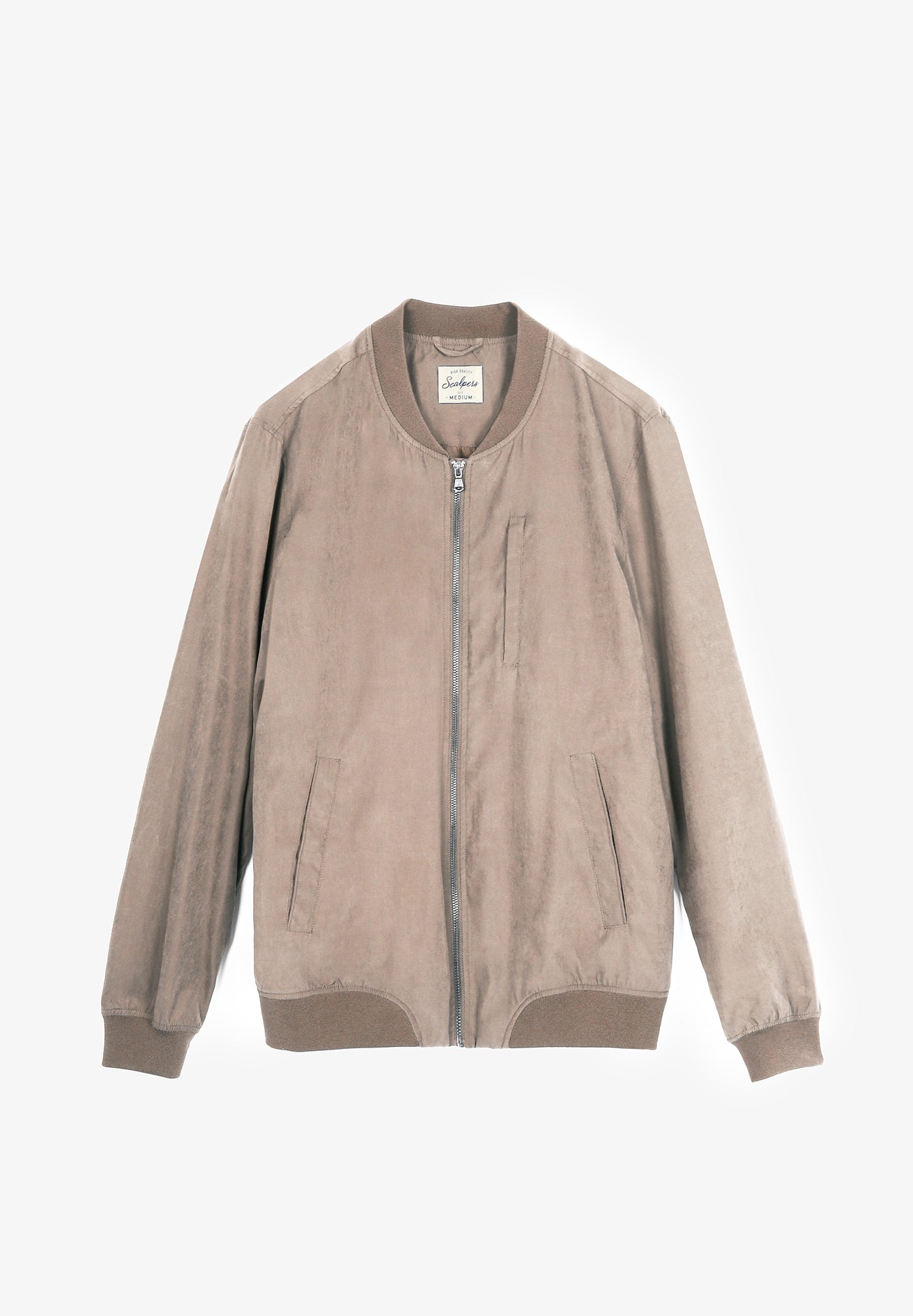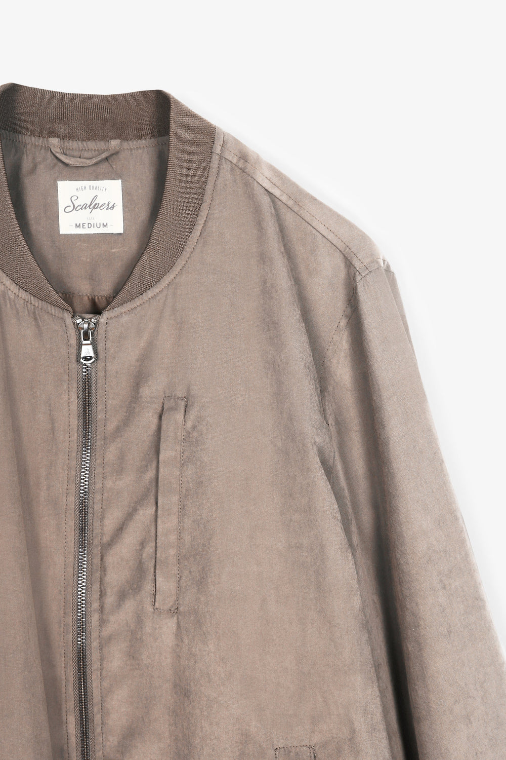 Chaqueta bomber confeccionada en tejido técnico. Corte Regular Fit, cuello redondo y cierre con cremallera. Manga larga terminada en puño con elástico y bolsillos insertados laterales. Detalle de elástico en el bajo.