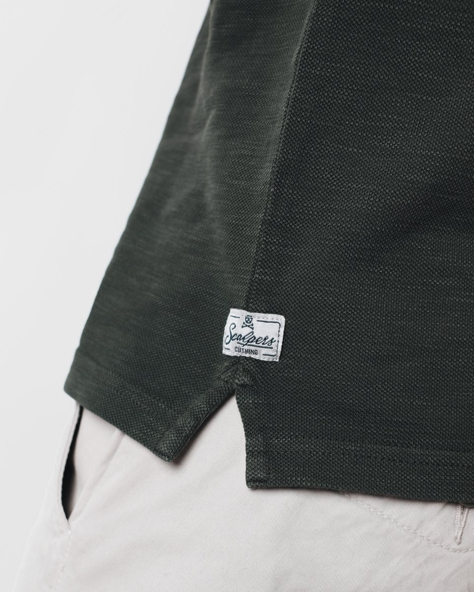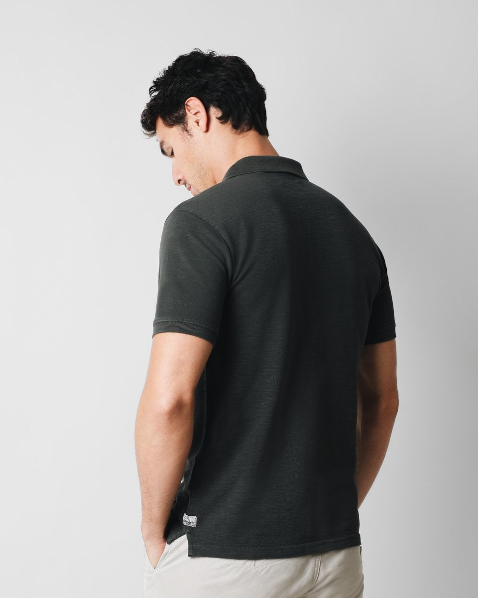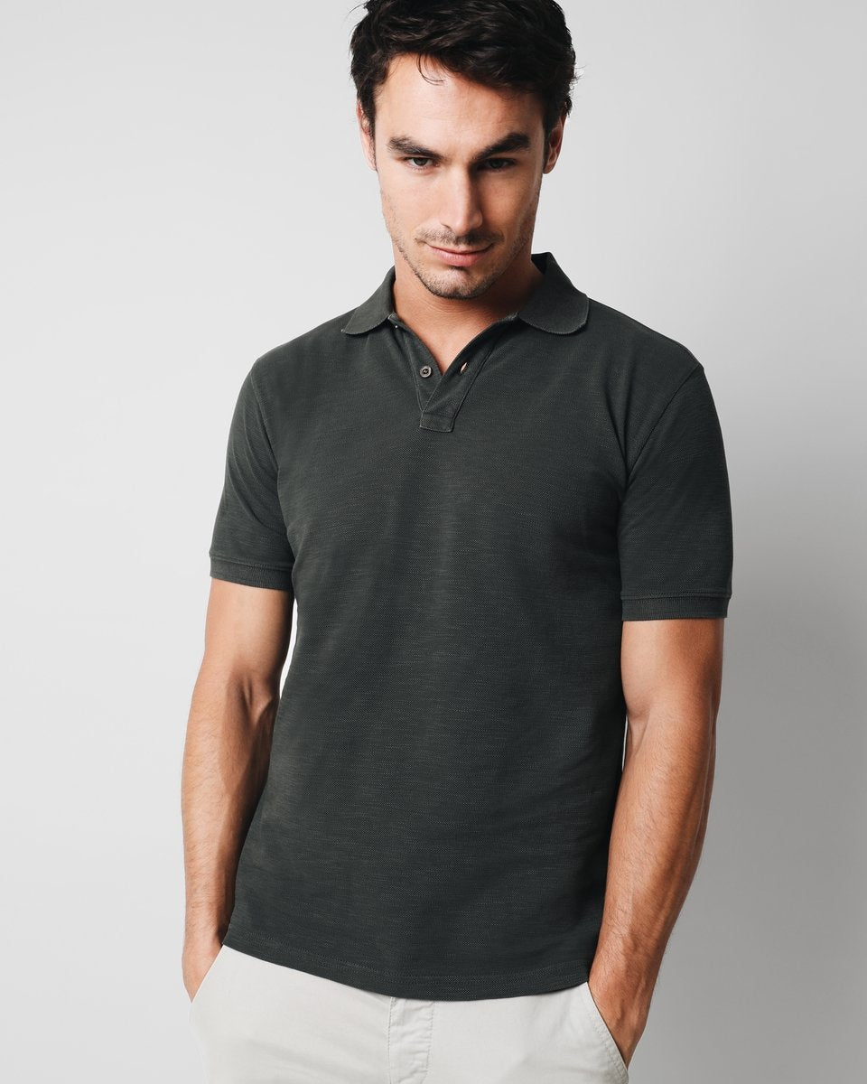 Polo confeccionado en tejido de piqué flamé. Corte Slim Fit, cuello clásico y cierre mediante dos botones con tapeta. Manga corta terminada en ribs. Presenta como detalle la calavera bordada a tono a la altura del pecho.