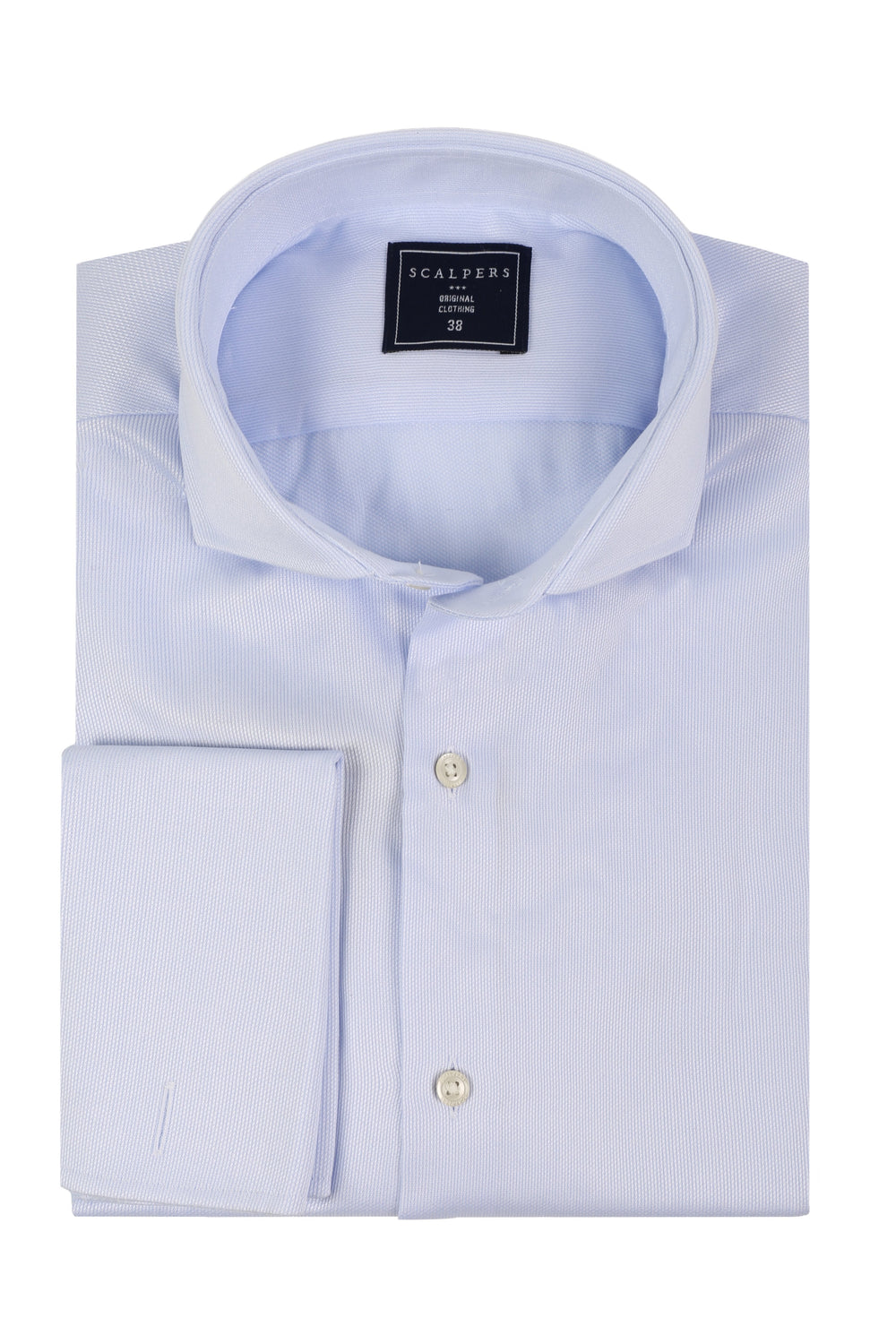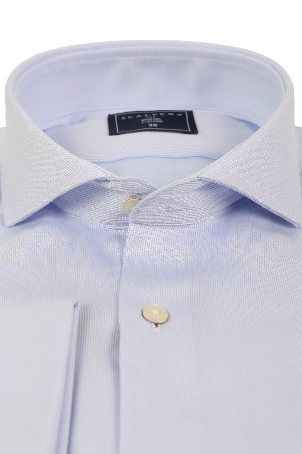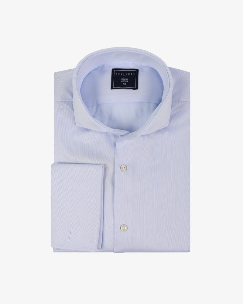 Camisa de vestir con cuello clásico, cierre con botones y manga larga con doble puño.