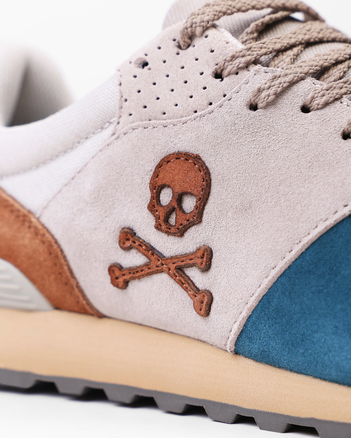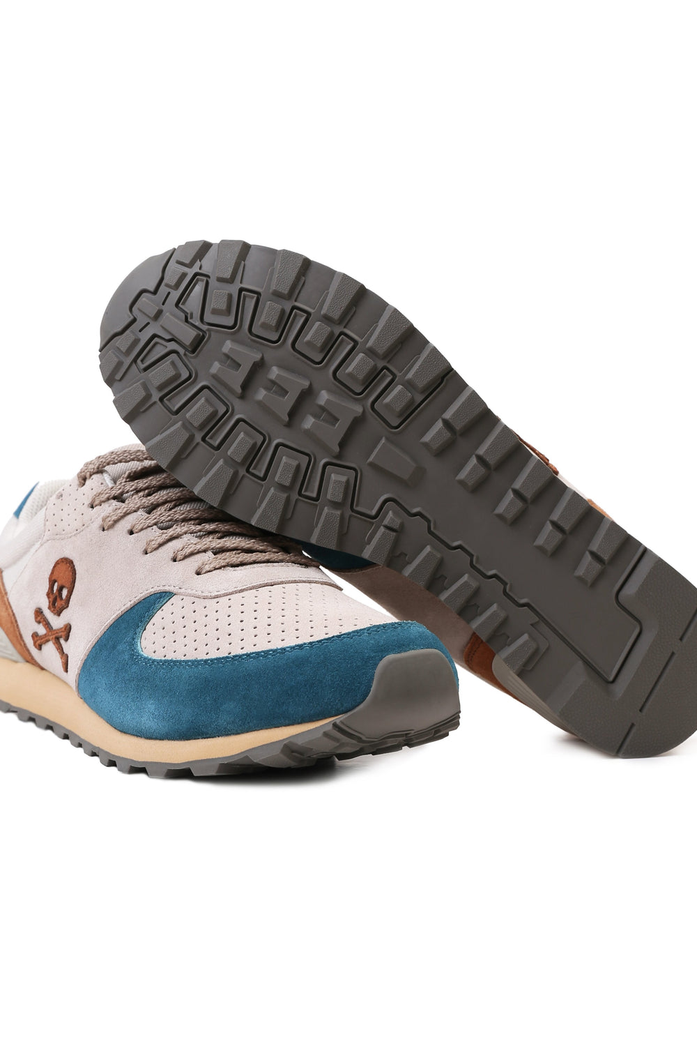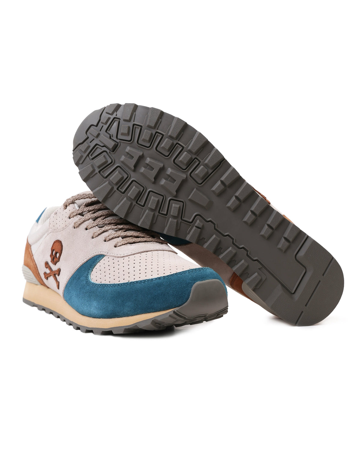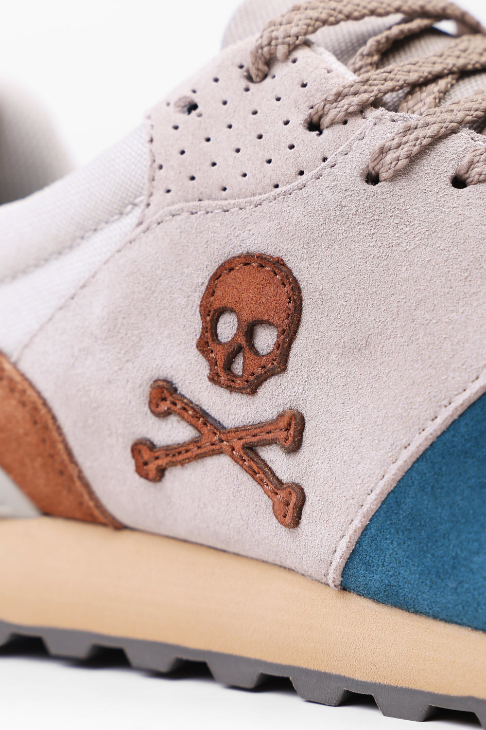 Sneakers confeccionada en serraje y piel. Cierre con cordones, rejilla delantera y cordones. Detalle de calavera bordada.