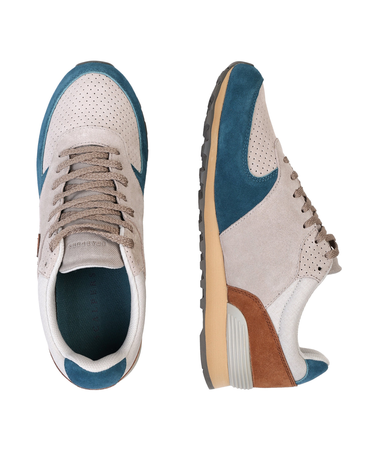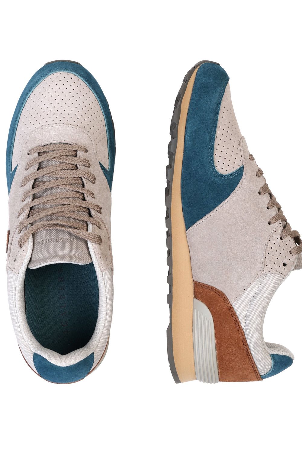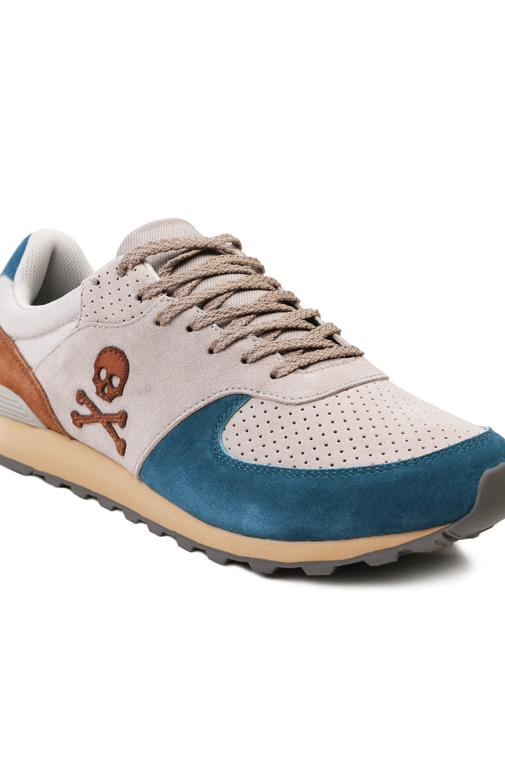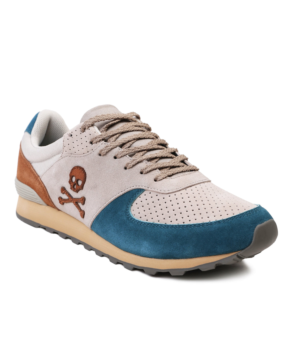 Sneakers confeccionada en serraje y piel. Cierre con cordones, rejilla delantera y cordones. Detalle de calavera bordada.