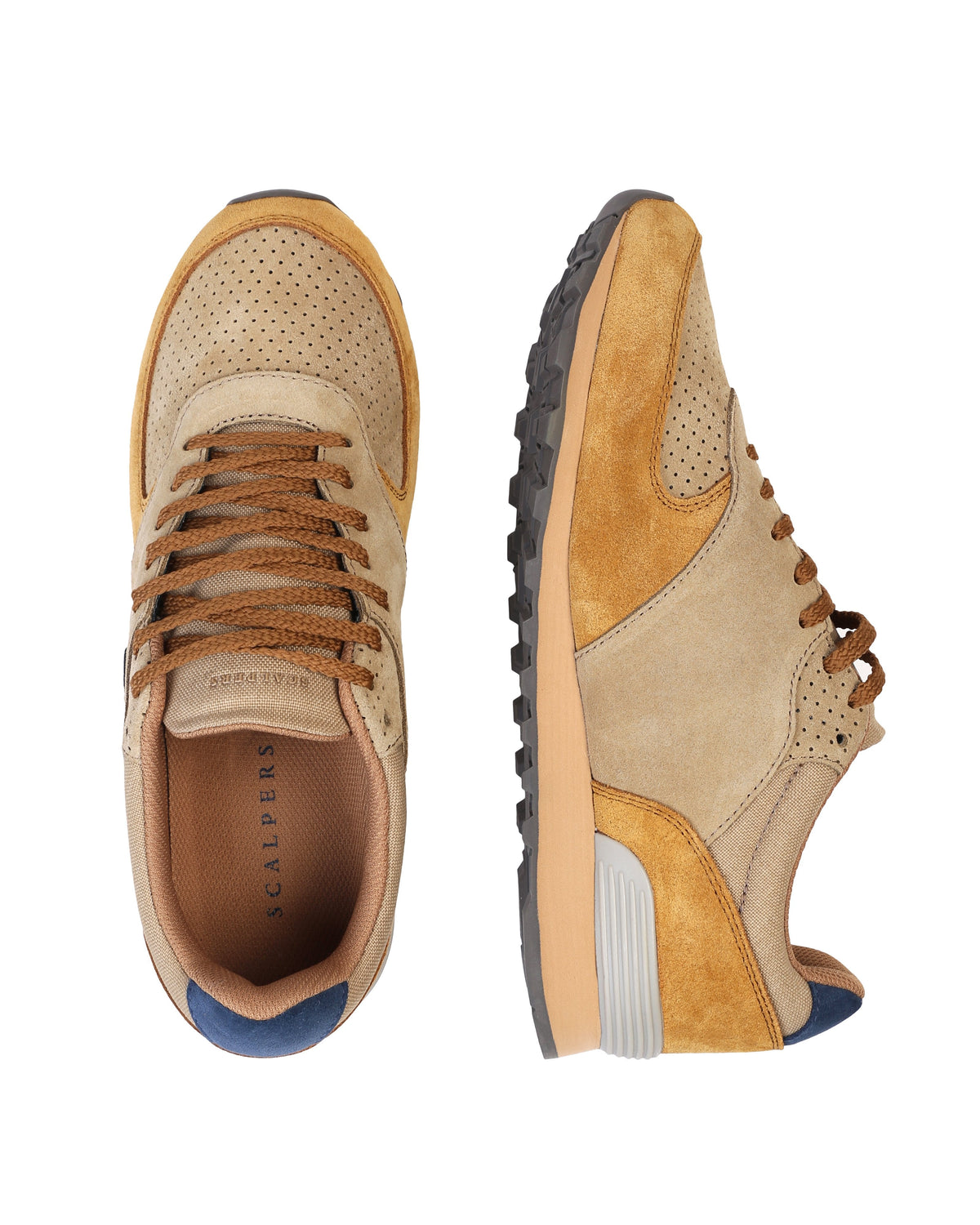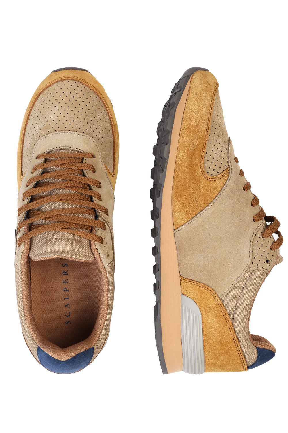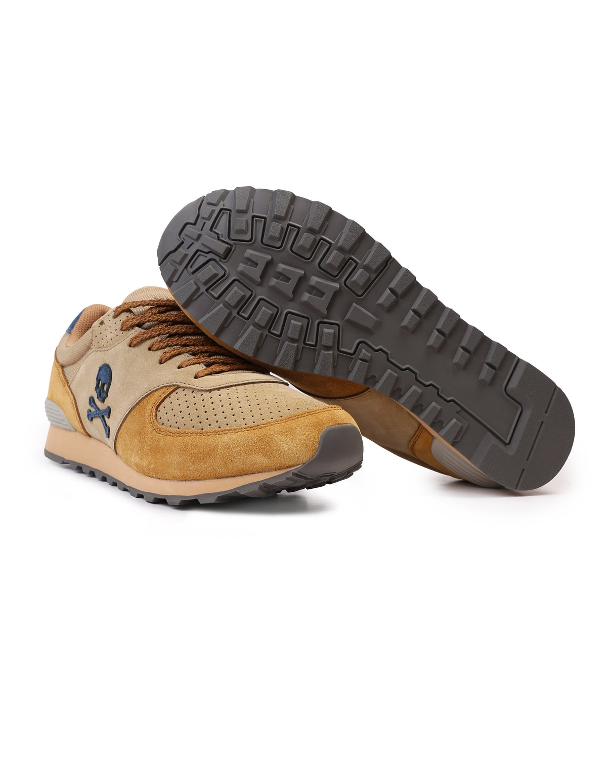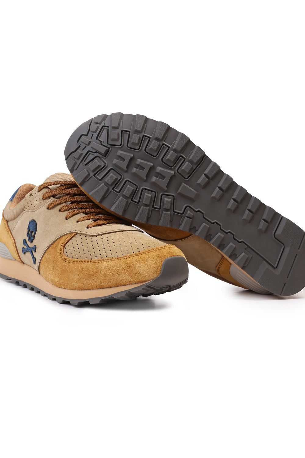 Sneakers confeccionada en serraje y piel. Cierre con cordones, rejilla delantera y cordones. Detalle de calavera bordada.
