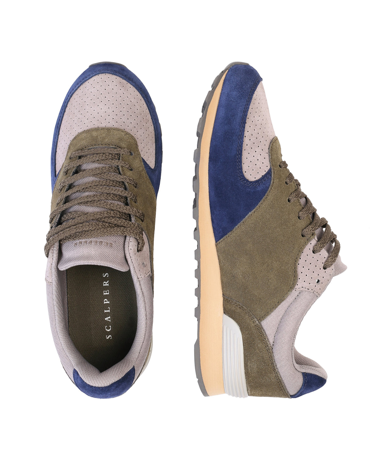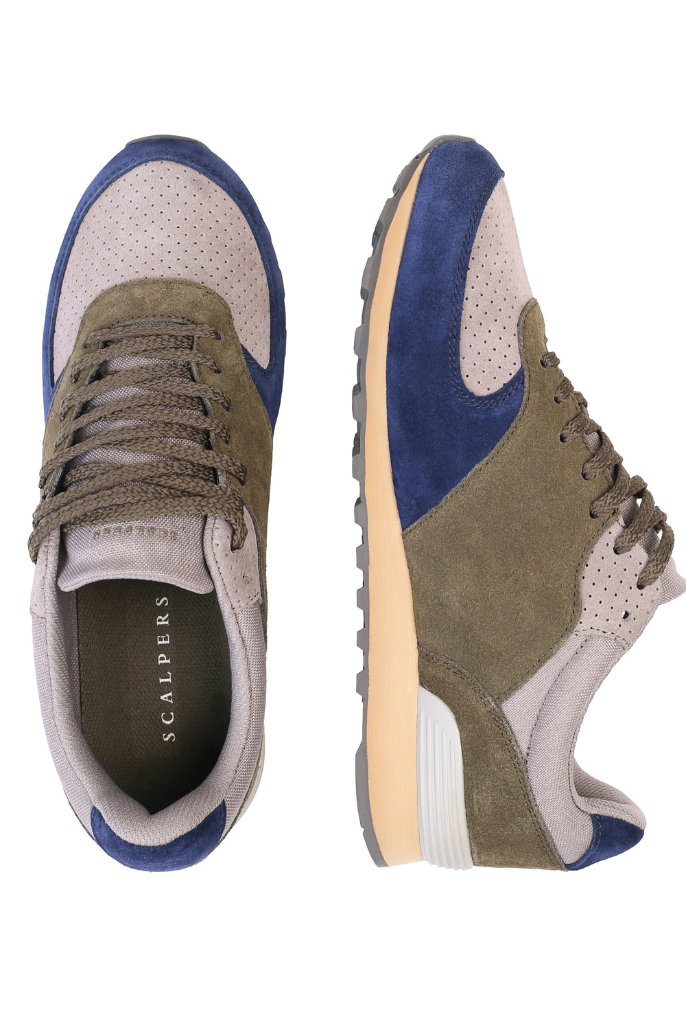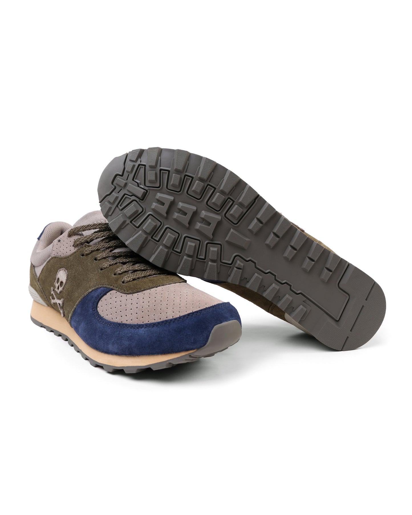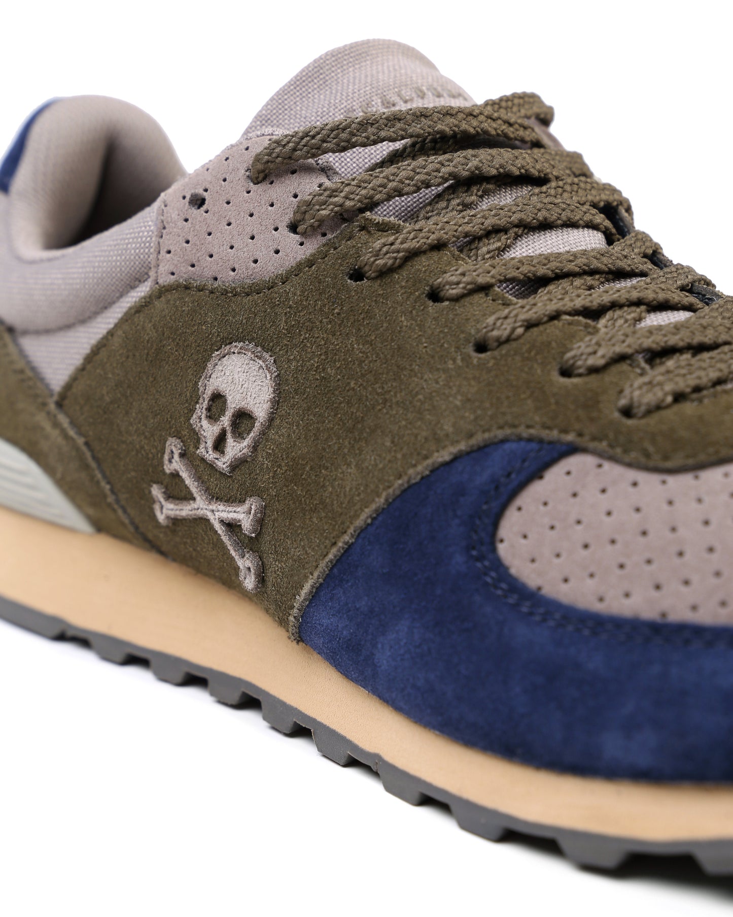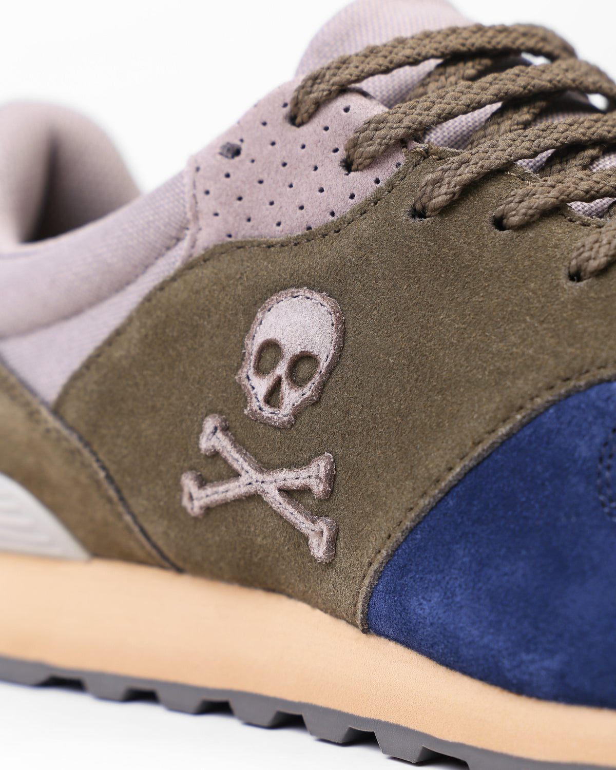 Sneakers confeccionada en serraje y piel. Cierre con cordones, rejilla delantera y cordones. Detalle de calavera bordada.