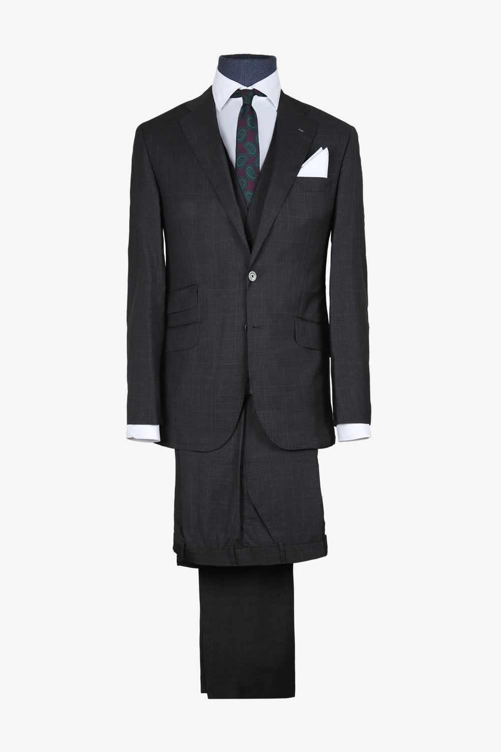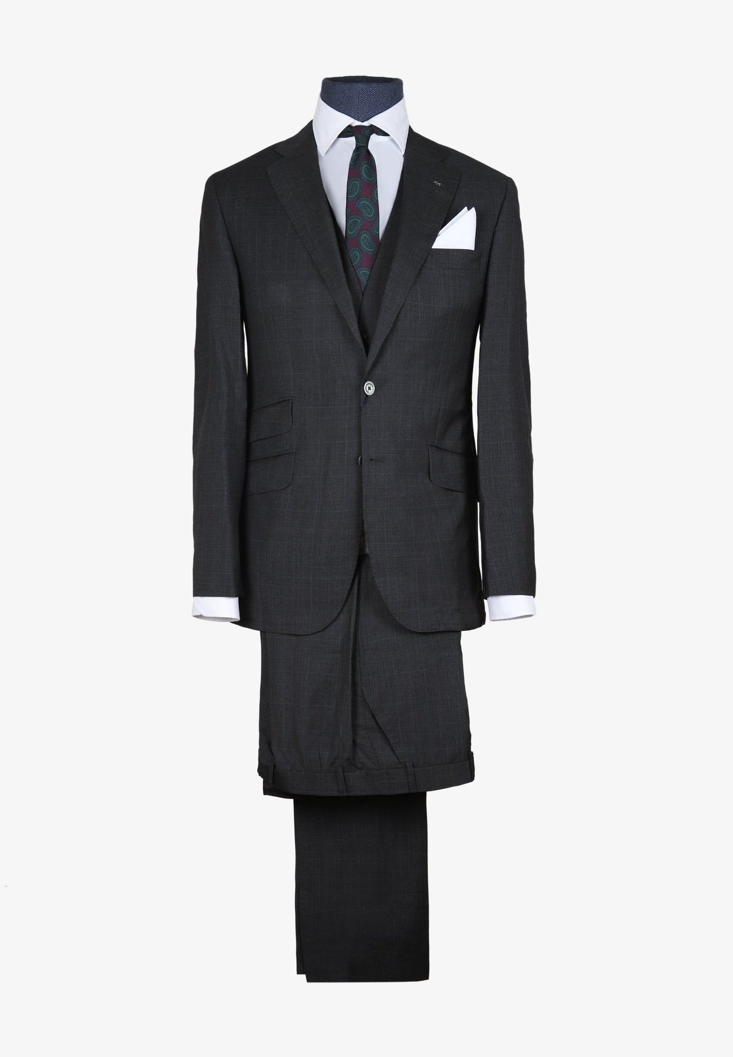 Traje de tres piezas. Americana Regular Fit, cuello con solapas y cierre con botones. Manga larga terminada en puño y bolsillos laterales.