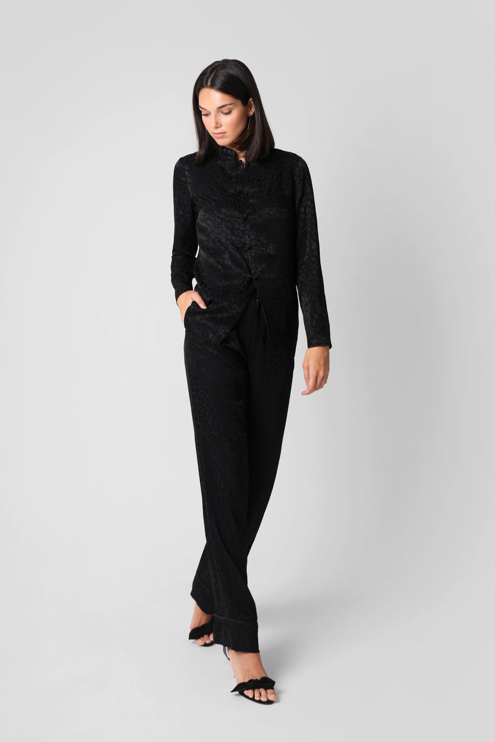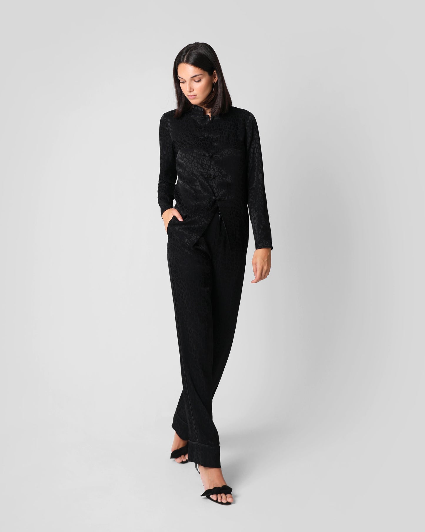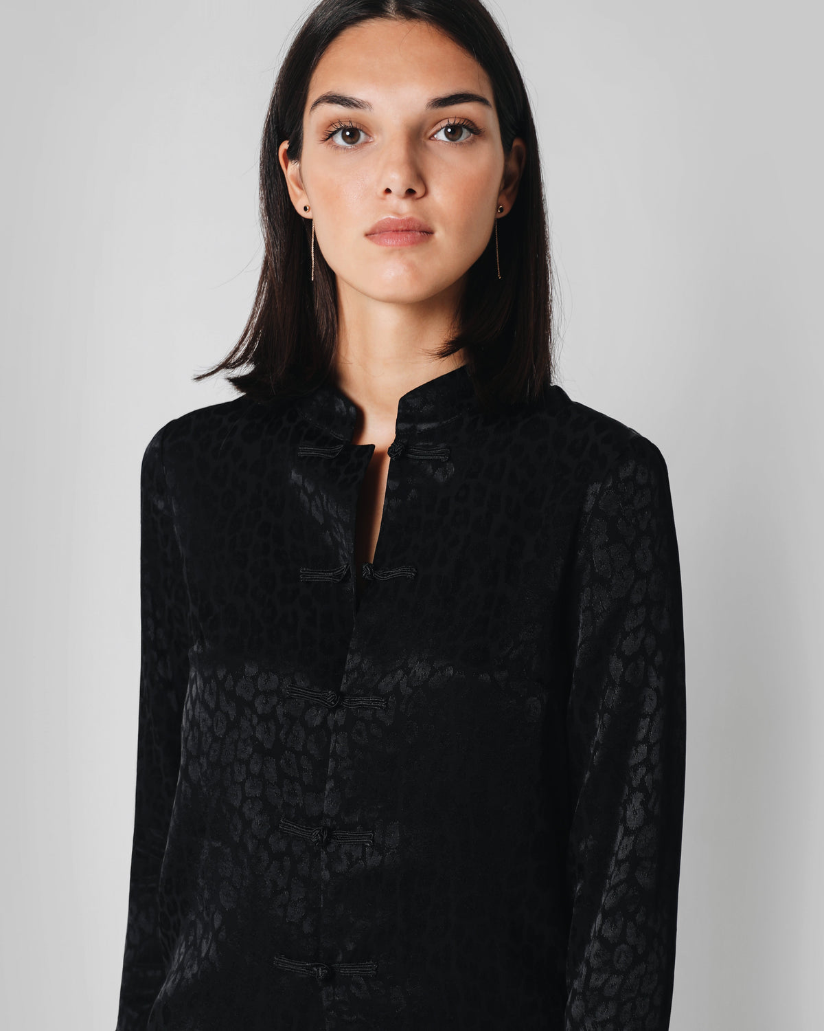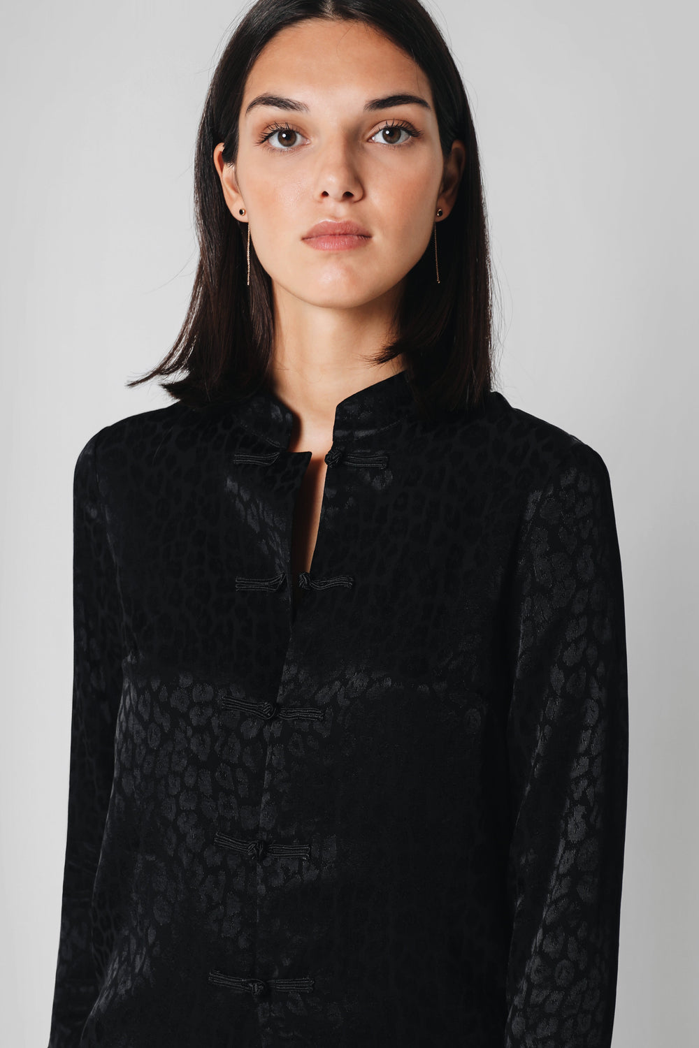 BLUSA CHINA JACQUARD LEOPARDO NEGRO