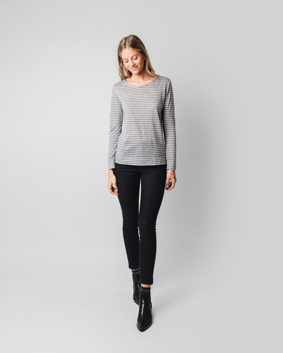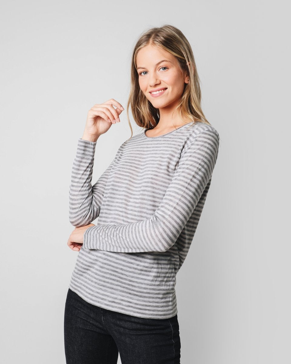 Camiseta con estampado de rayas. Corte Regular Fit, cuello redondo y manga larga.