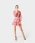 Falda mini con bordado inglés, confeccionada en tejido 100% algodón. Corte acampanado con cinturilla con elástico. Presenta como detalle el volante en el bajo.