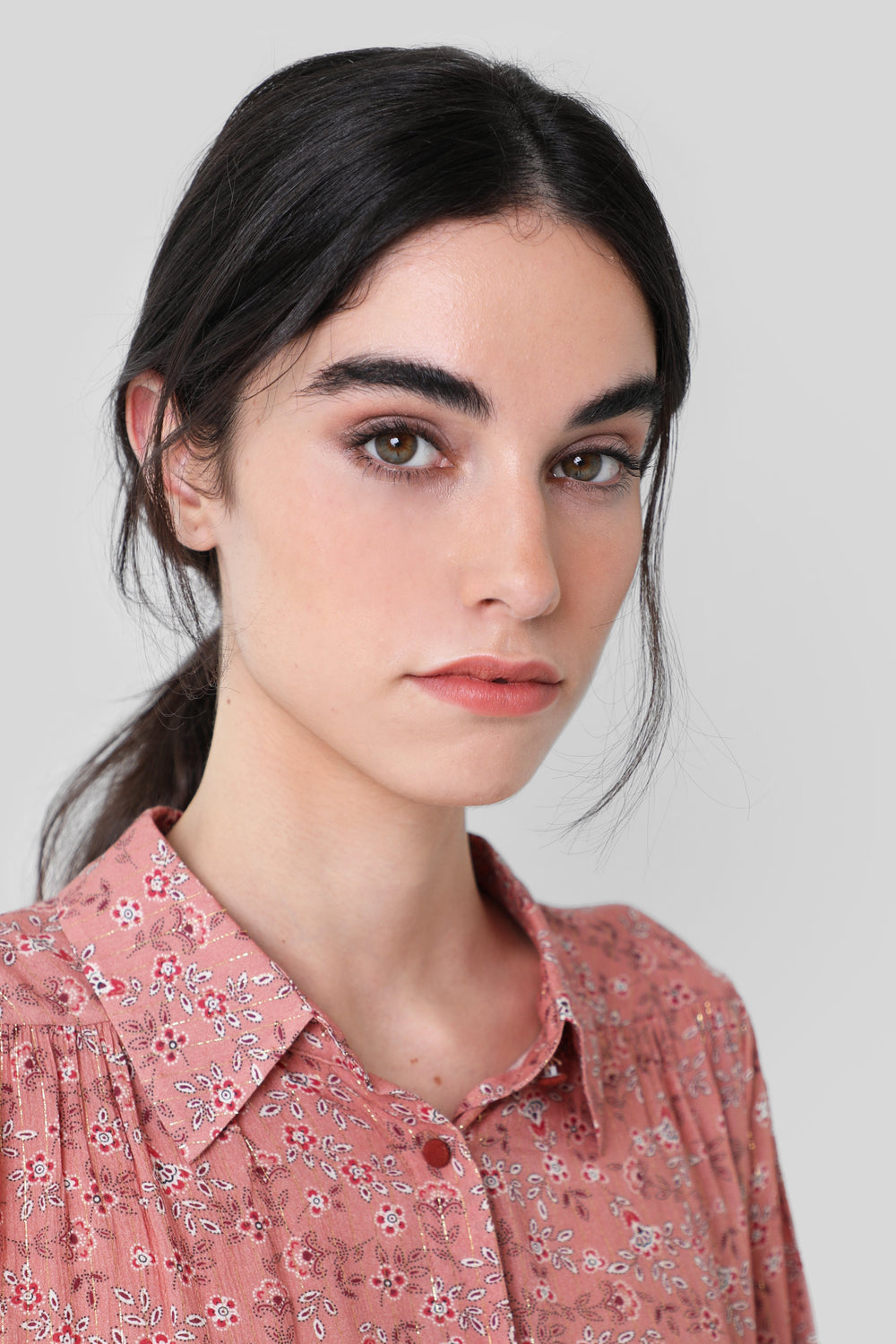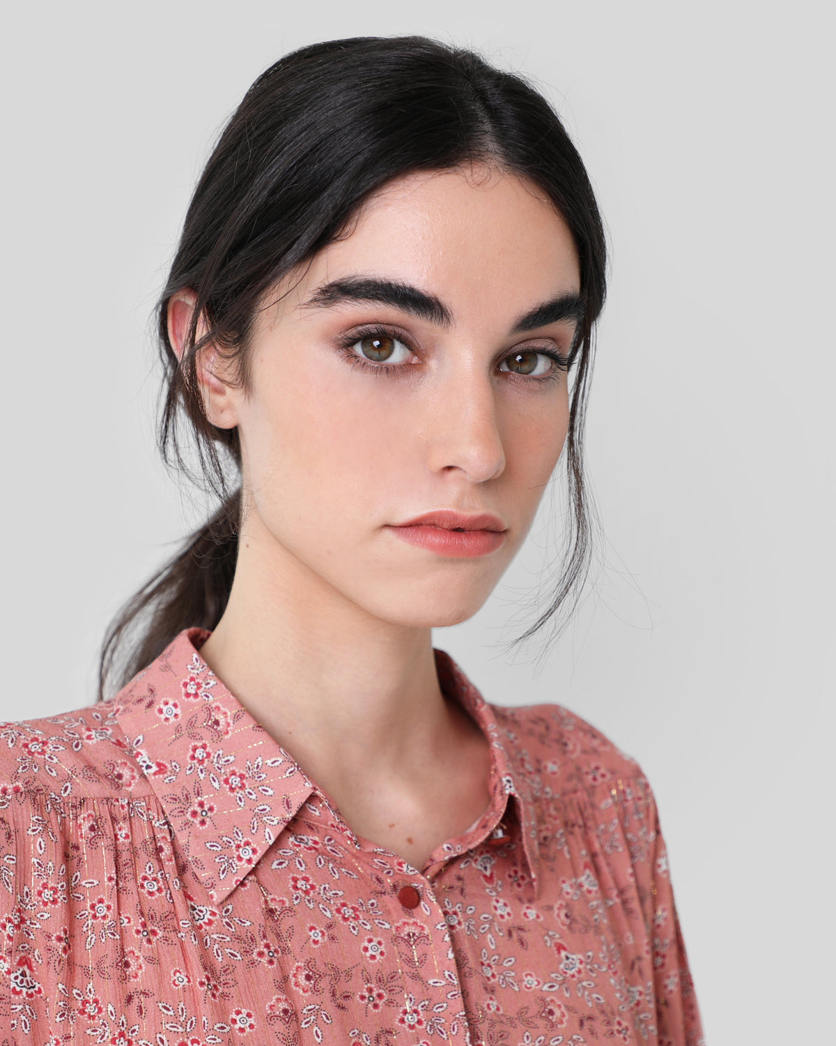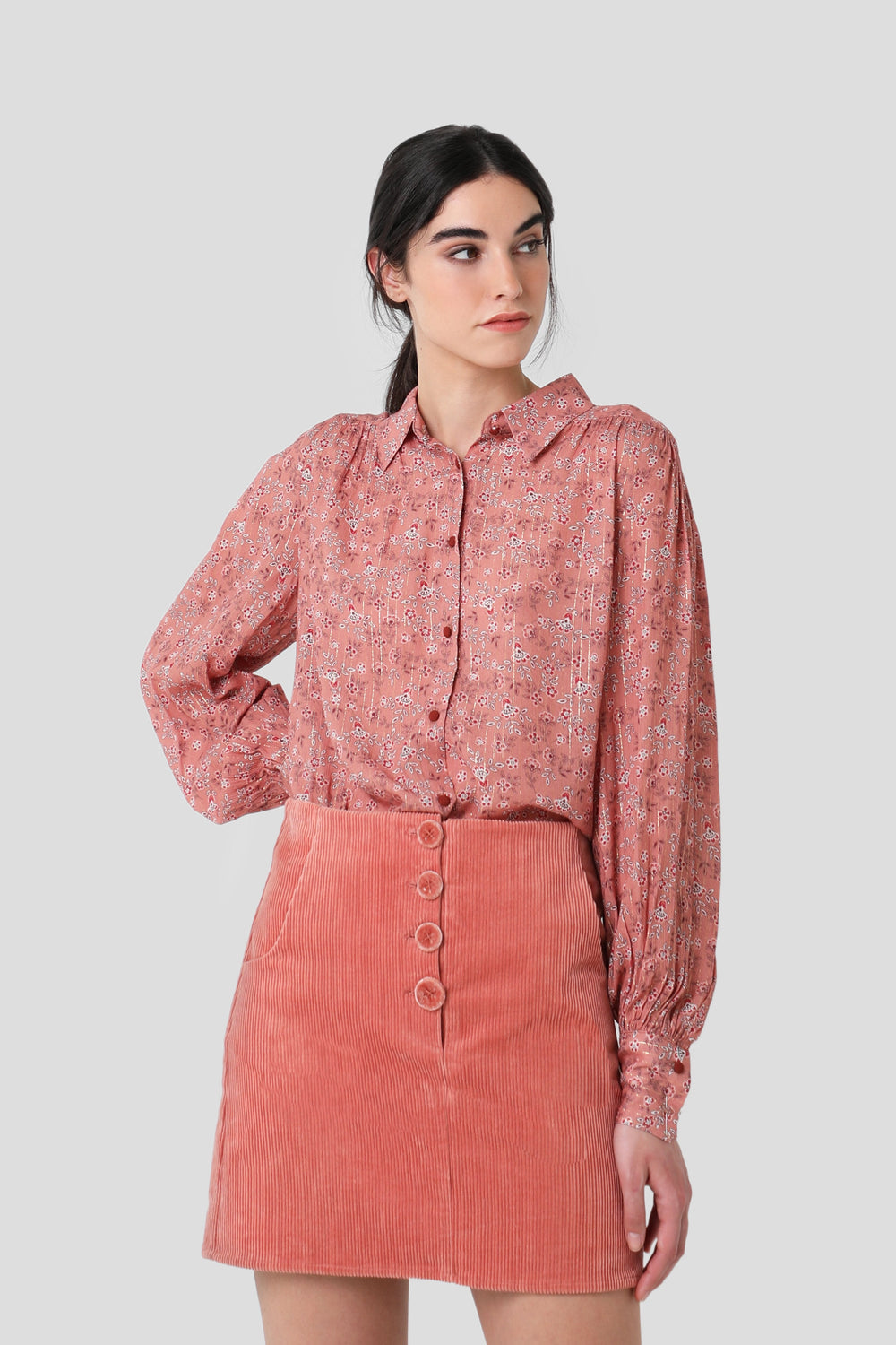 Blusa con estampado de flores confeccionada en tejido de lurex. Corte Regular Fit, cuello clásico y cierre con botones forrados. Manga larga abullonada terminada en puño.