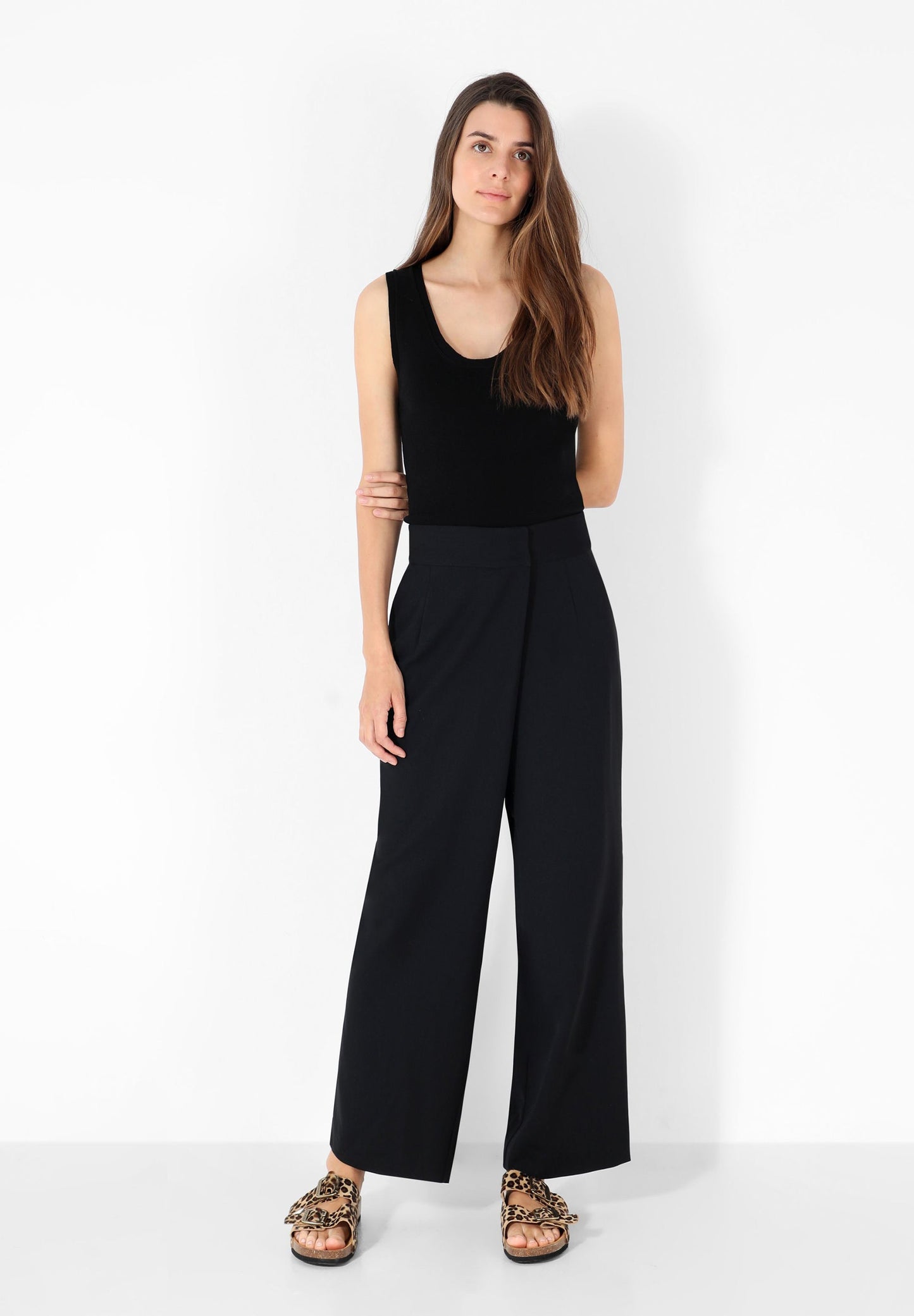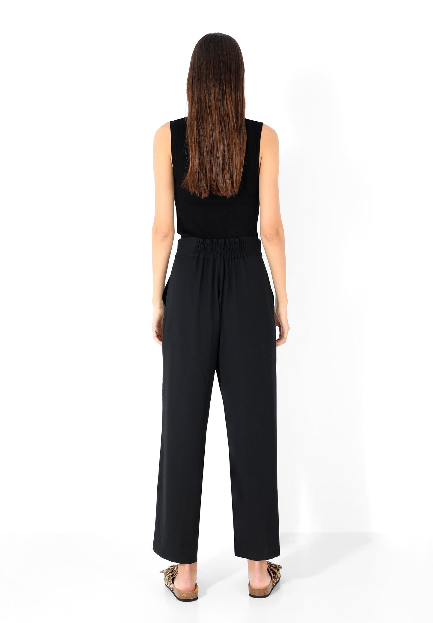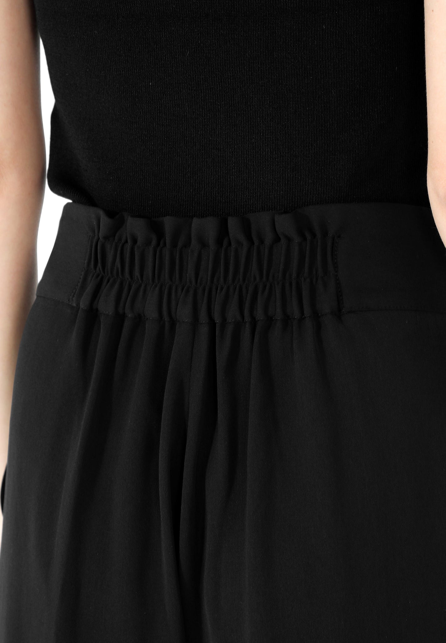 Pantalón confeccionado en tejido de poliéster. Corte culotte, cierre con corchete y cremallera ocultos. Detalle de frunce trasero.