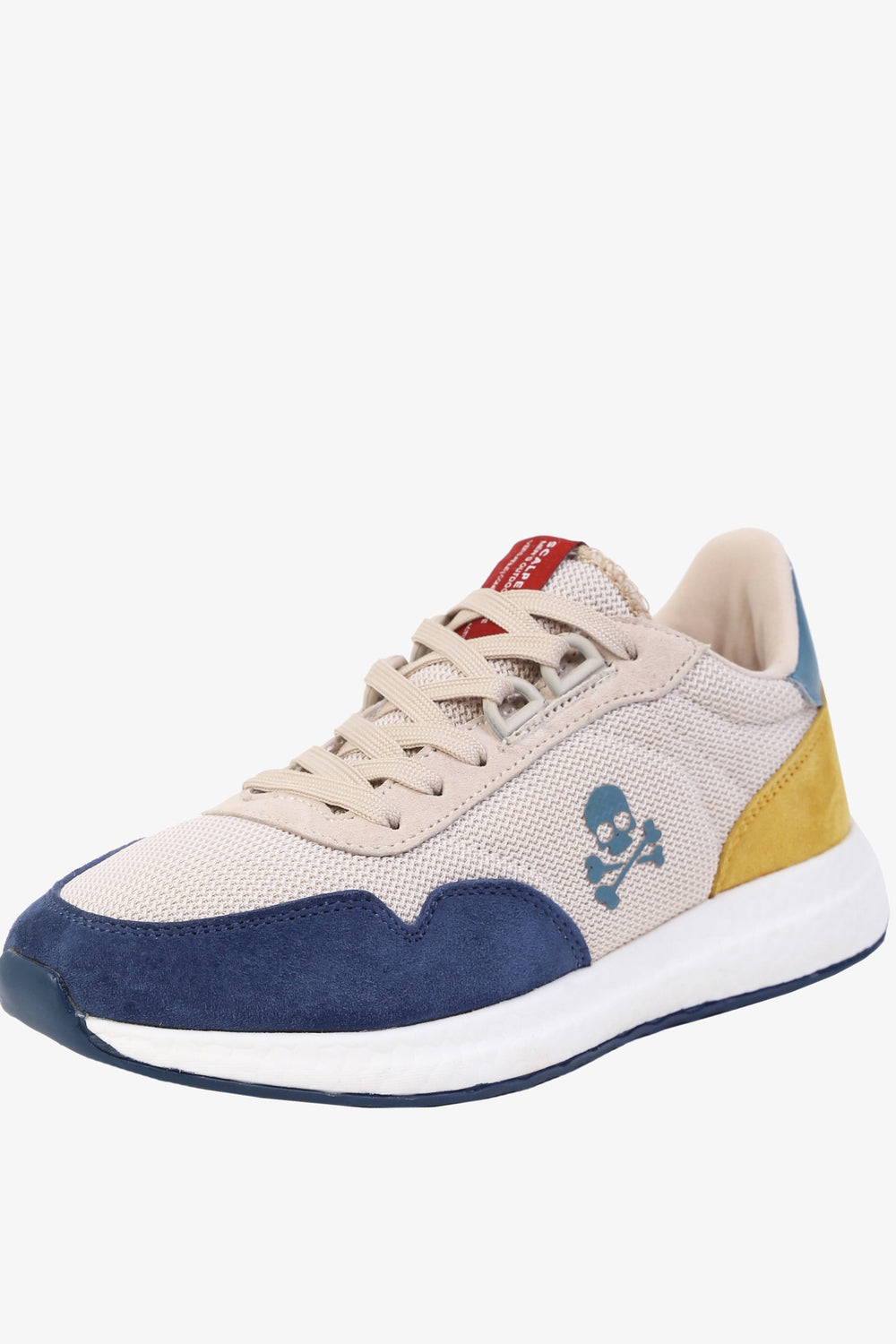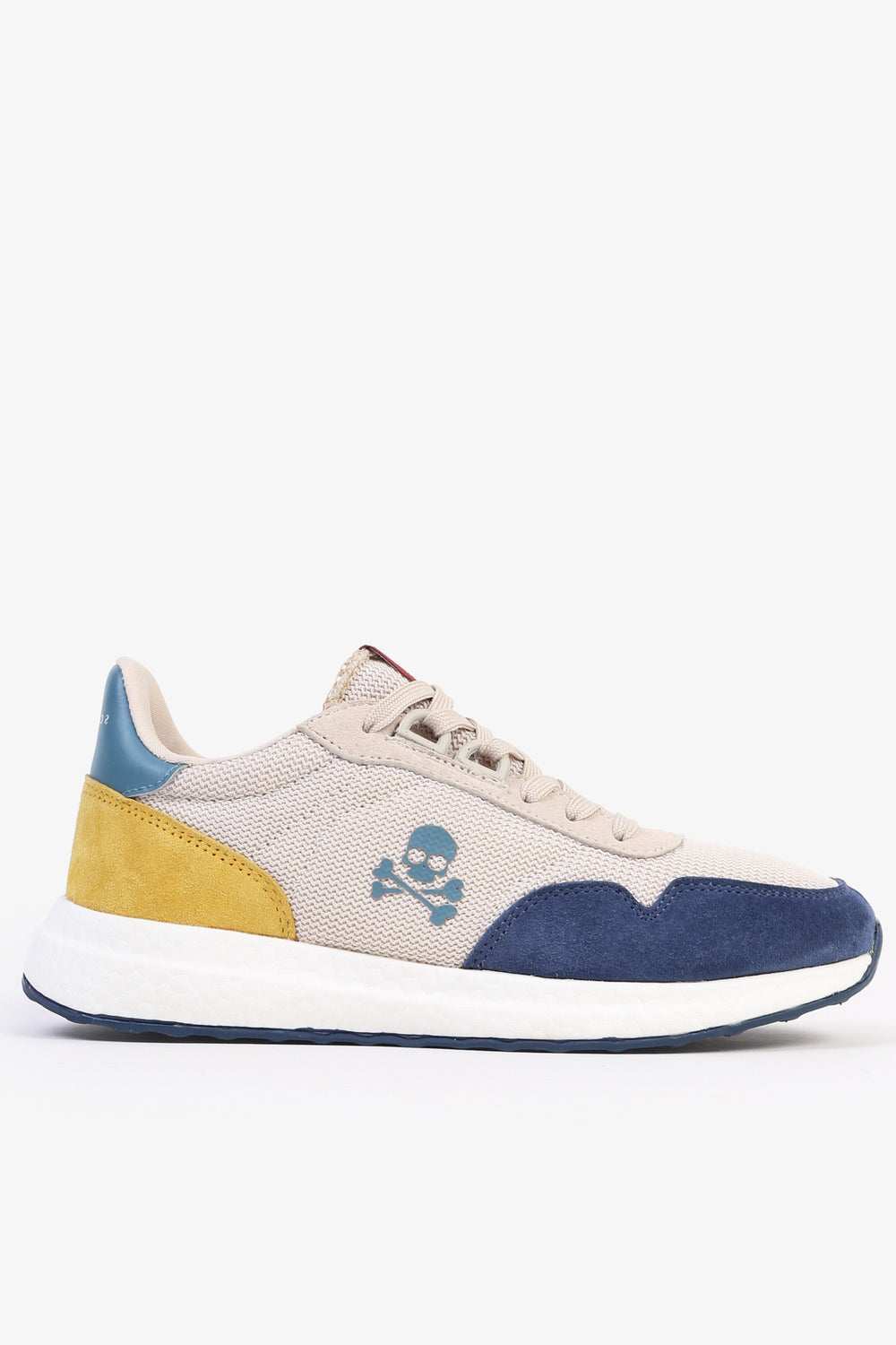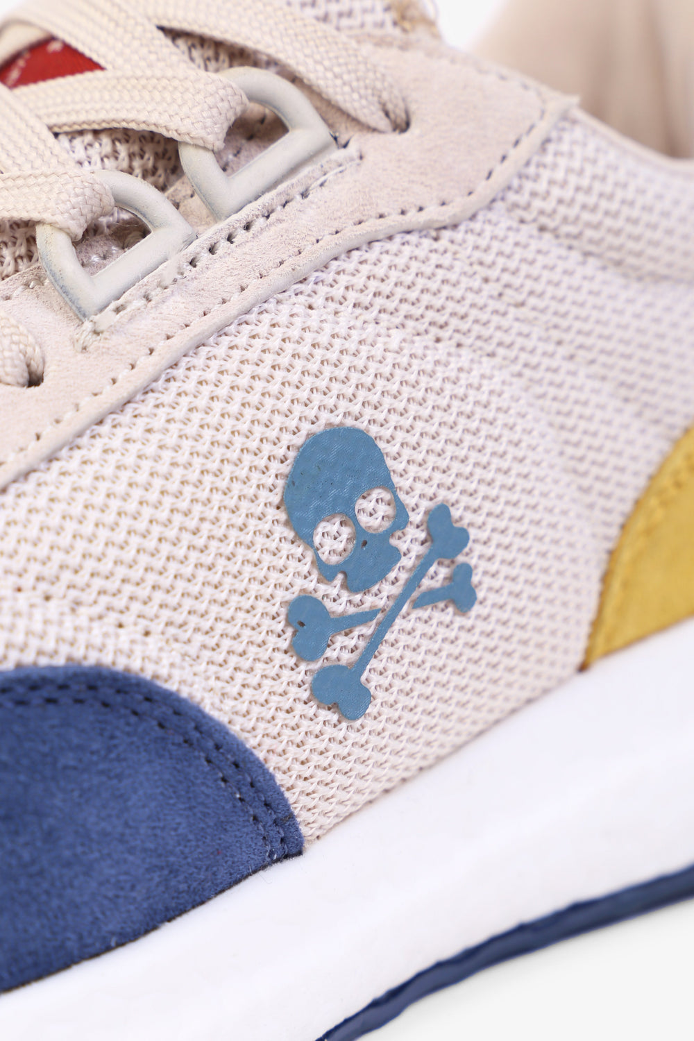 Sneakers confeccionada en piel de cerdo. Cierre con cordones a tono y malla delantera. Detalle de suela de goma ancha y calavera lateral.