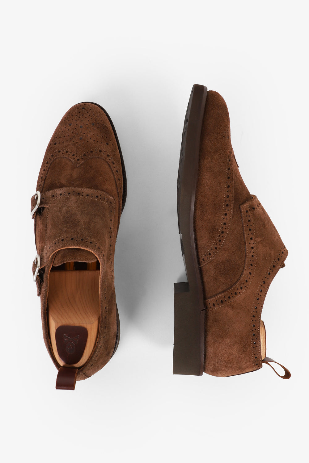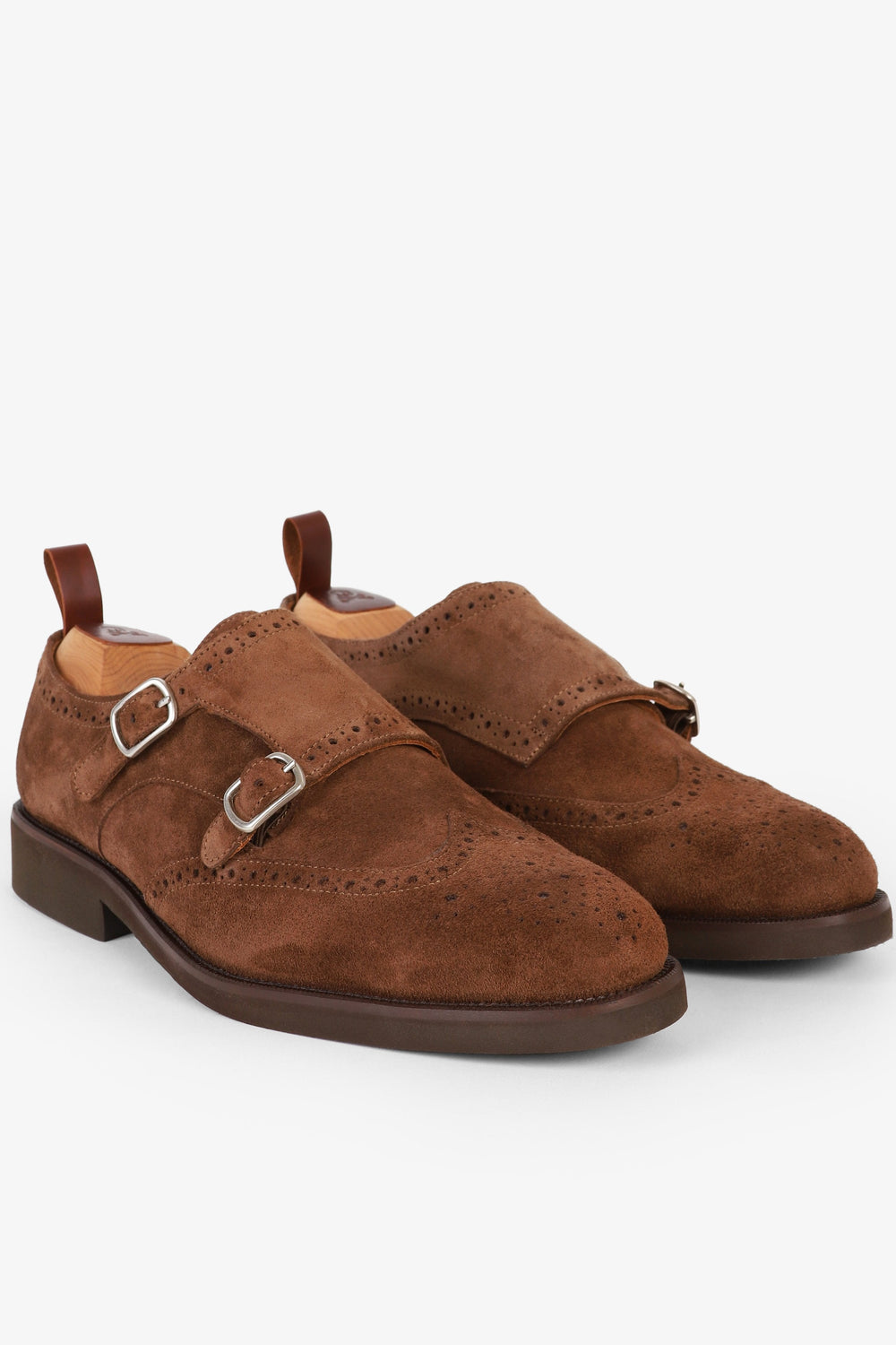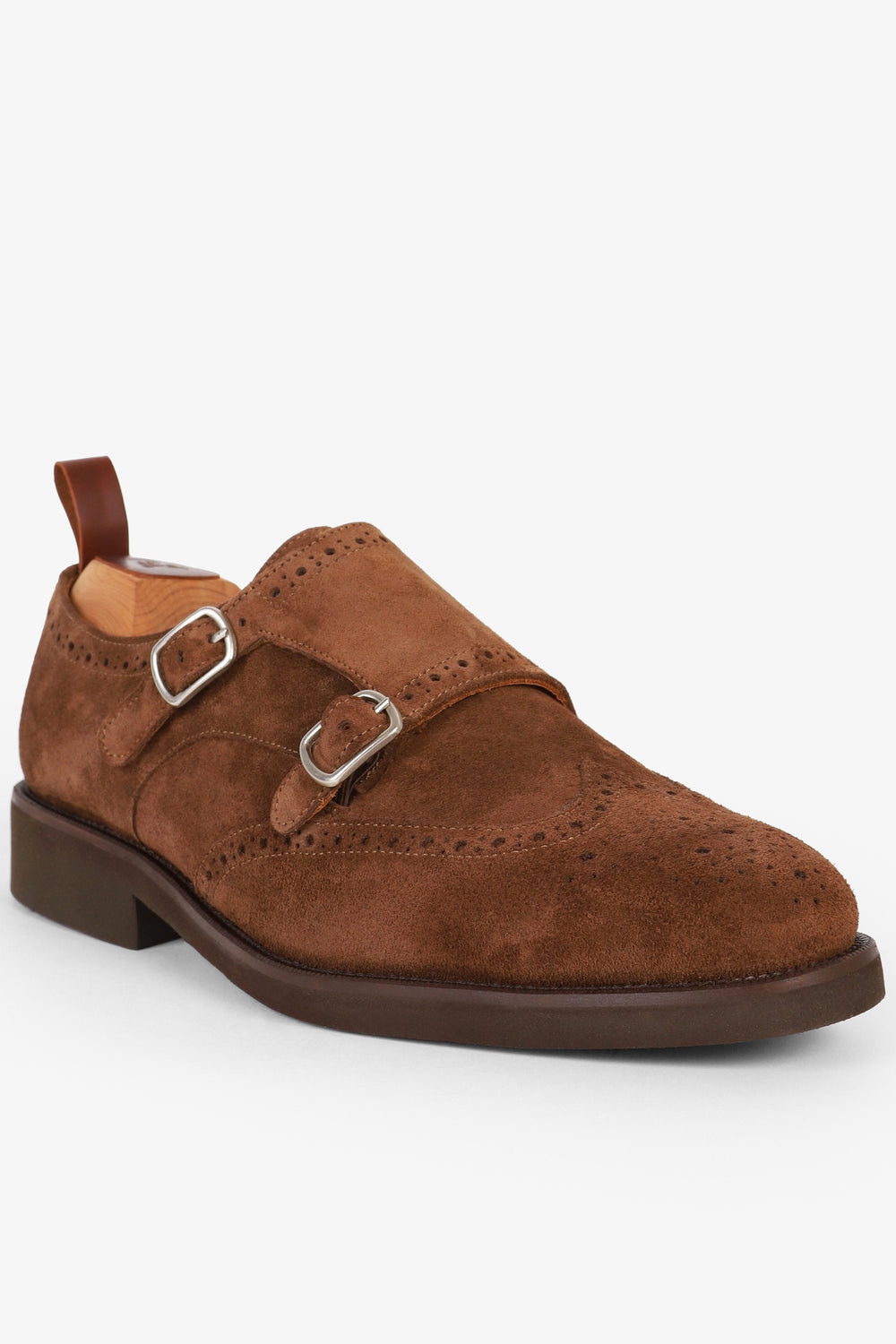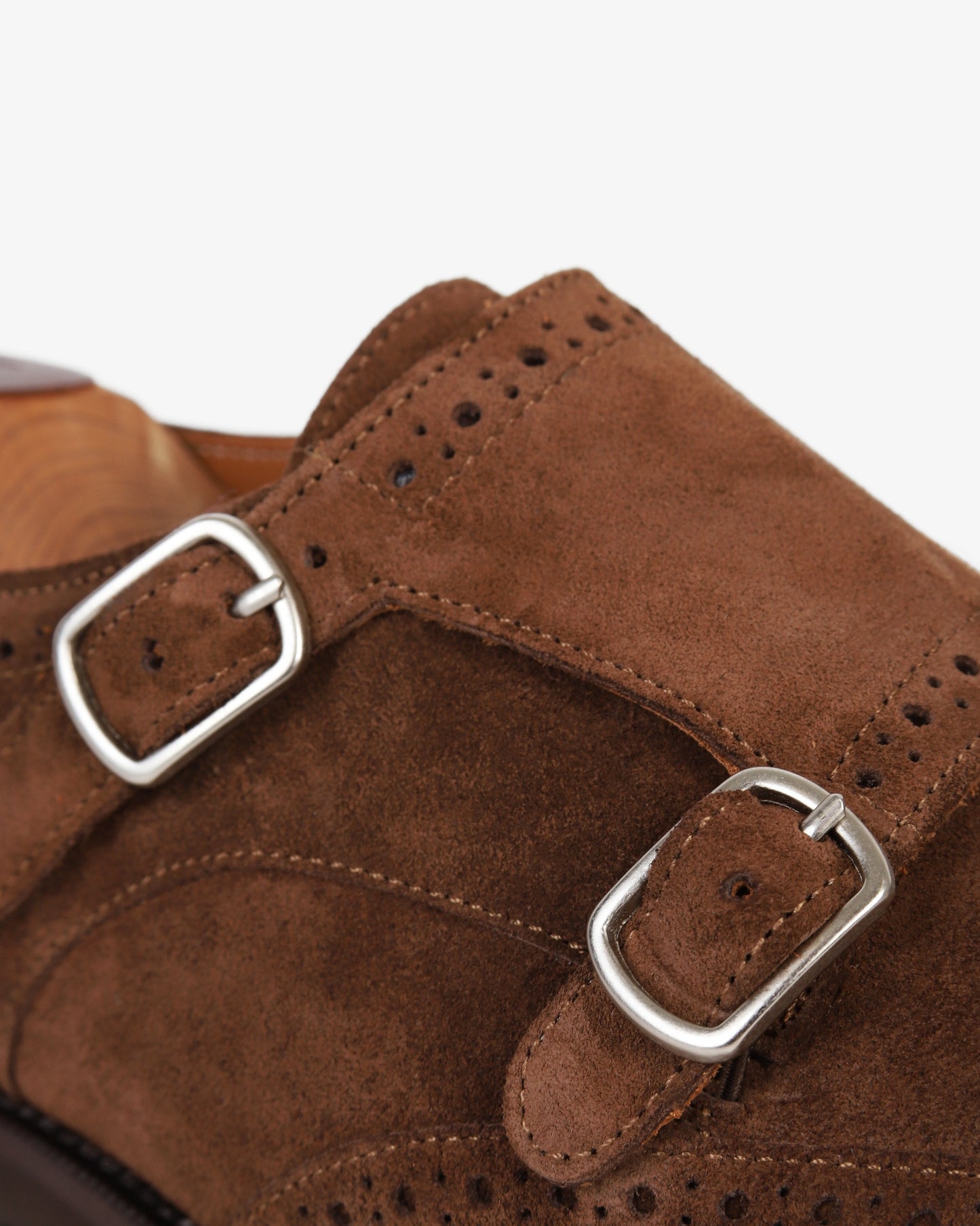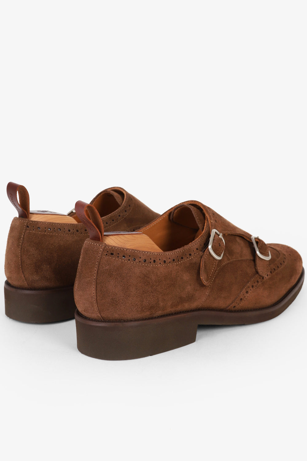 Zapatos monk confeccionados en 100% piel y exterior de serraje. Cierra con doble hebilla metálica, suela de goma extraligera, pala vega y detalle picados. Forro de piel. Fabricados en España.