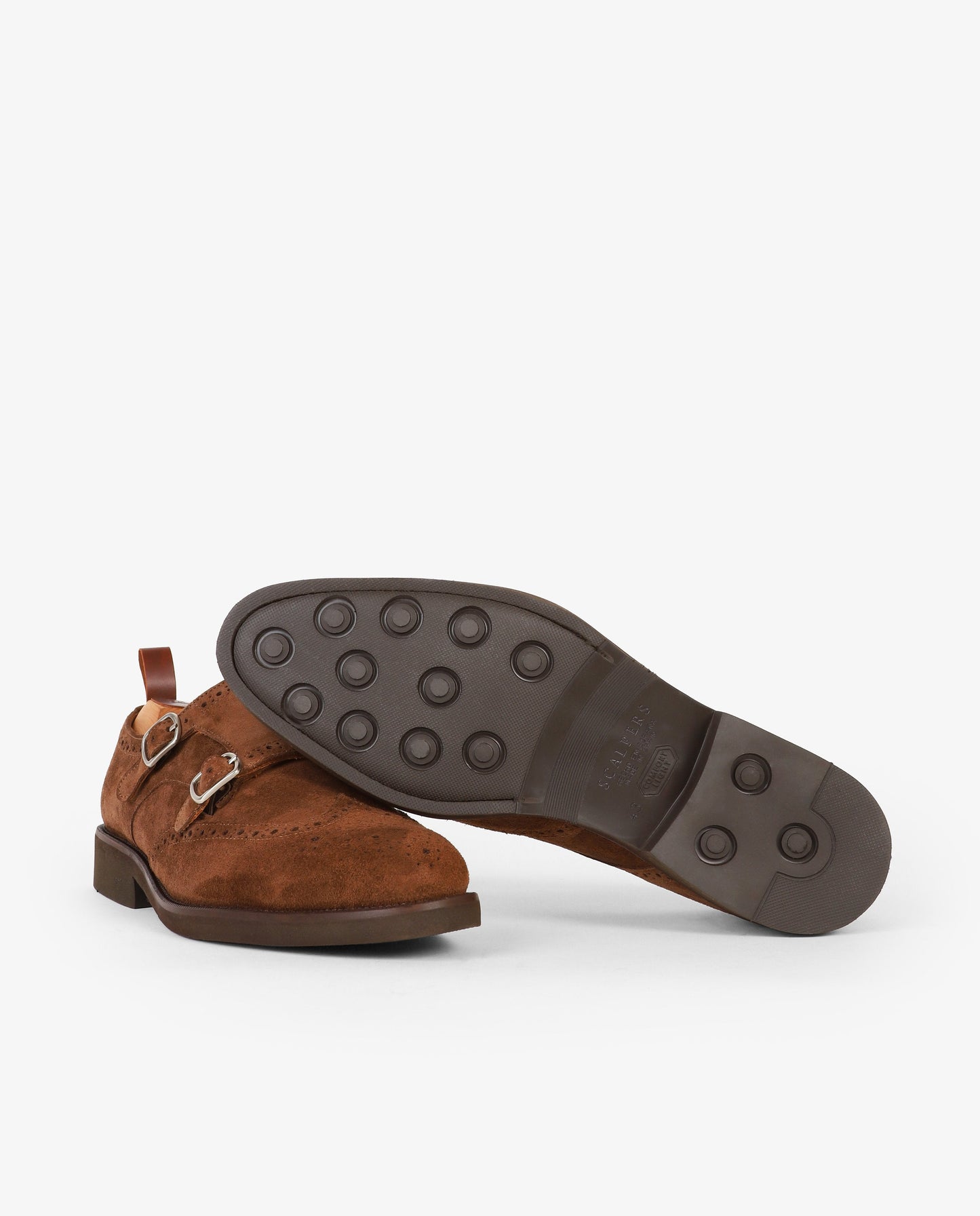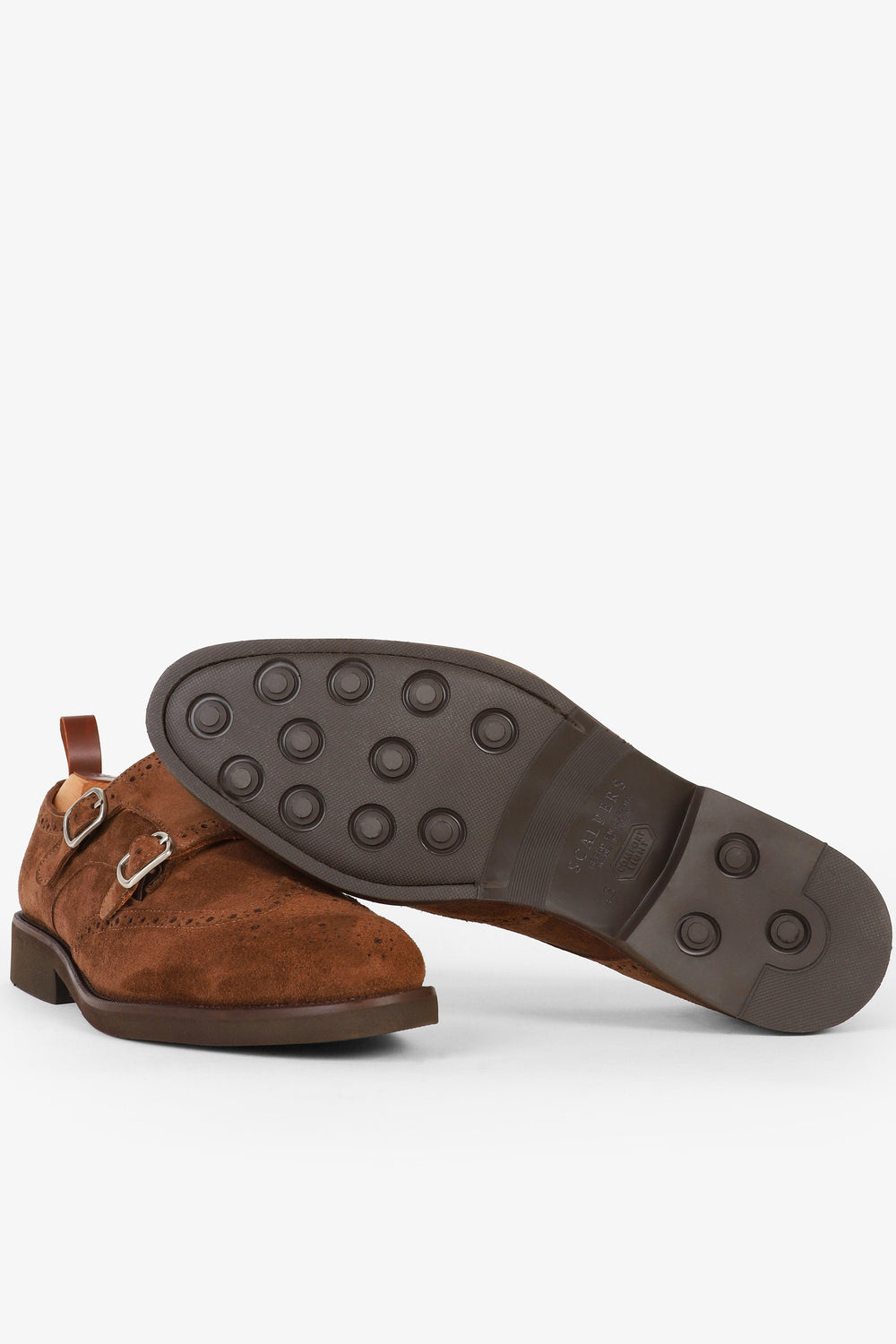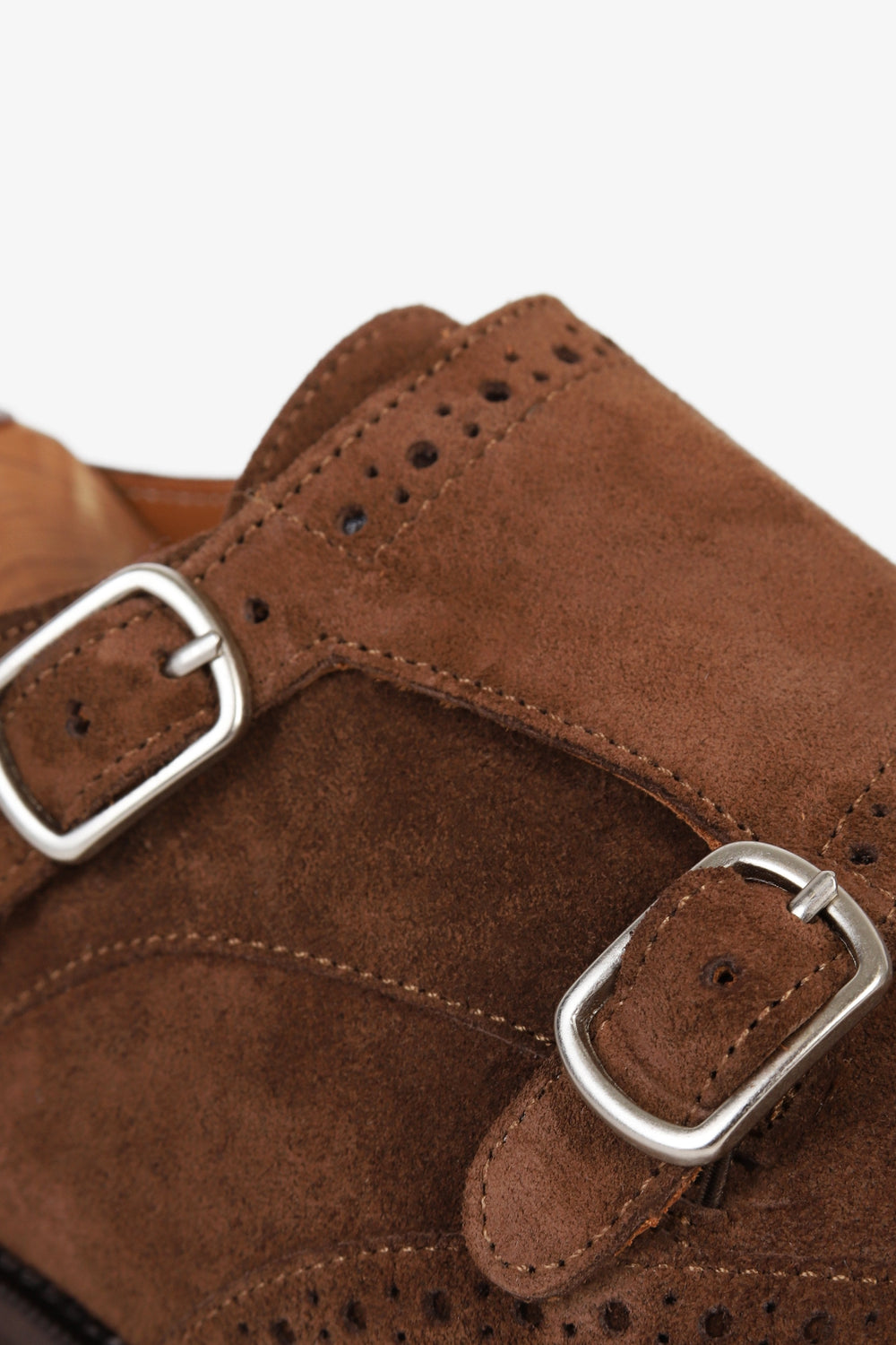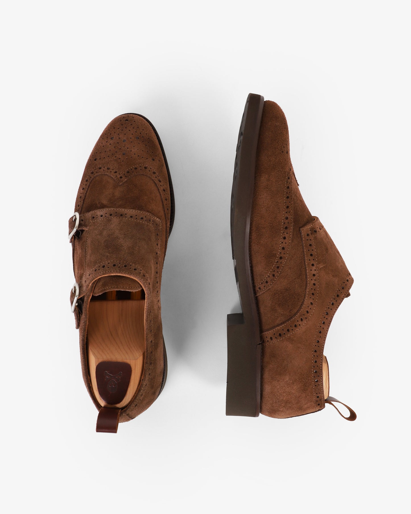 Zapatos monk confeccionados en 100% piel y exterior de serraje. Cierra con doble hebilla metálica, suela de goma extraligera, pala vega y detalle picados. Forro de piel. Fabricados en España.