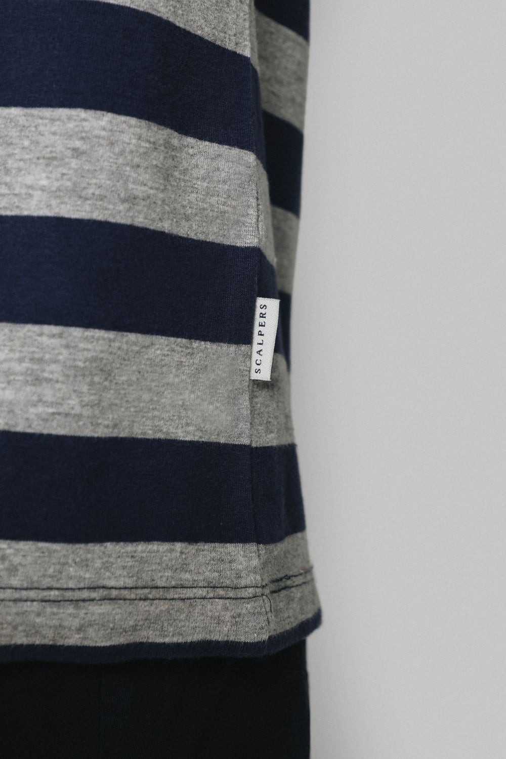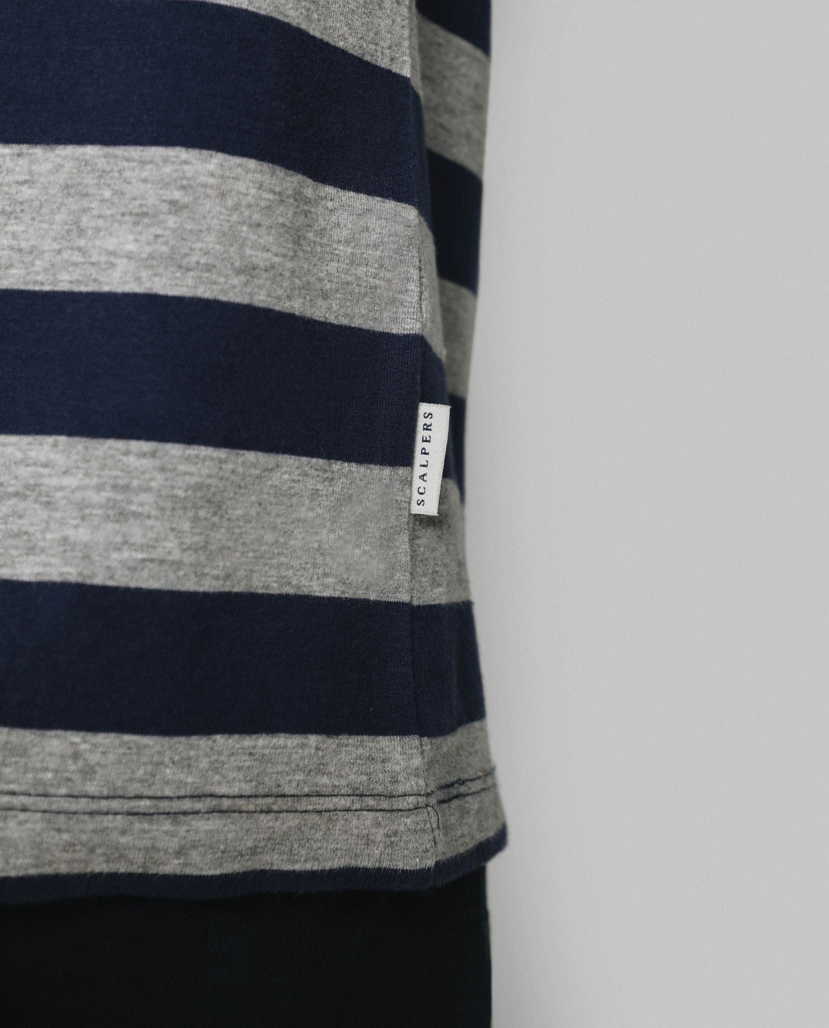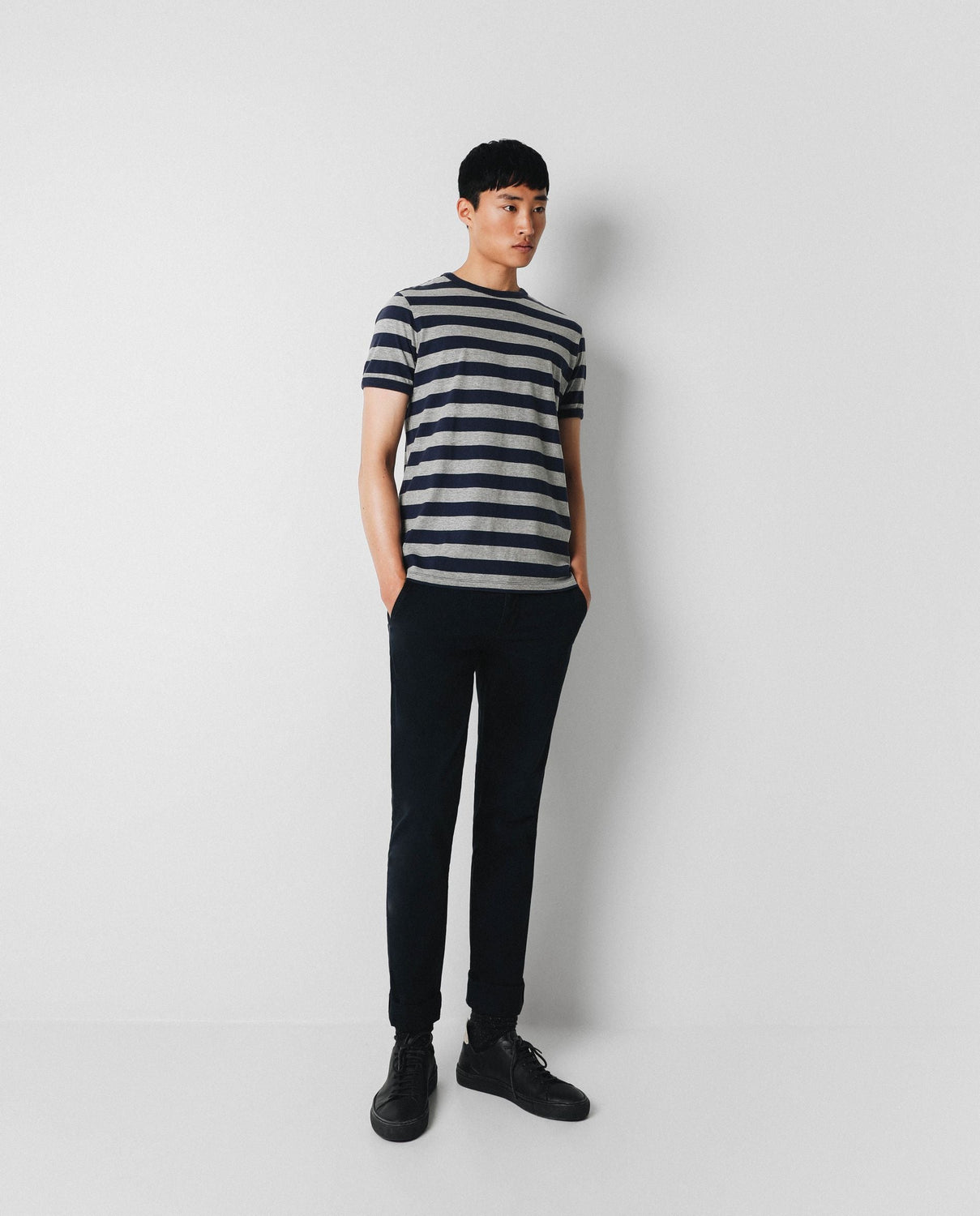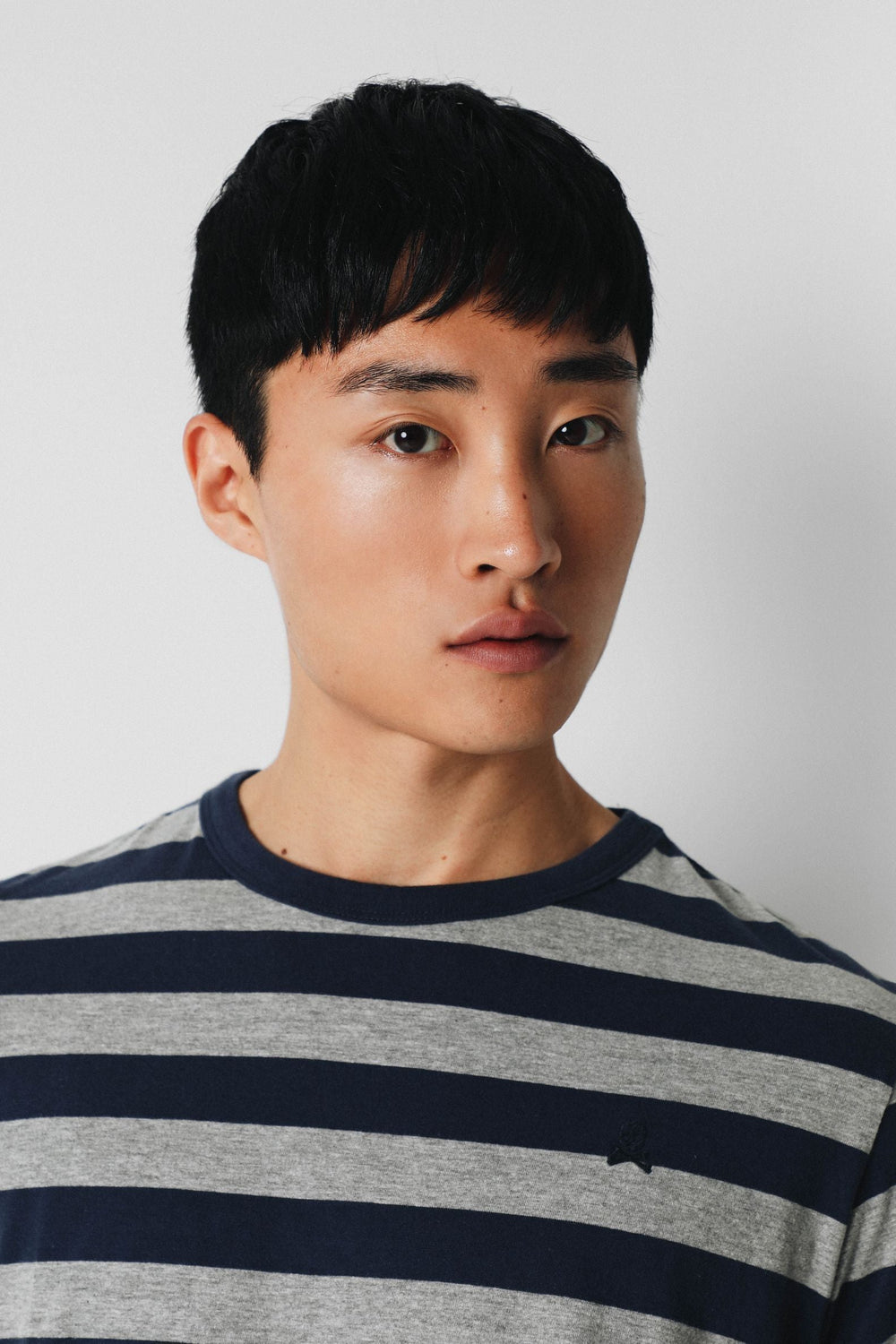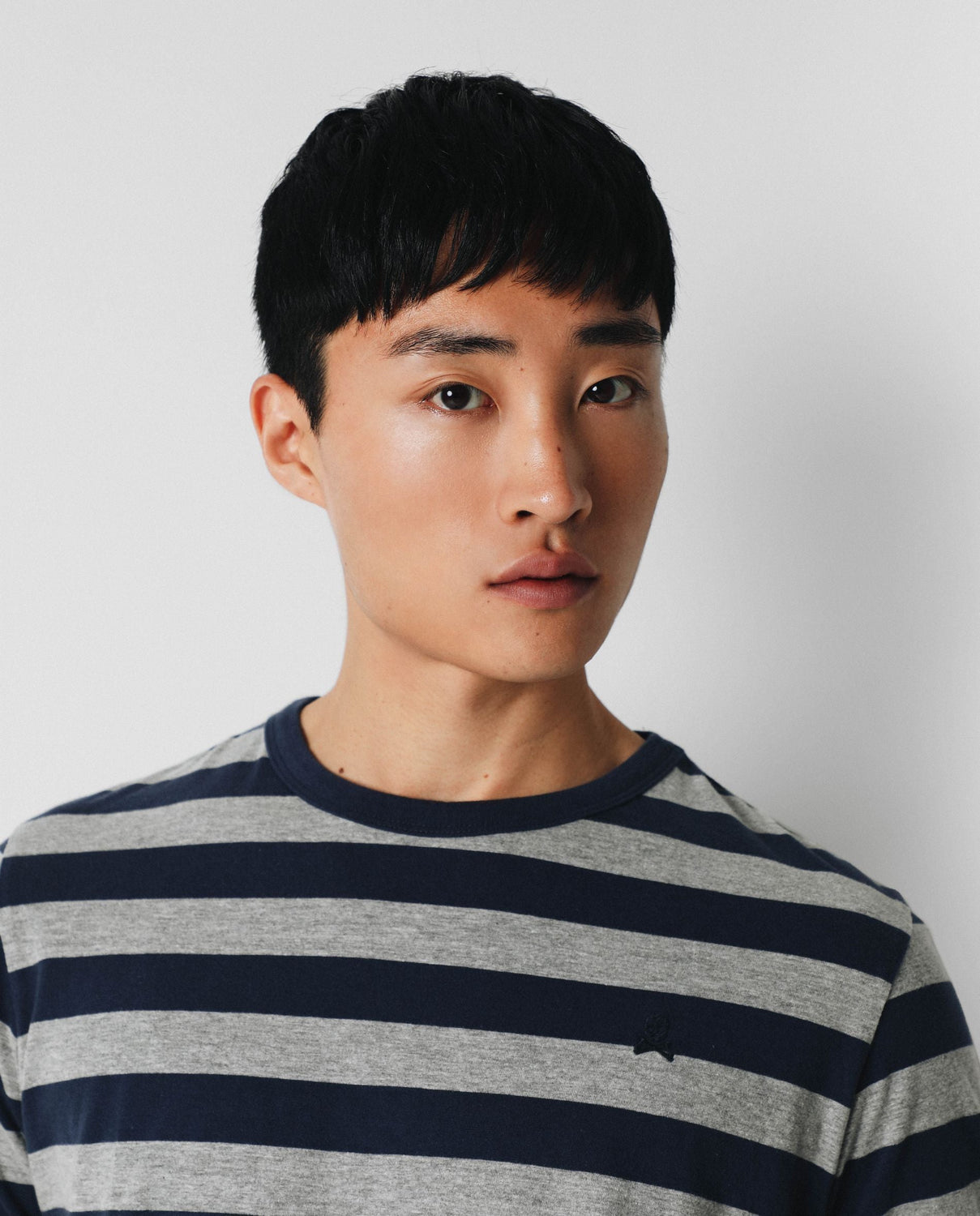 Camiseta con estampado de rayas confeccionada en tejido de algodón. Corte Regular Fit, cuello redondo y manga corta.