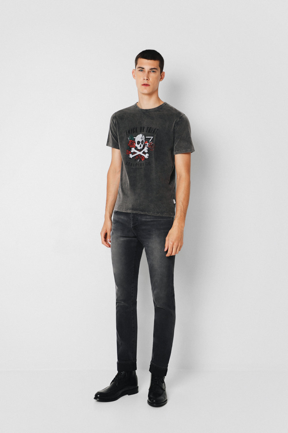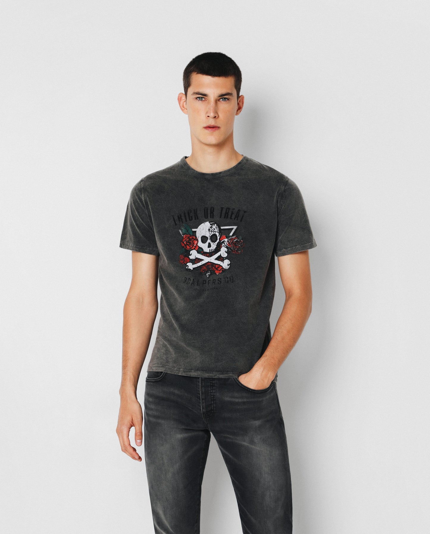 Camiseta confeccionada en tejido de algodón. Corte Regular Fit, cuello redondo y manga corta. Detalle de print frontal de calavera.