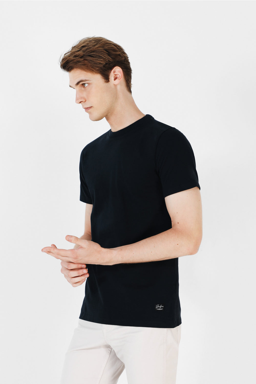 Camiseta confeccionada en tejido 100% algodón. Corte Regular Fit, cuello redondo y manga corta. Detalle de bordado en el bajo.