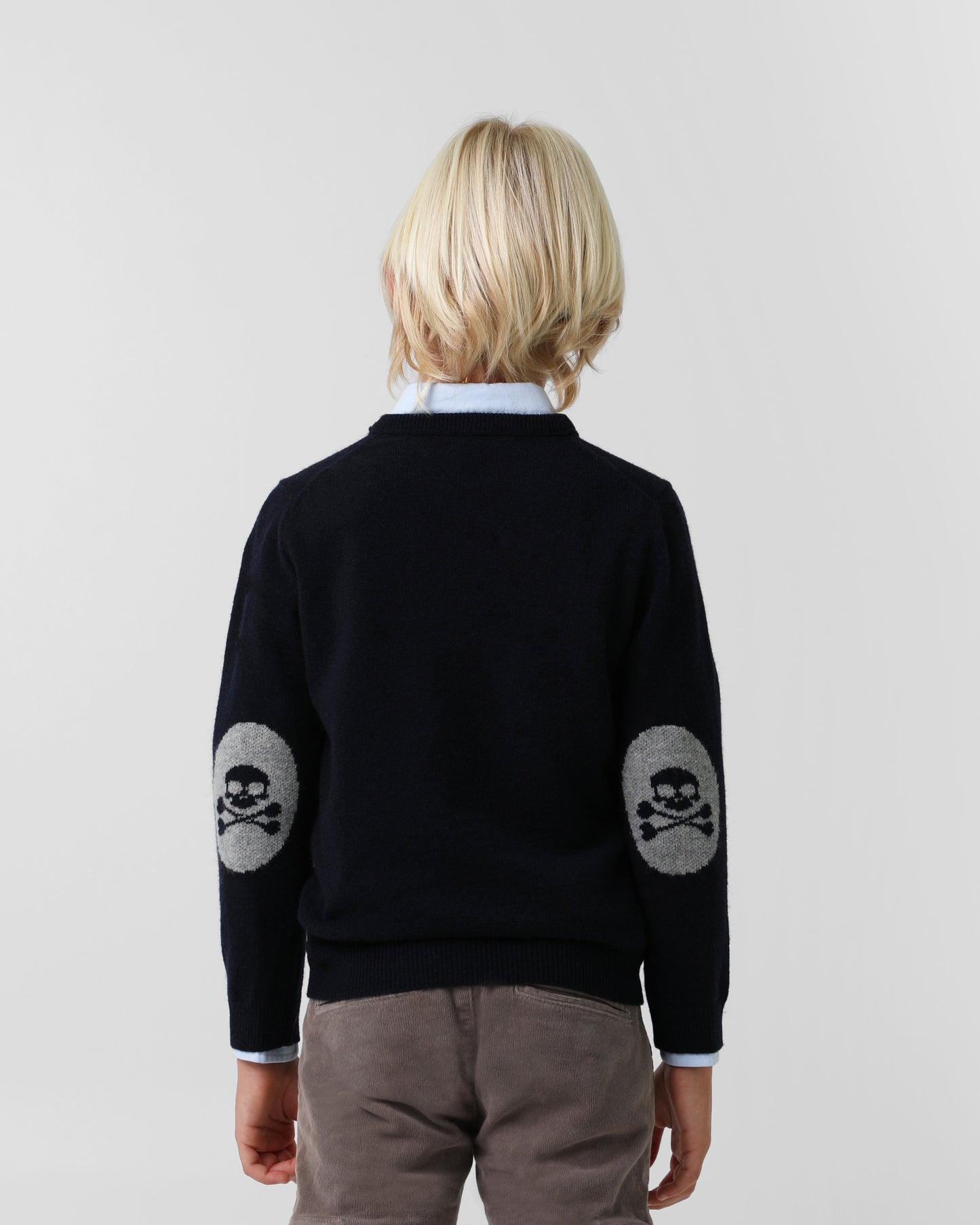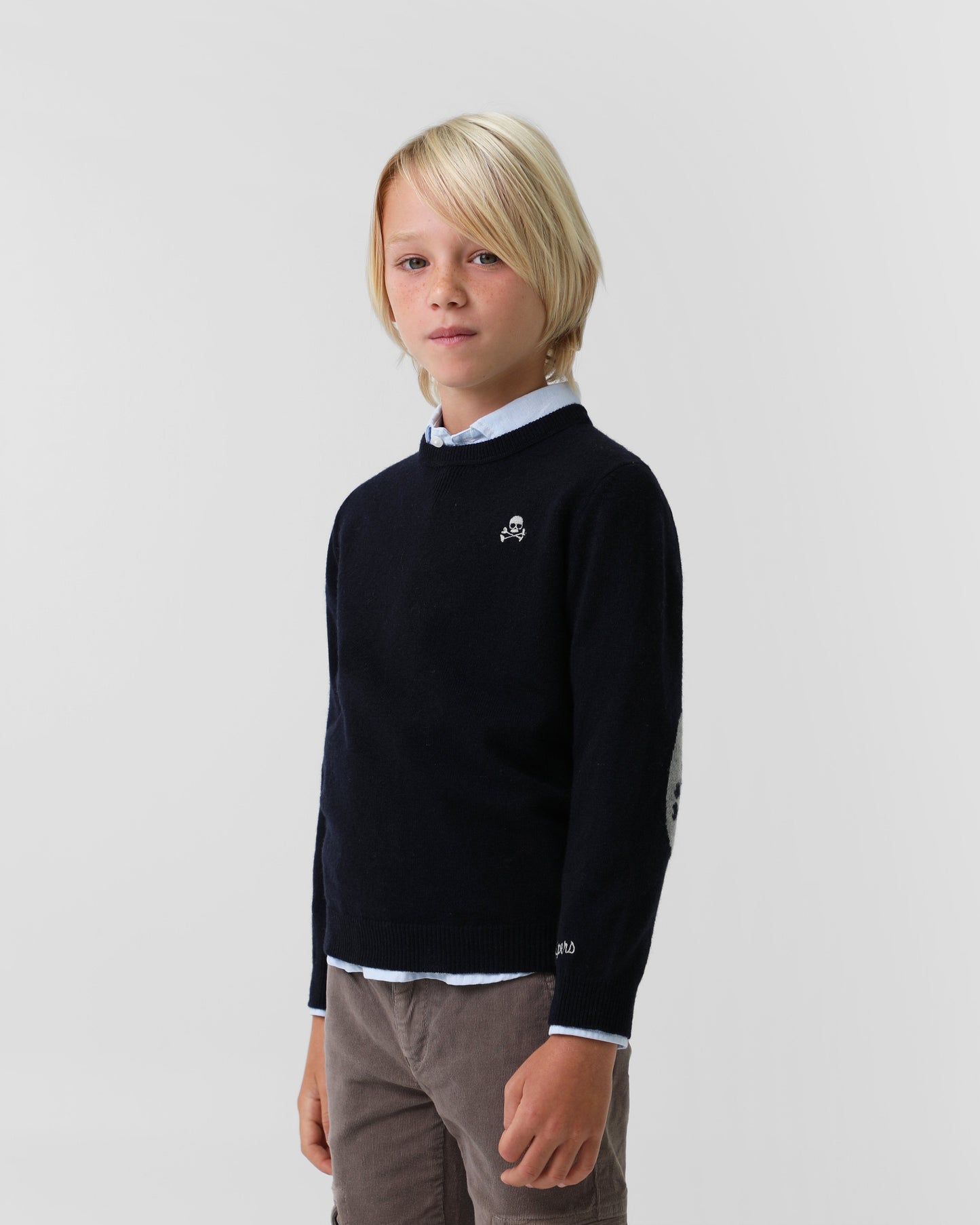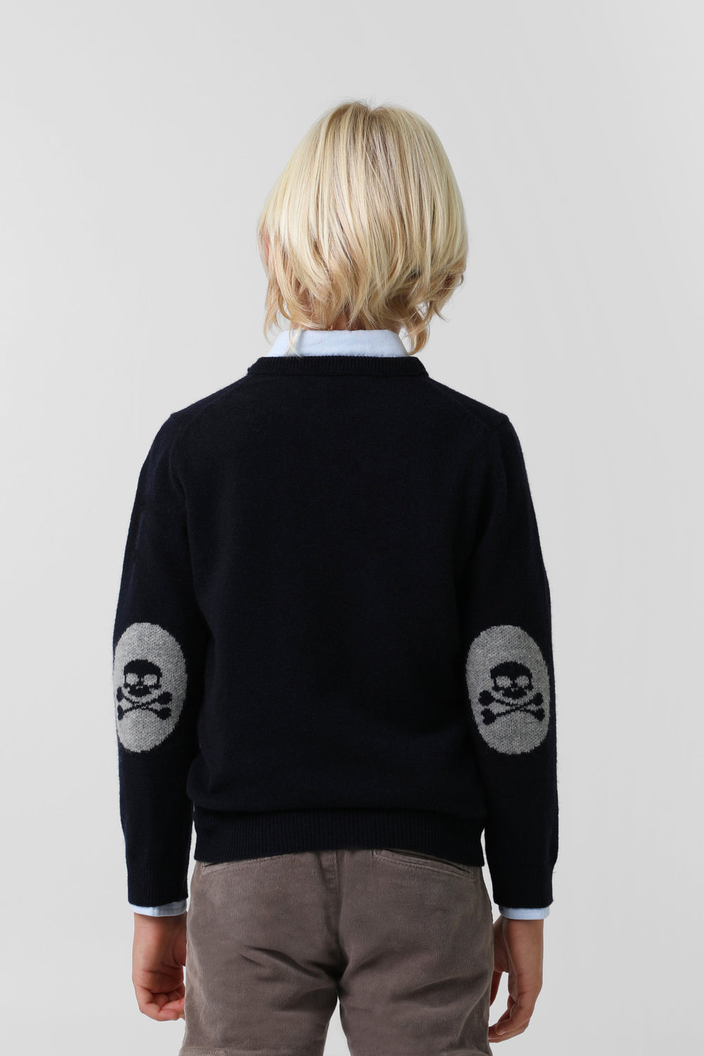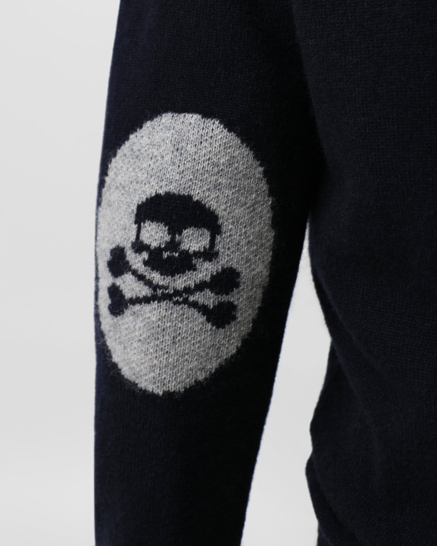 Jersey confeccionado en tejido 100% lana. Corte Regular Fit, cuello redondo y manga larga con detalle de coderas. Detalle de calavera bordada en el pecho a contraste.