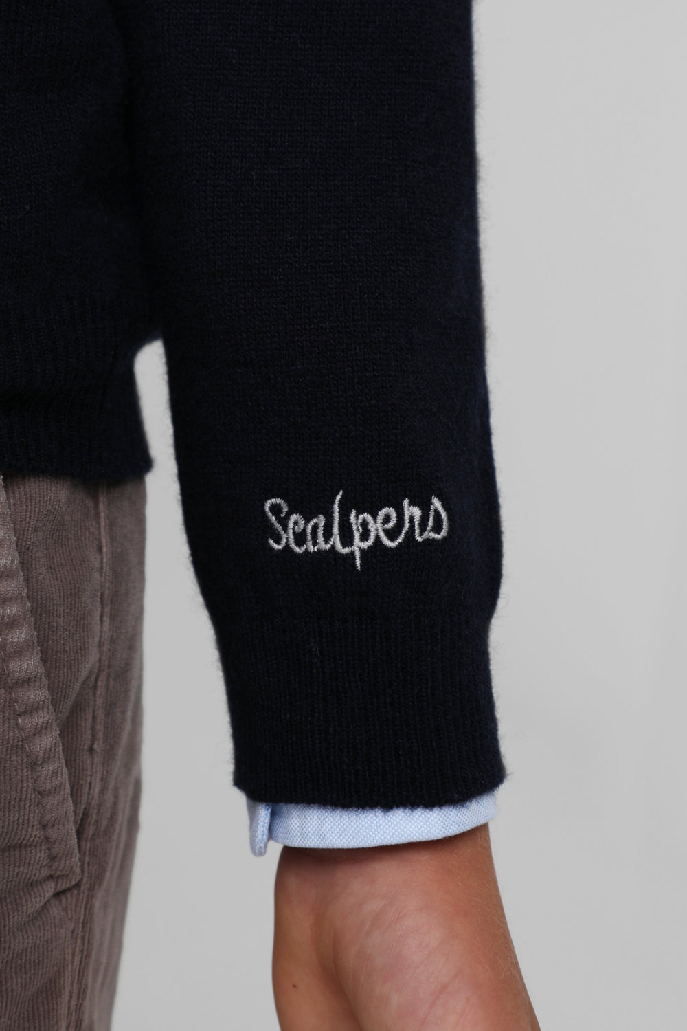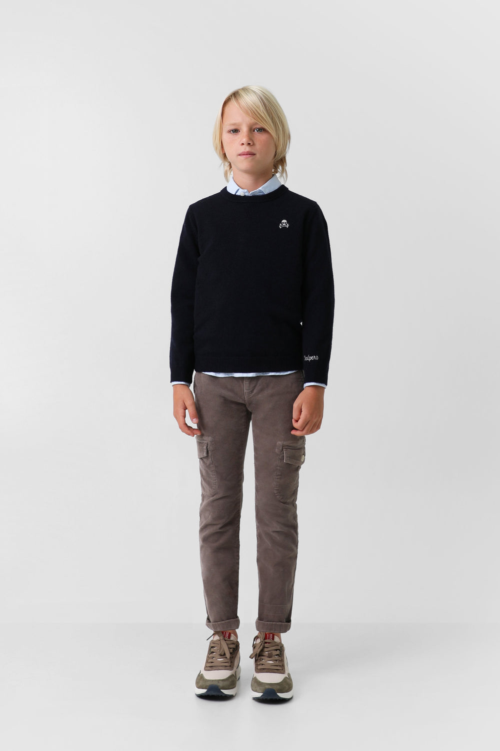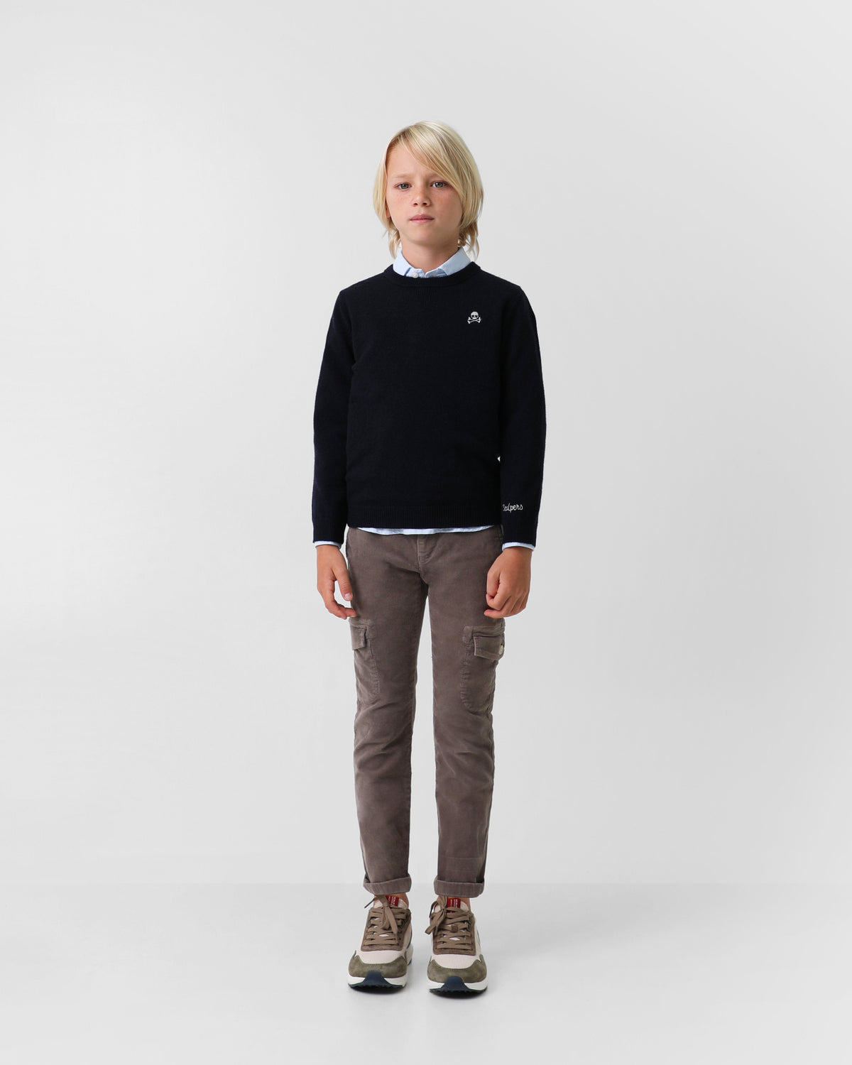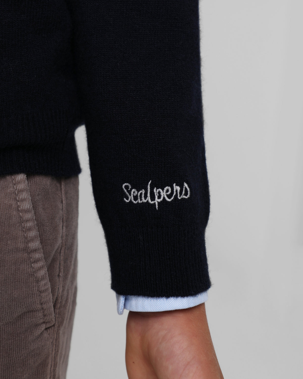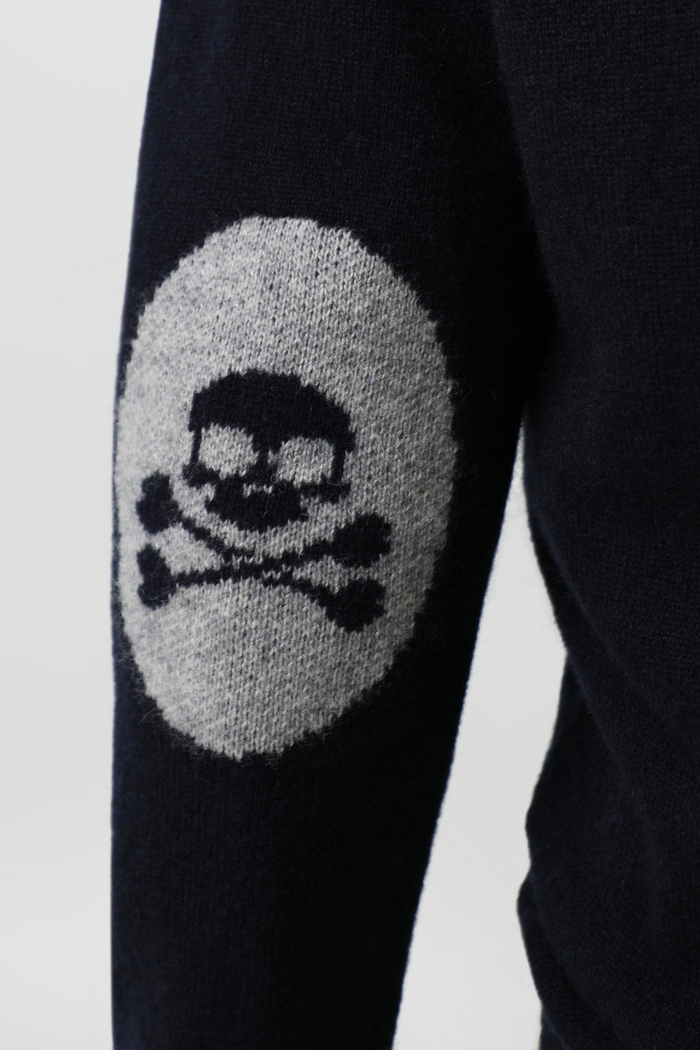 Jersey confeccionado en tejido 100% lana. Corte Regular Fit, cuello redondo y manga larga con detalle de coderas. Detalle de calavera bordada en el pecho a contraste.