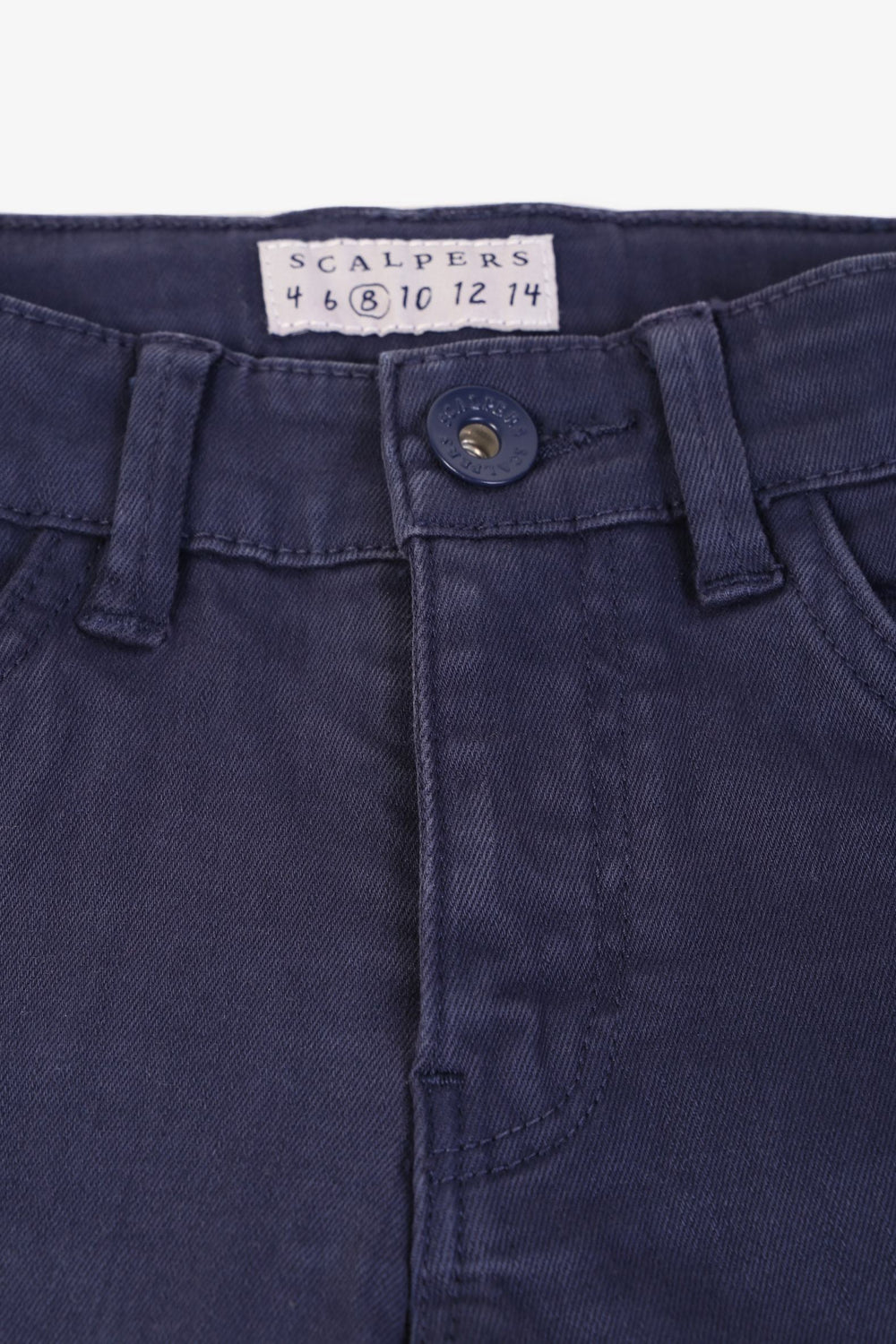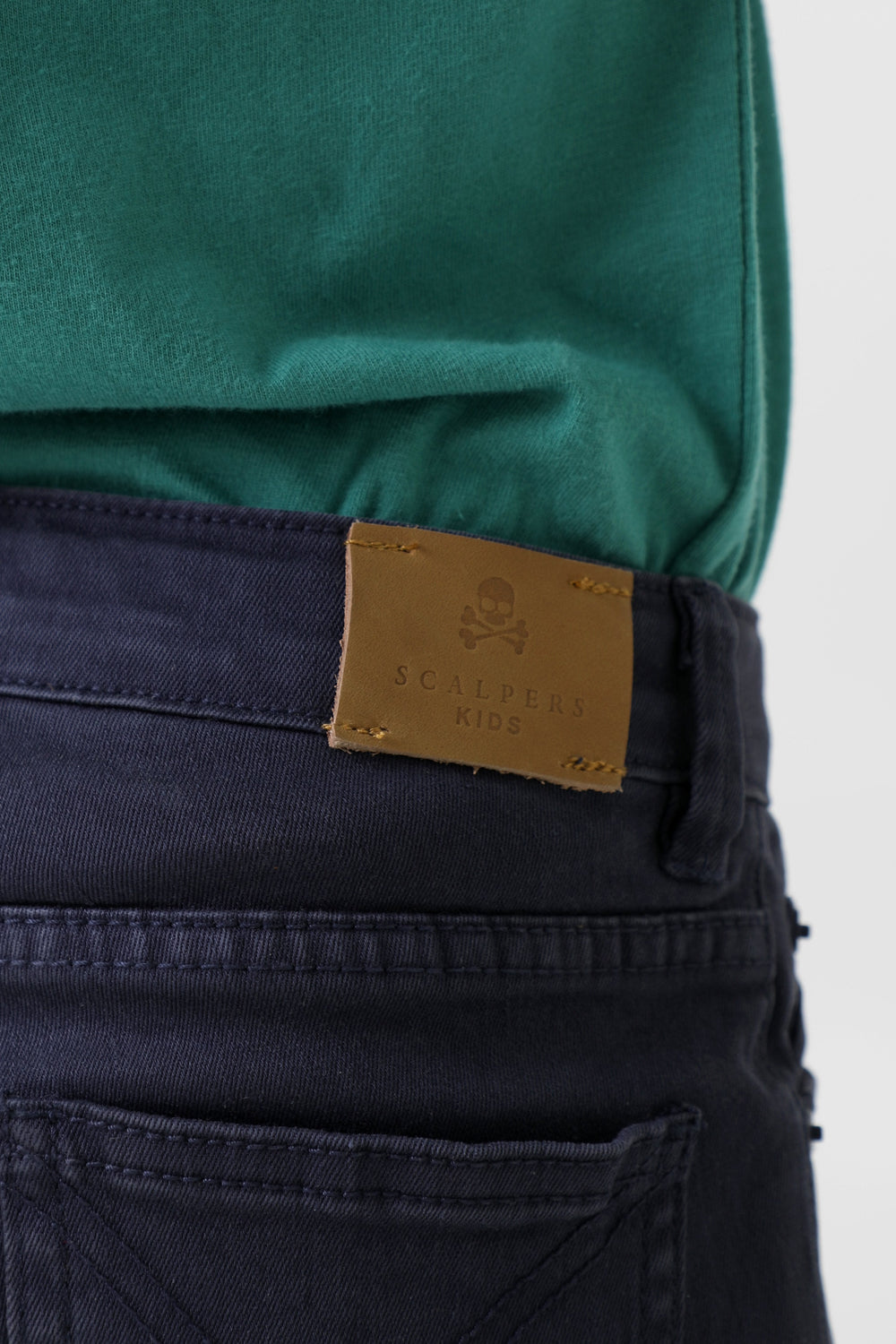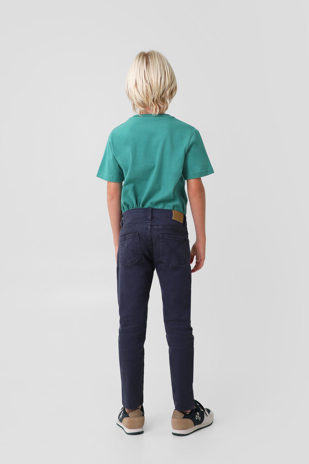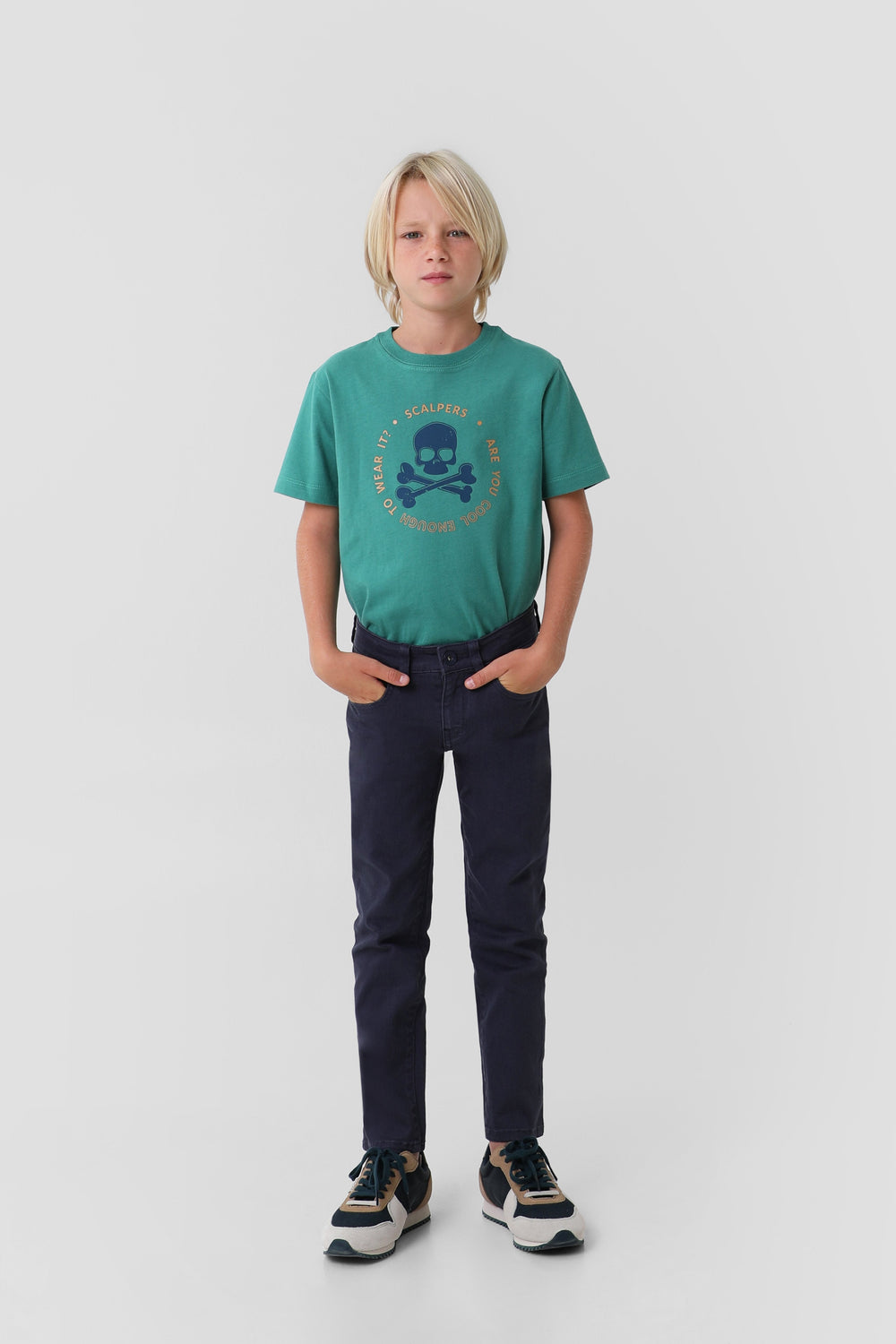 Pantalón confeccionado en algodón. Corte Slim Fit, cierre con botón y cremallera oculta por tapeta. Bolsillos delanteros y traseros. Tiene trabillas y detalle de calavera a tono en bolsillo cerillero.