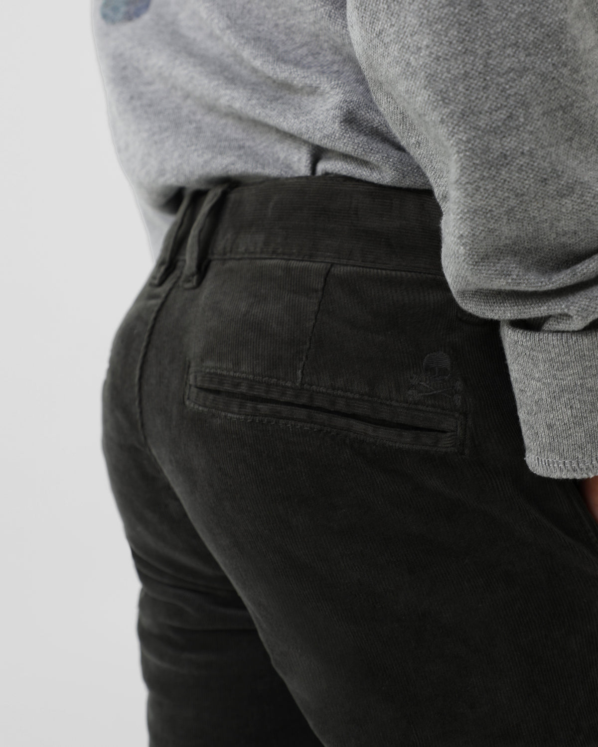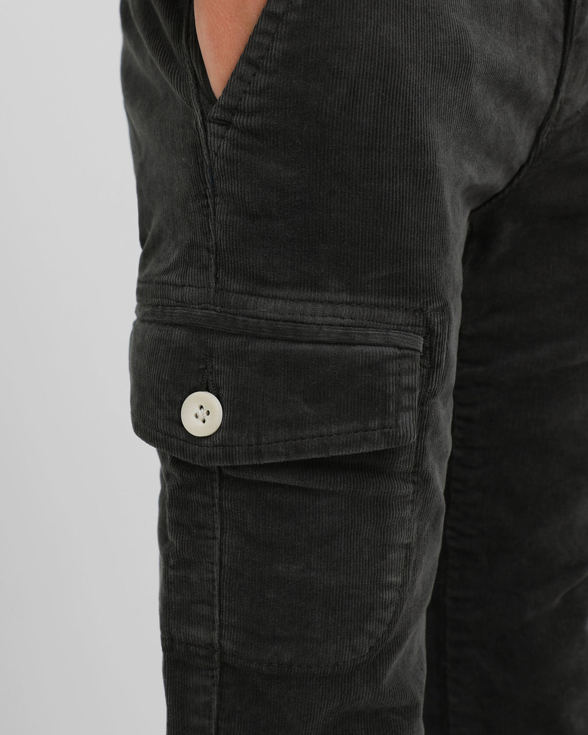 Pantalón confeccionado en tejido de pana. Corte Regular Fit con cinturilla ajustable, cierre con botón y cremallera. Bolsillos laterales y trabillas.