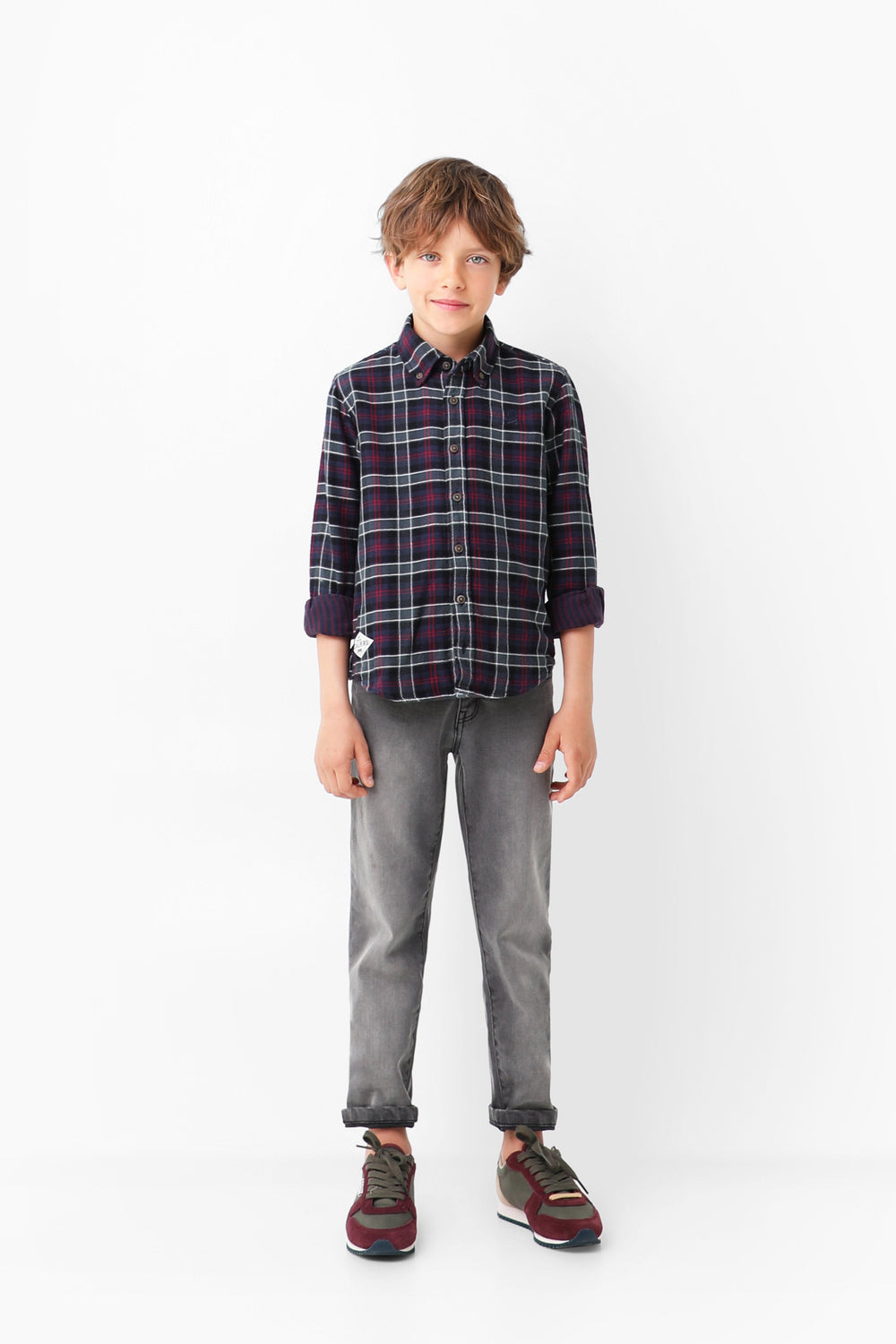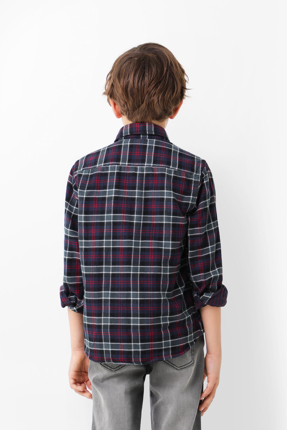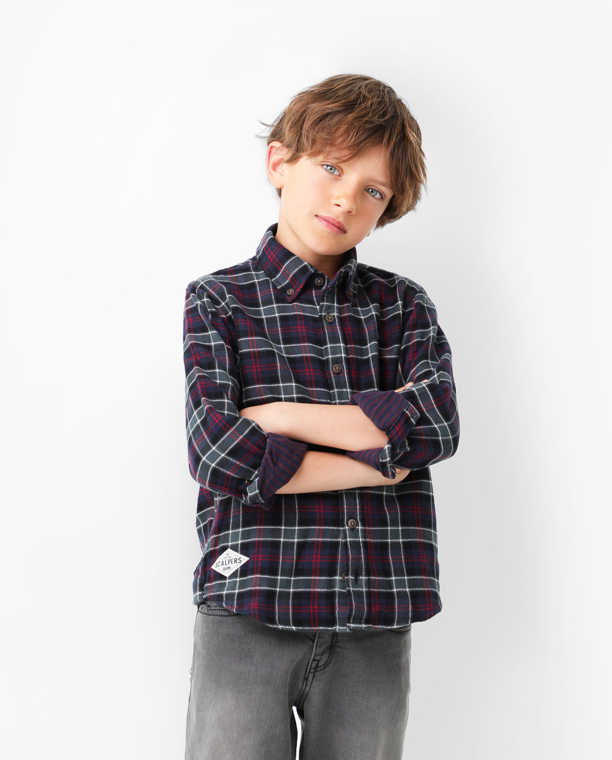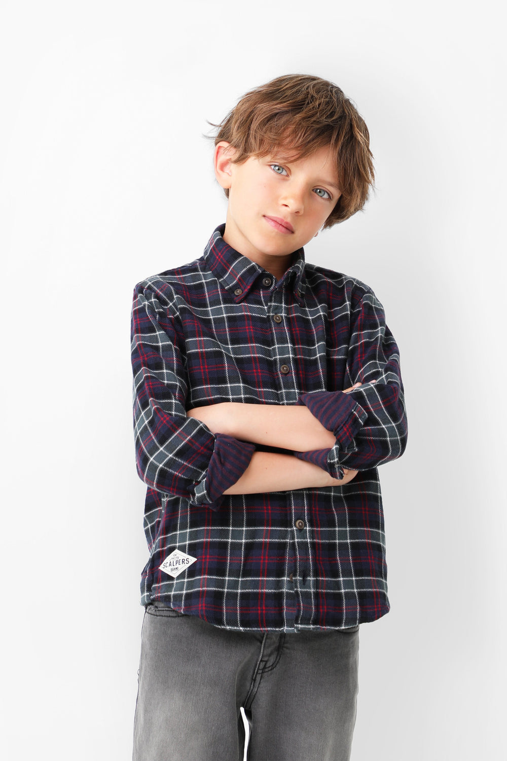 Camisa de cuadros confeccionada en tejido 100% algodón doble. Corte Regular Fit, cuello button down y cierre con botones. Manga larga y detalle de calavera a contraste bordada en el pecho.
