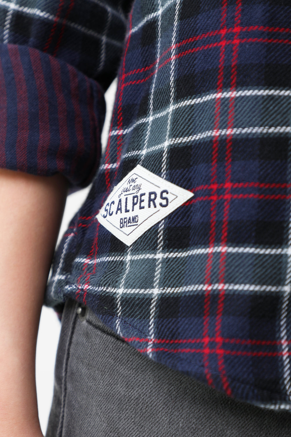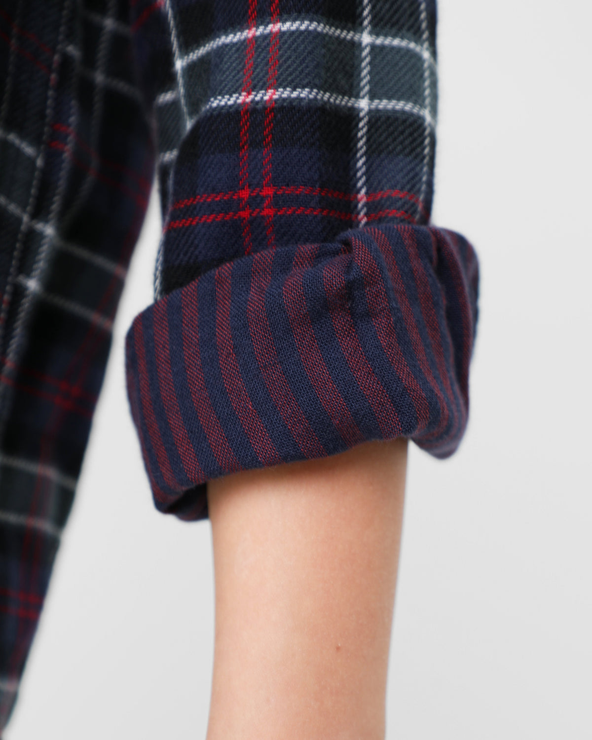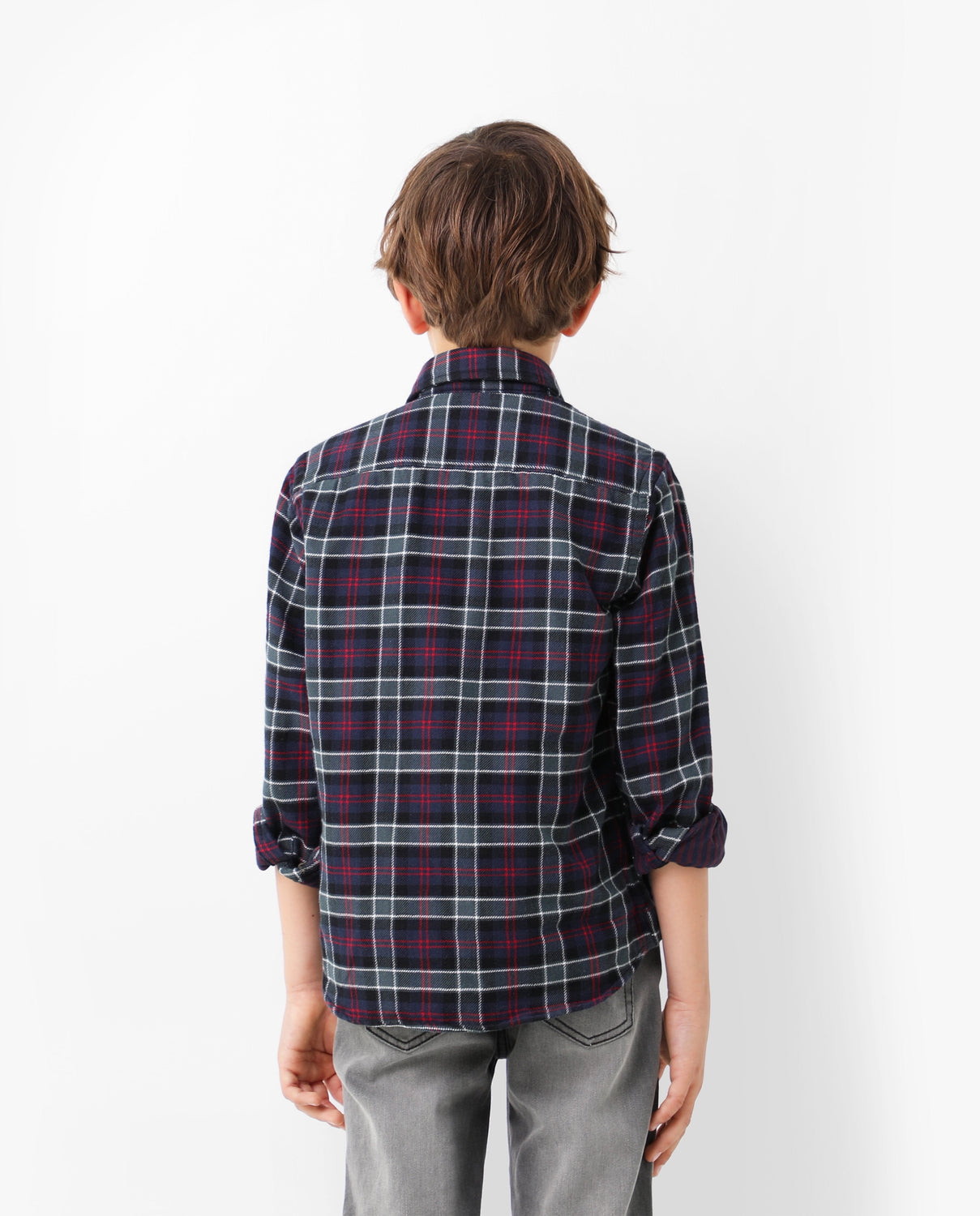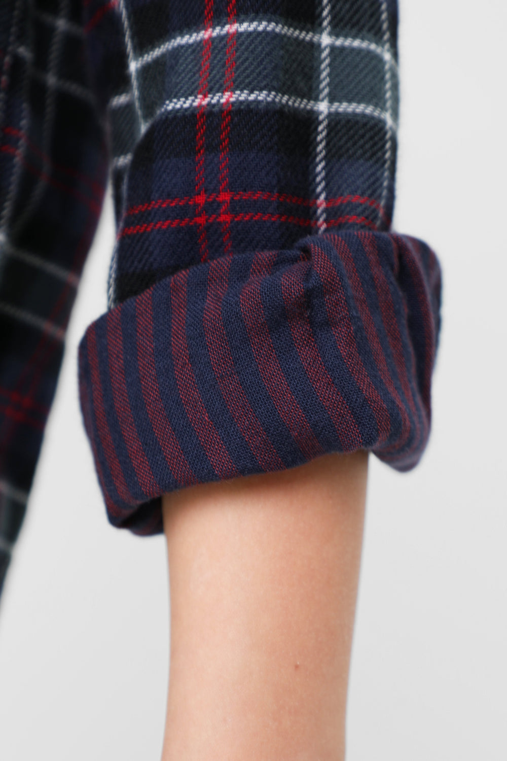 Camisa de cuadros confeccionada en tejido 100% algodón doble. Corte Regular Fit, cuello button down y cierre con botones. Manga larga y detalle de calavera a contraste bordada en el pecho.