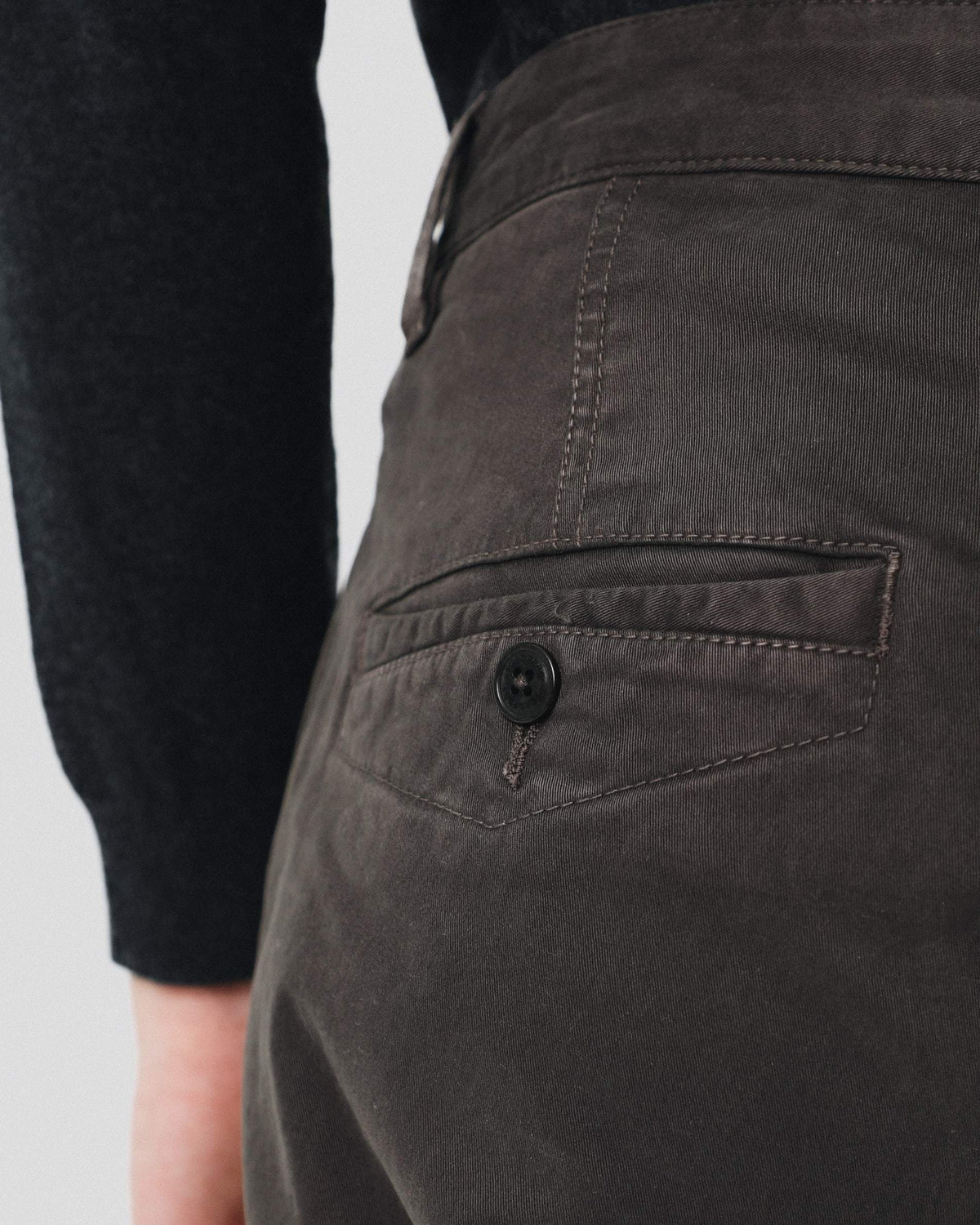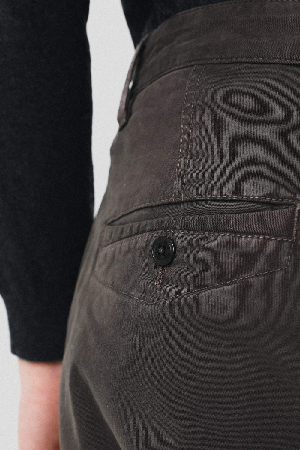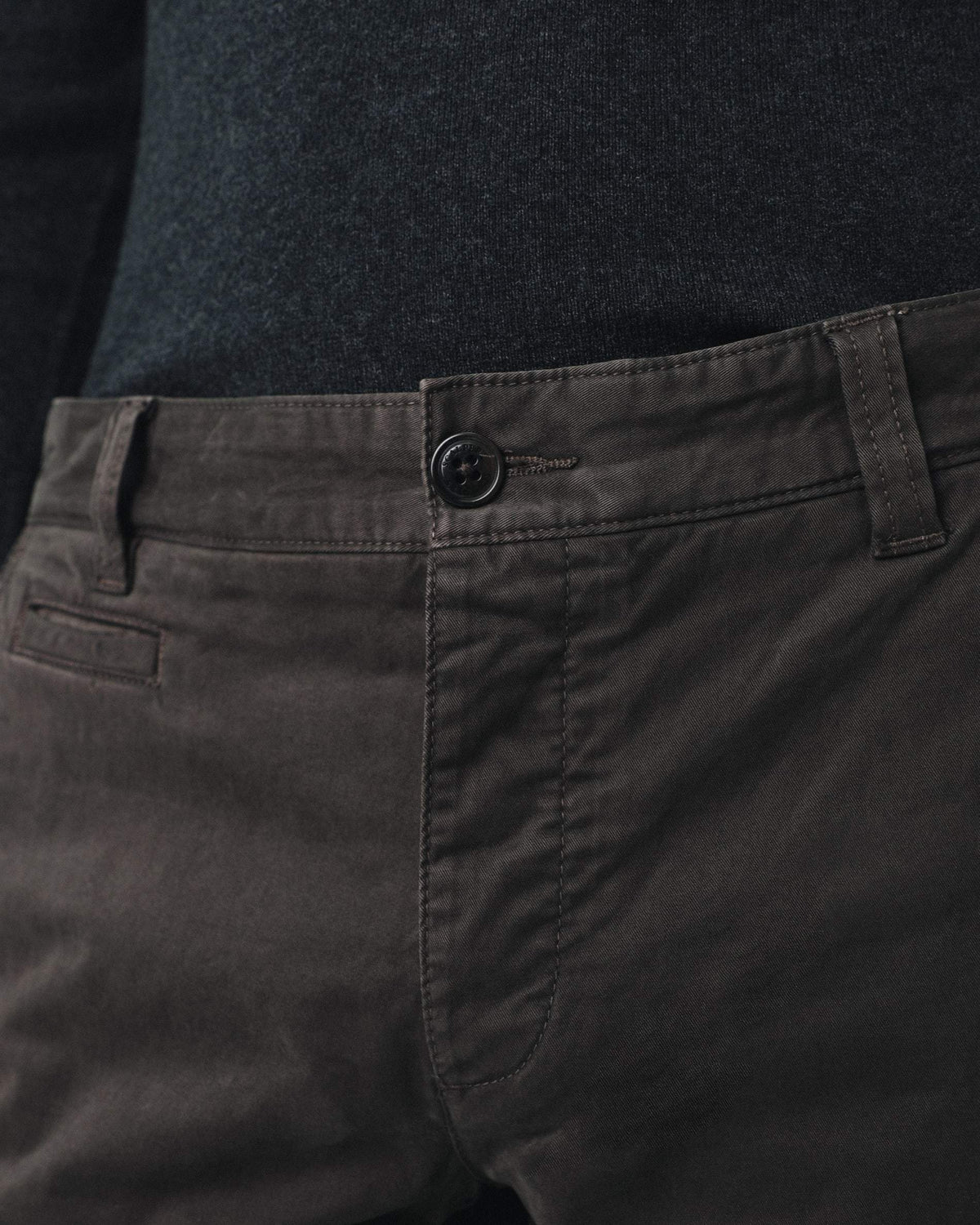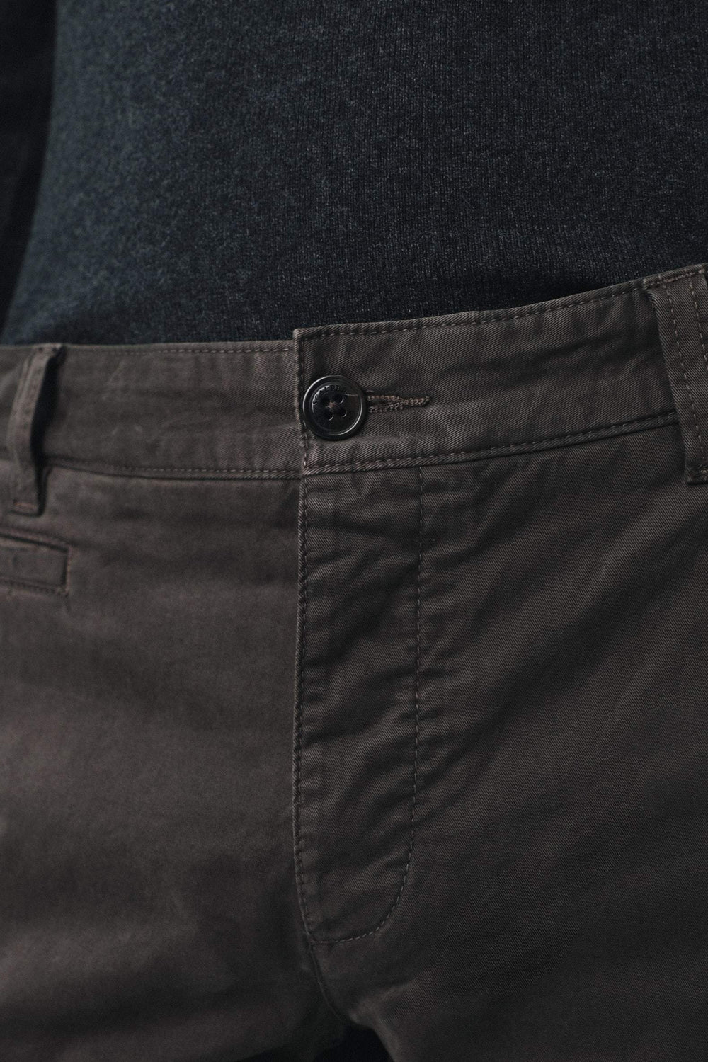 Pantalón garment dyed confeccionado en tejido de algodón con acabado suave. Corte Regular Fit, cierre con botones y cremallera y bolsillo cerillero. Detalles de hilo a contraste en interior.
