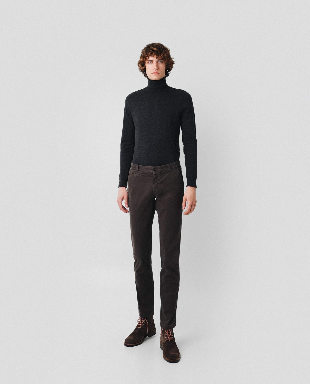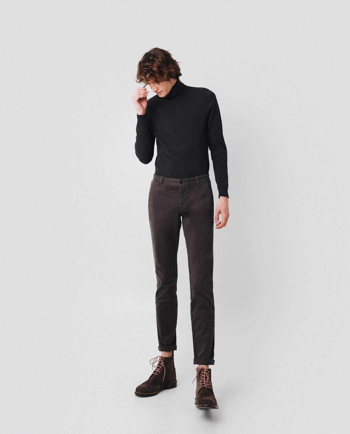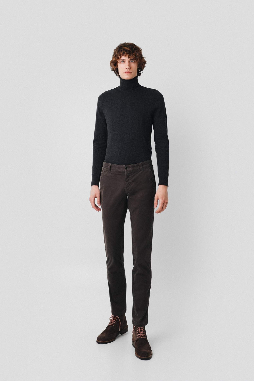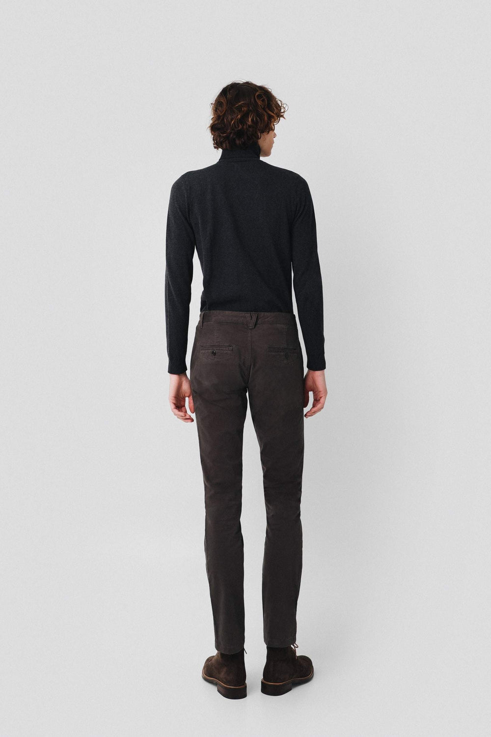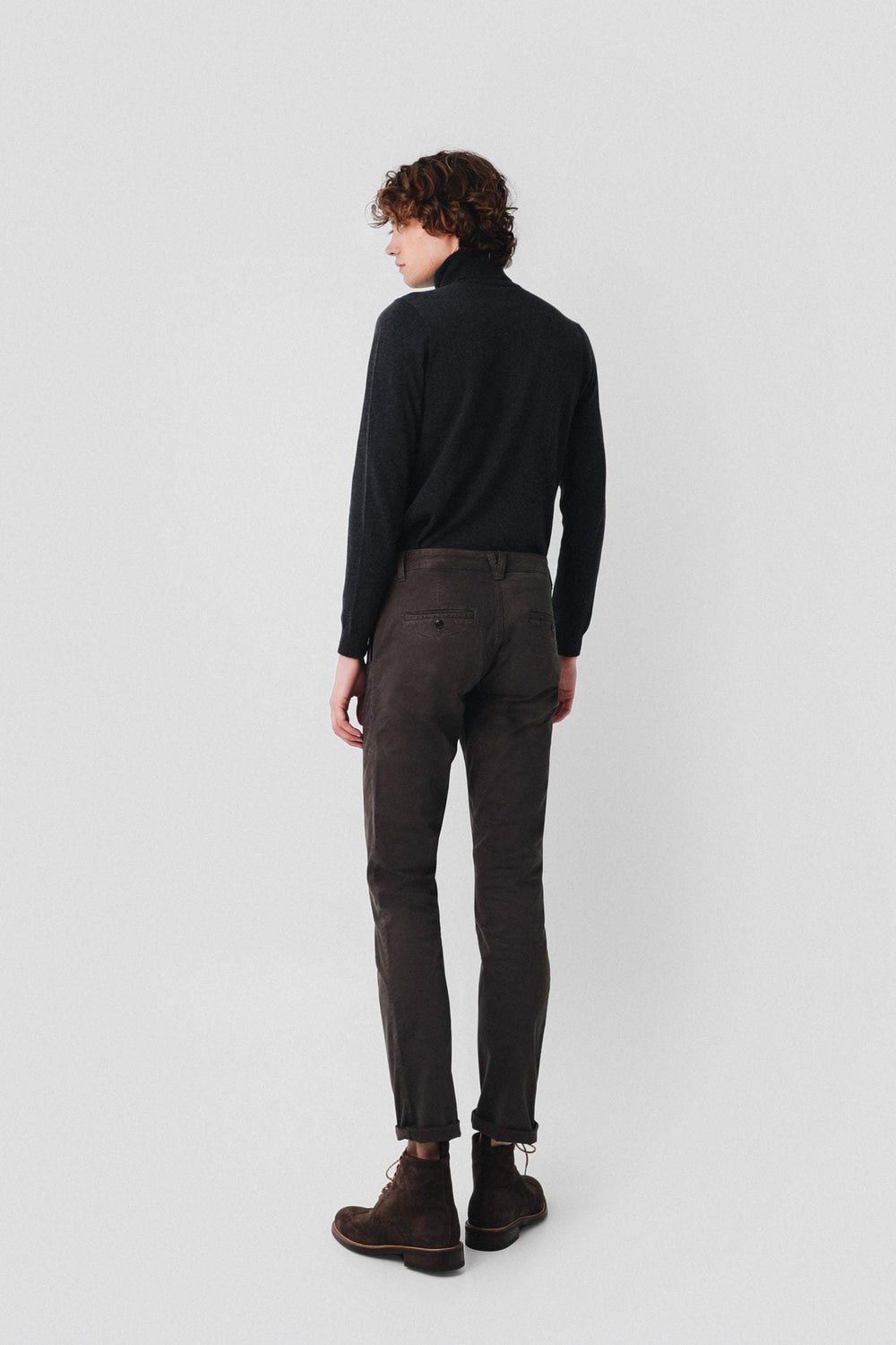 Pantalón garment dyed confeccionado en tejido de algodón con acabado suave. Corte Regular Fit, cierre con botones y cremallera y bolsillo cerillero. Detalles de hilo a contraste en interior.