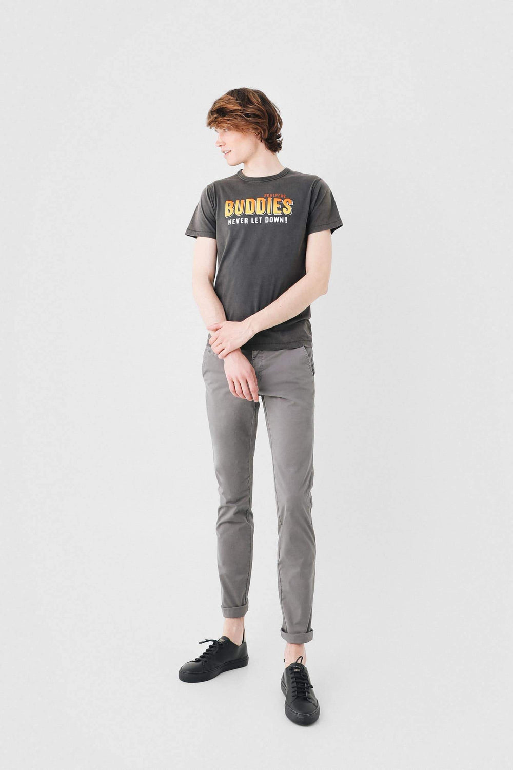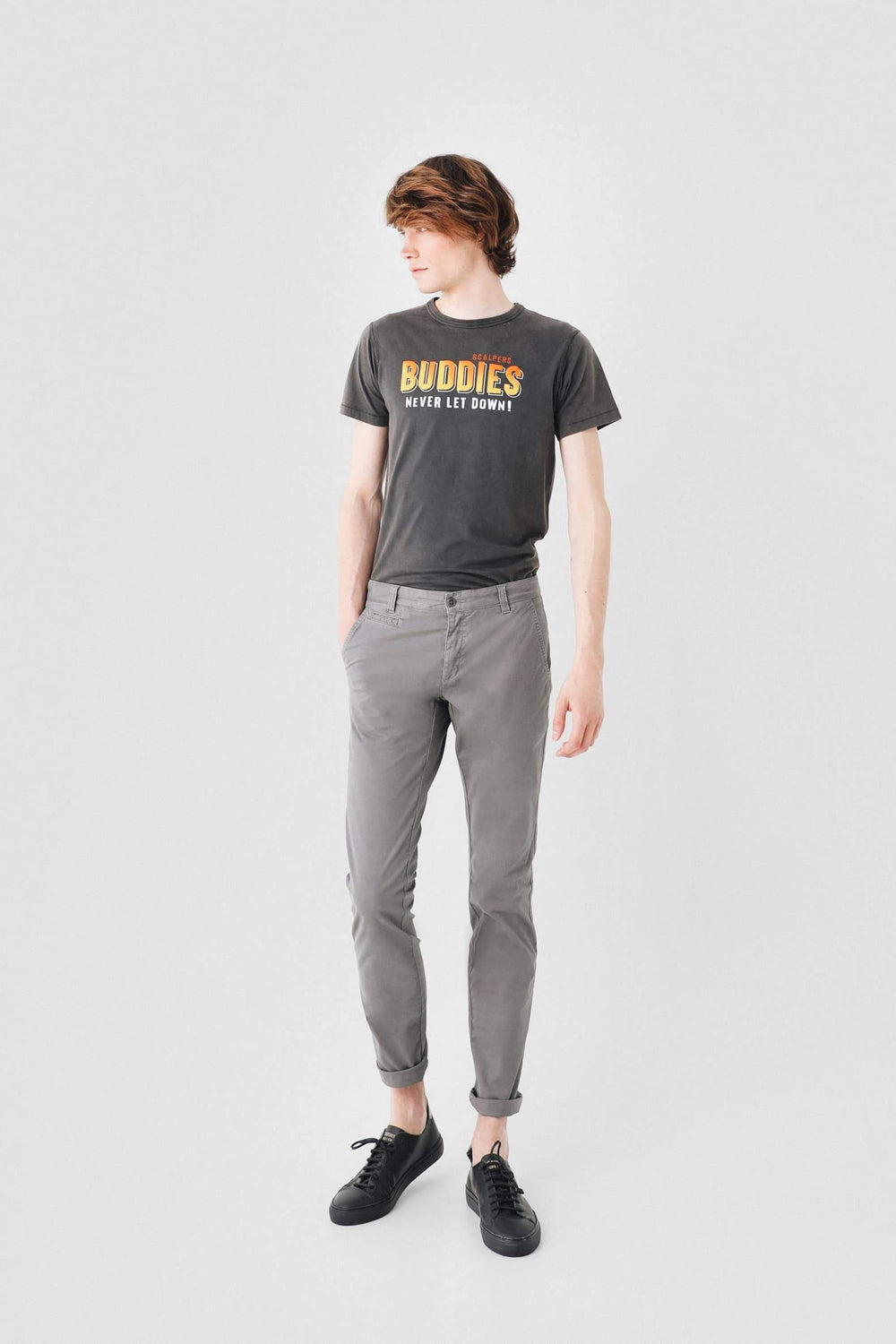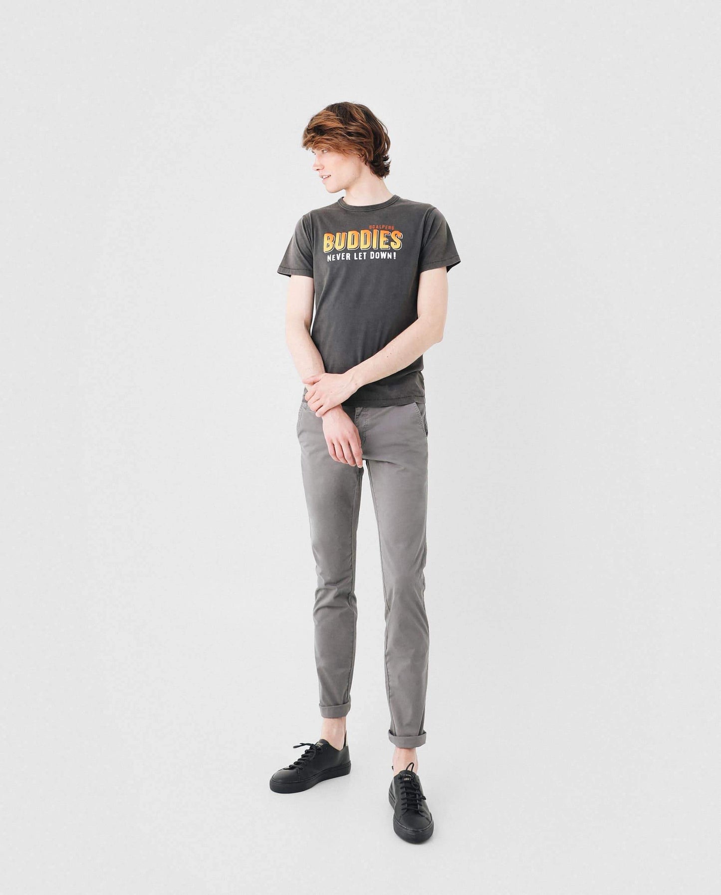 Pantalón garment dyed confeccionado en tejido de algodón con acabado suave. Corte Regular Fit, cierre con botones y cremallera y bolsillo cerillero. Detalles de hilo a contraste en interior.