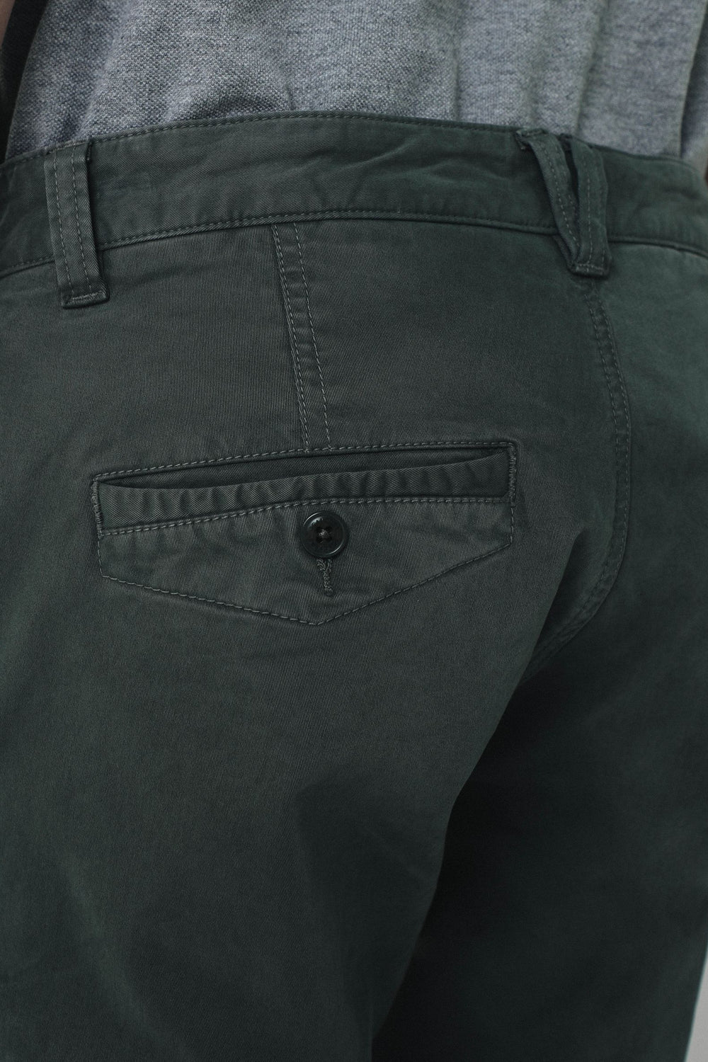 Pantalón garment dyed confeccionado en tejido de algodón con acabado suave. Corte Regular Fit, cierre con botones y cremallera y bolsillo cerillero. Detalles de hilo a contraste en interior.
