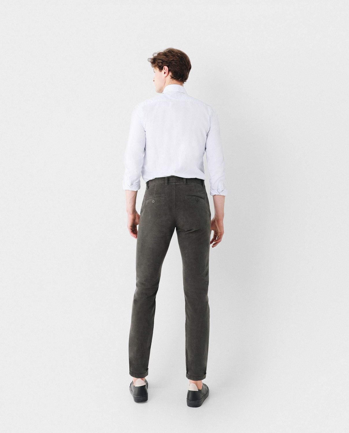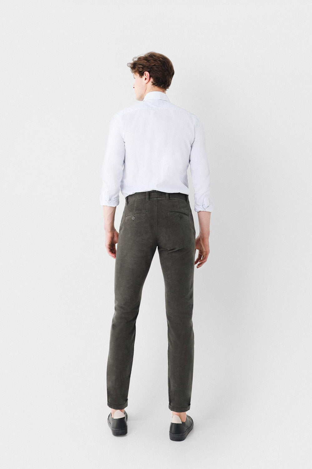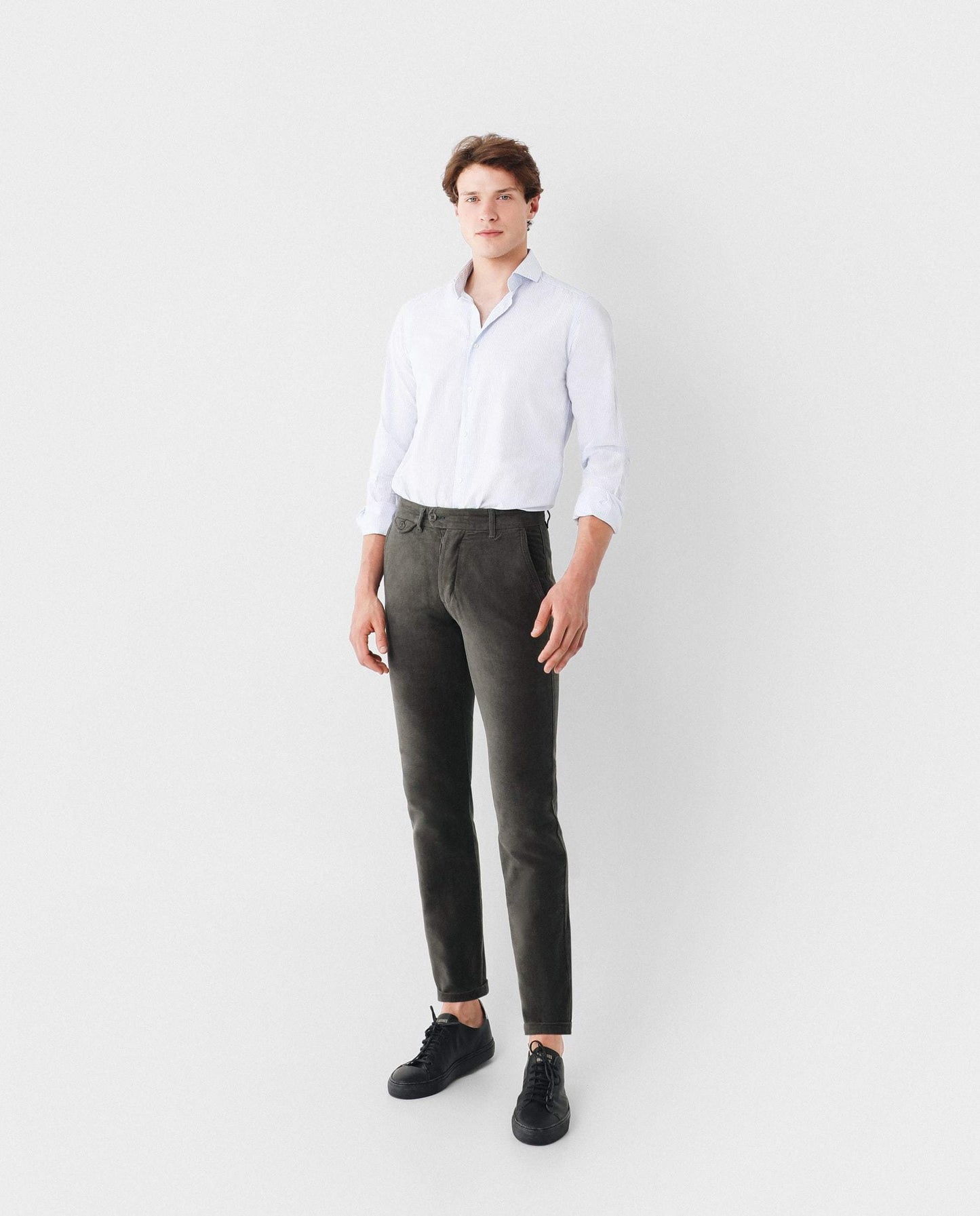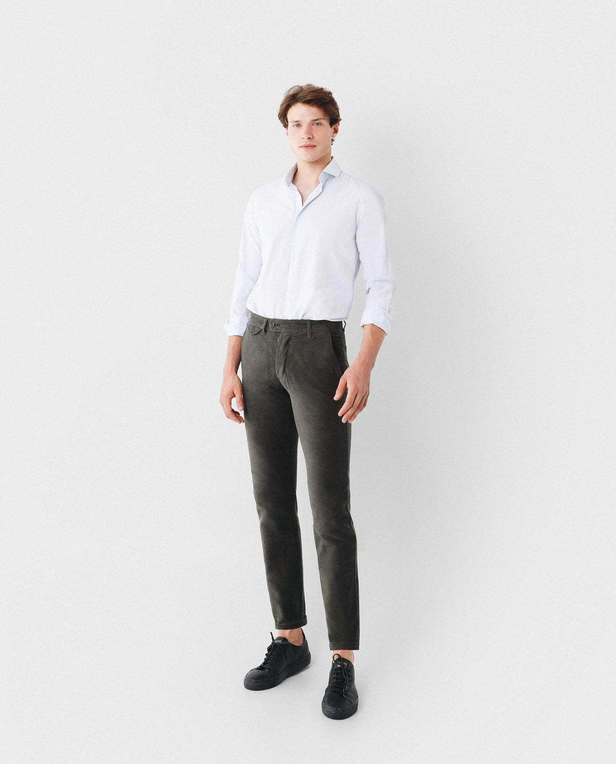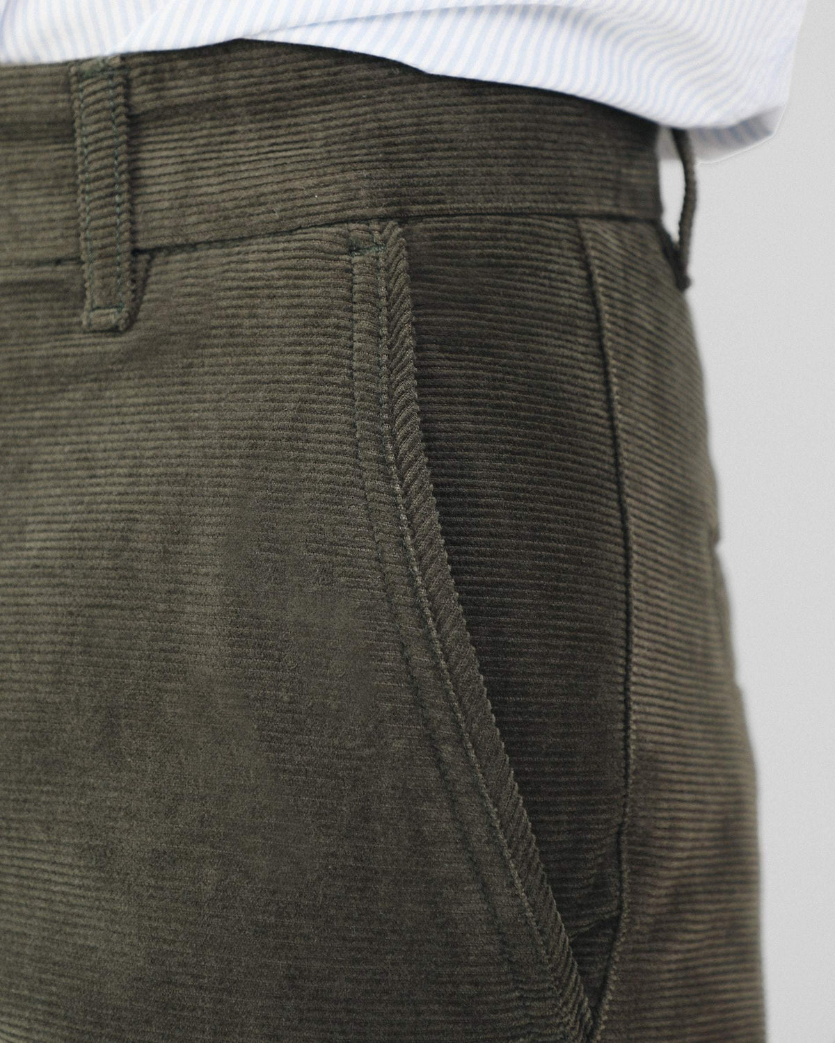 Pantalón garment dyed confeccionado en tejido de pana horizontal. Corte Regular Fit, cierre con botones y bolsillo cerillero.