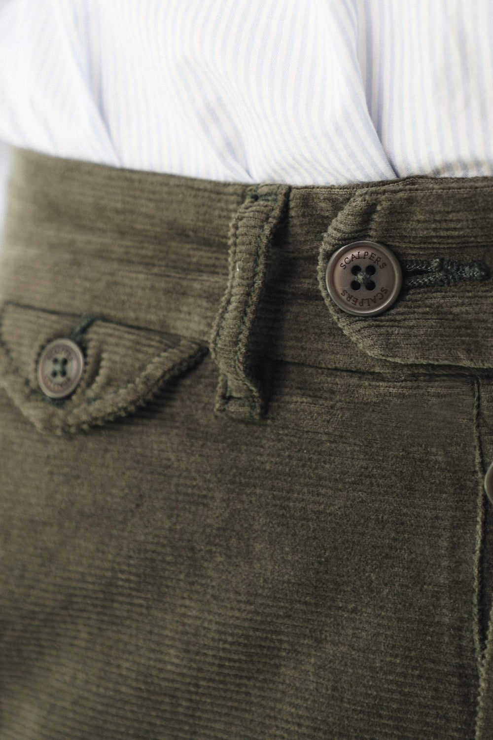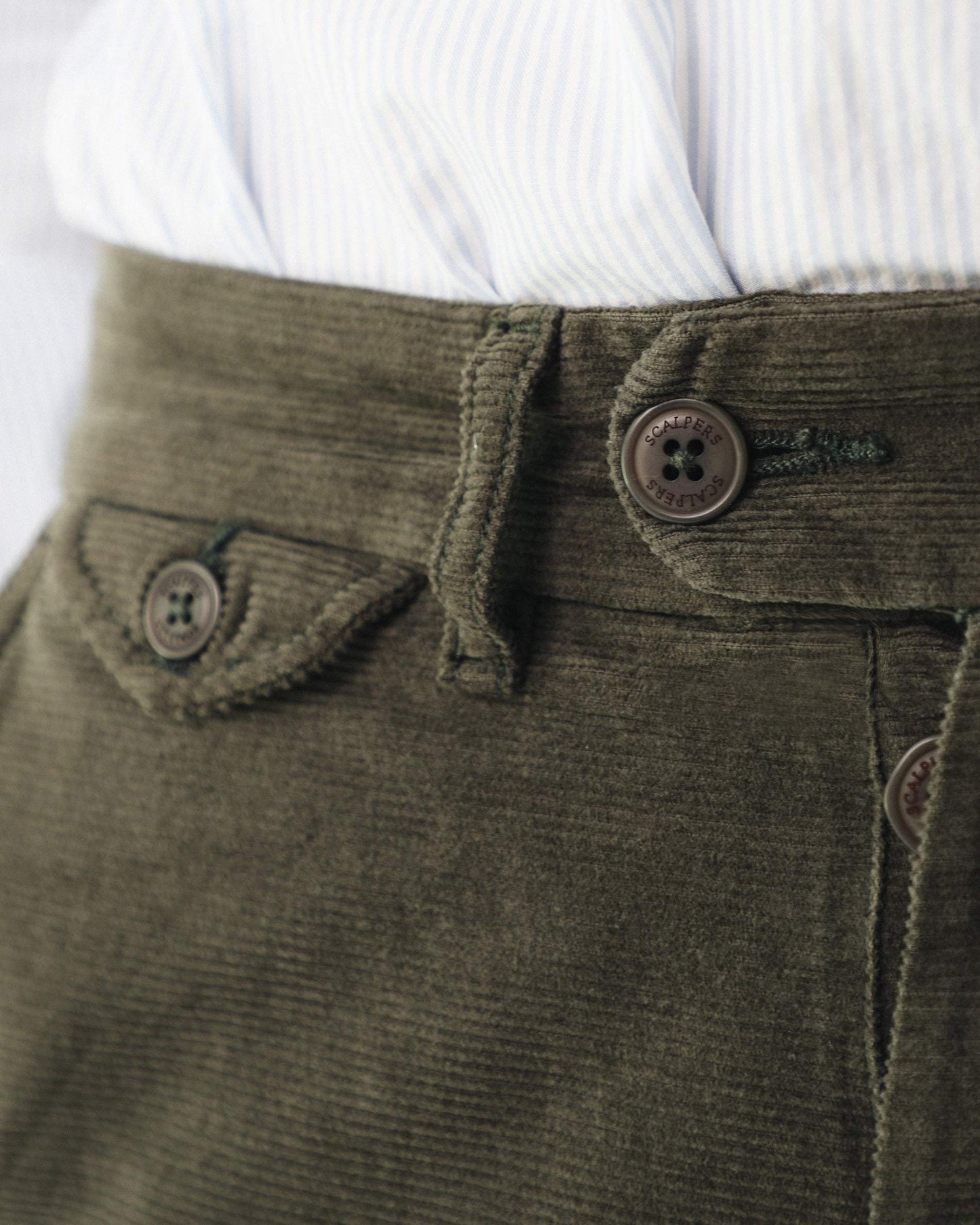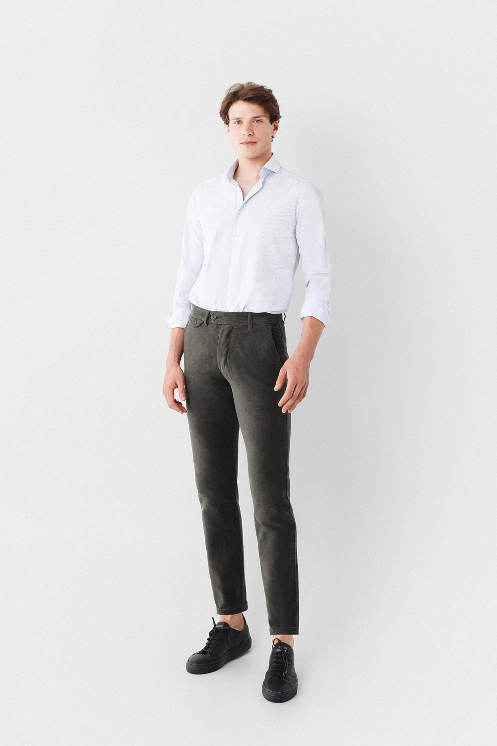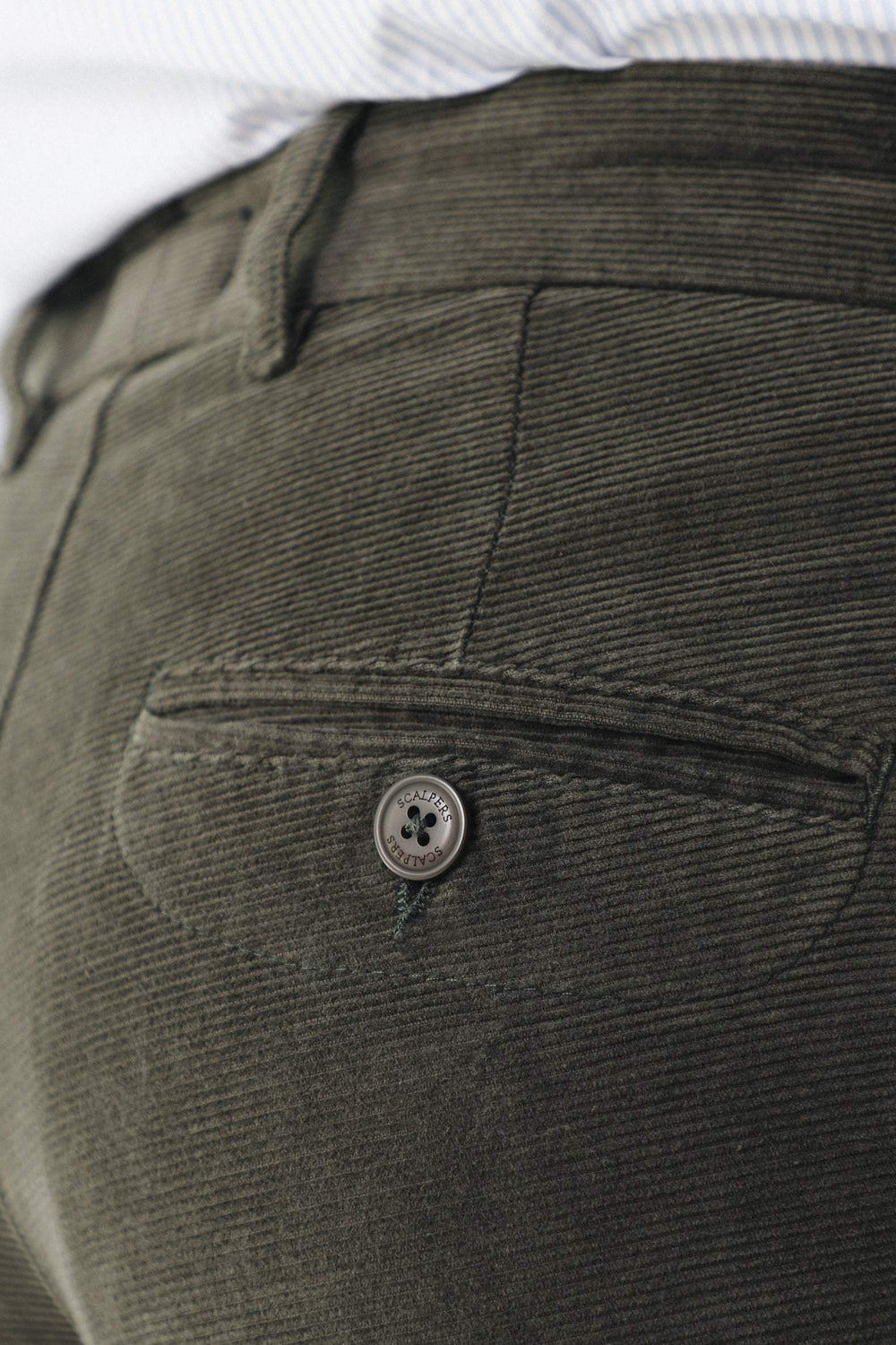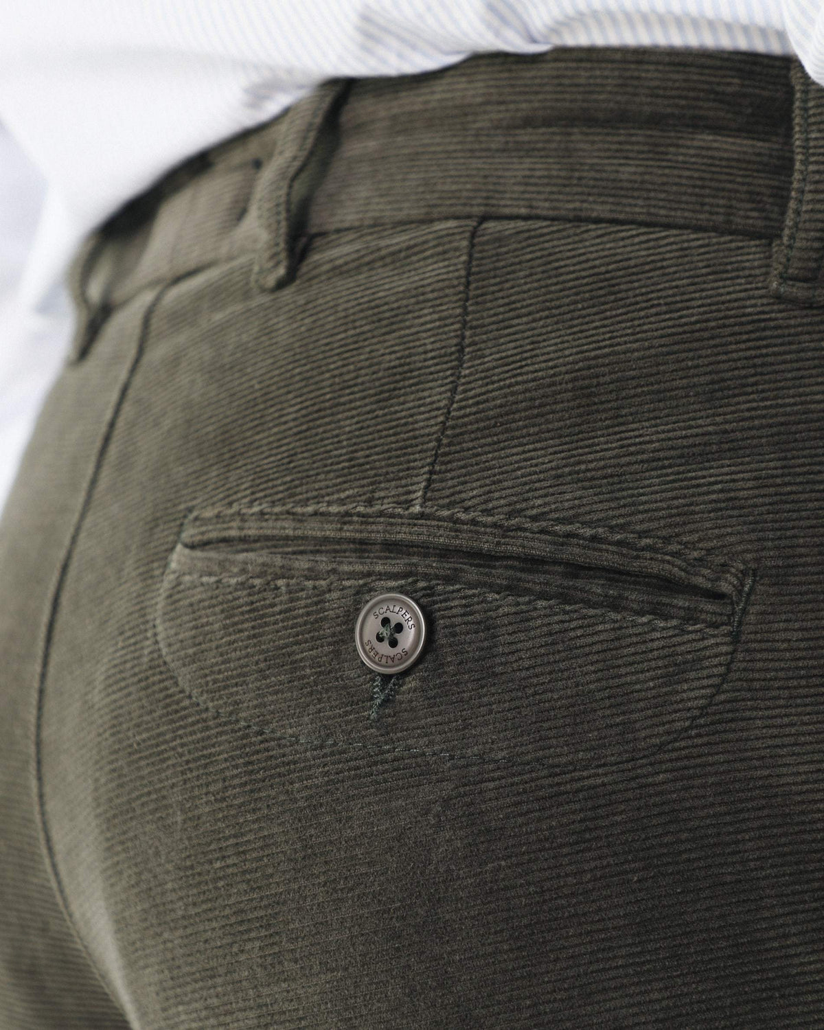 Pantalón garment dyed confeccionado en tejido de pana horizontal. Corte Regular Fit, cierre con botones y bolsillo cerillero.