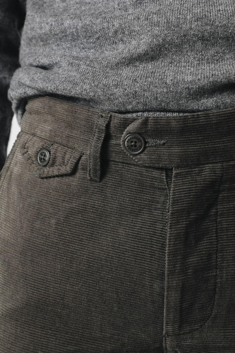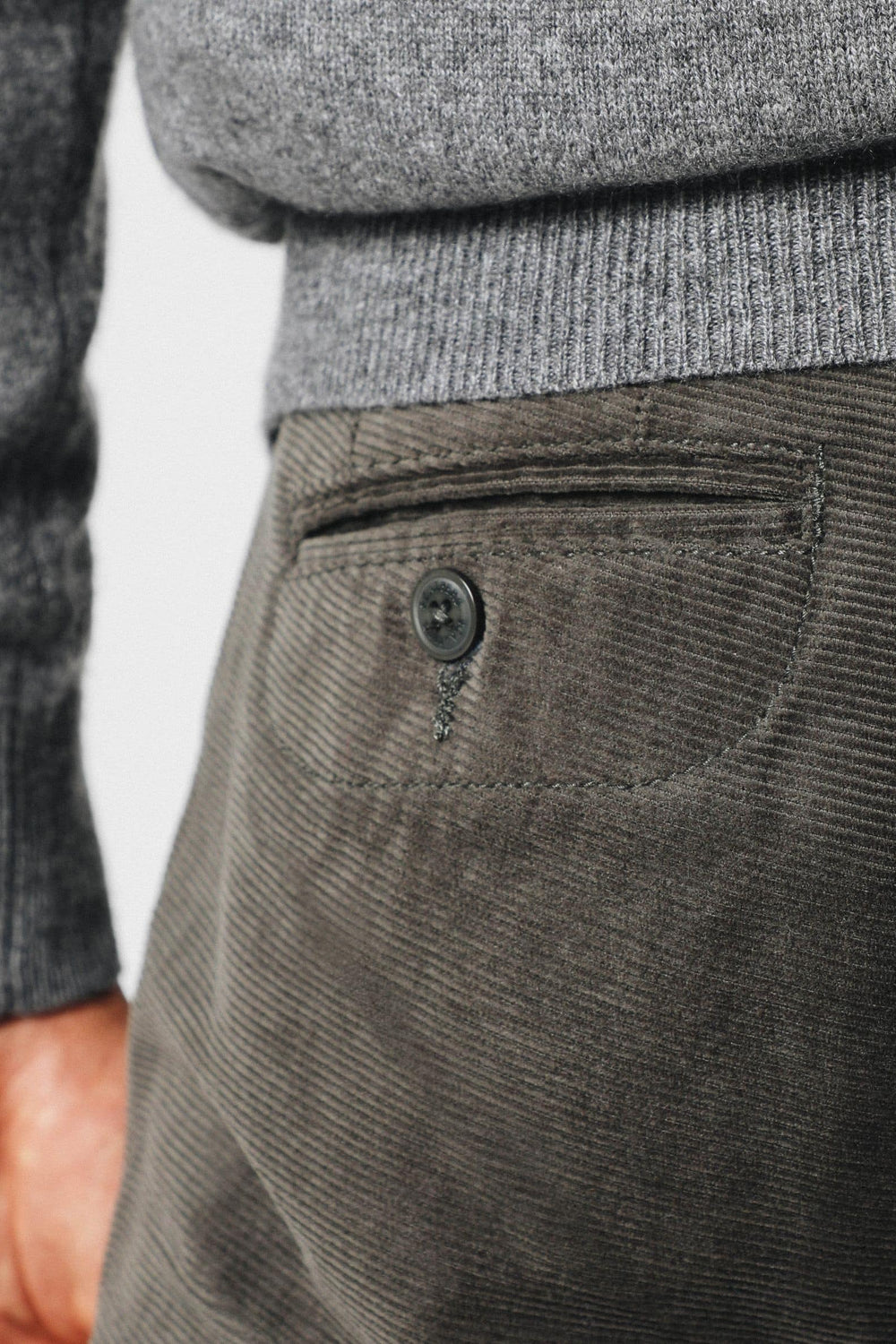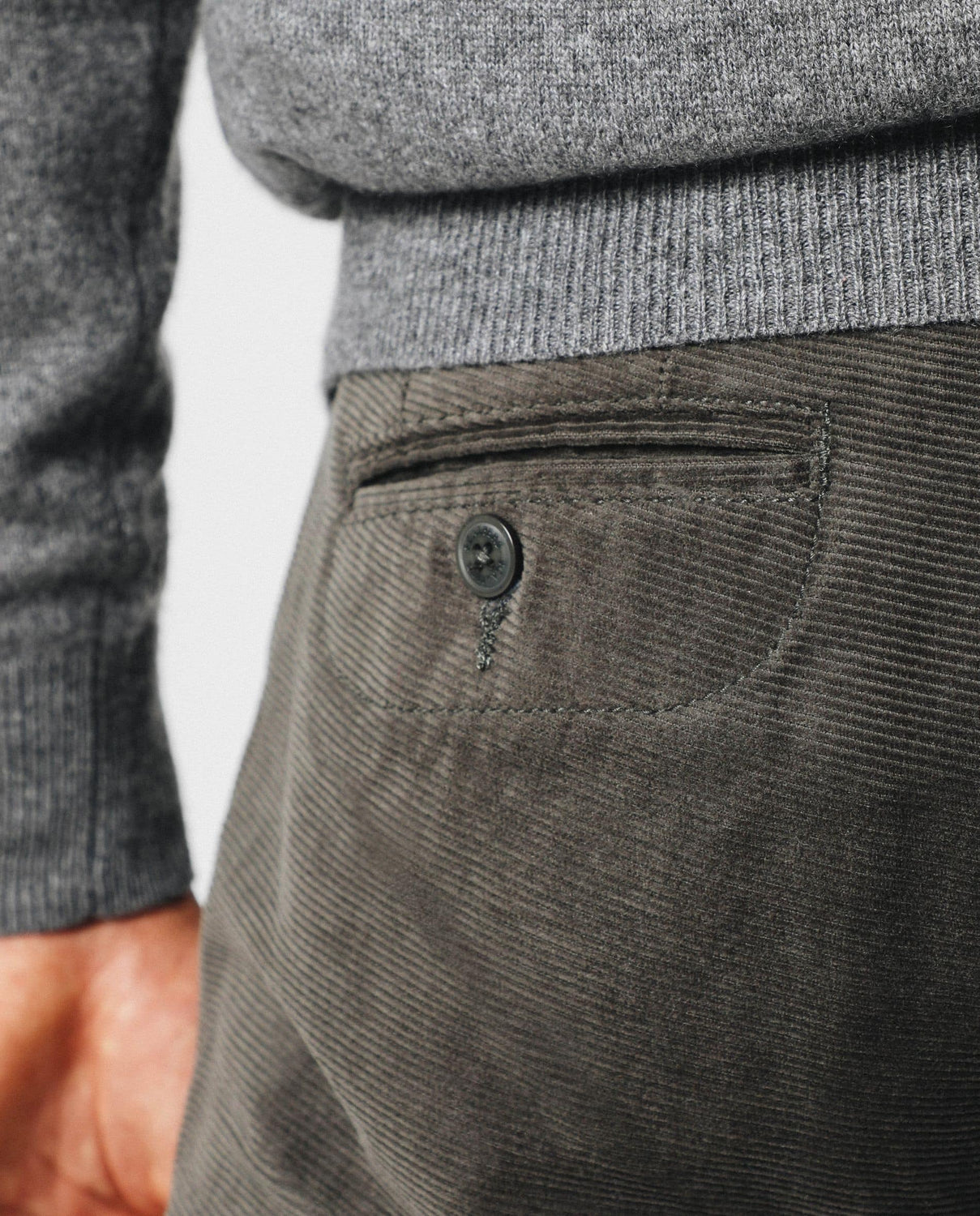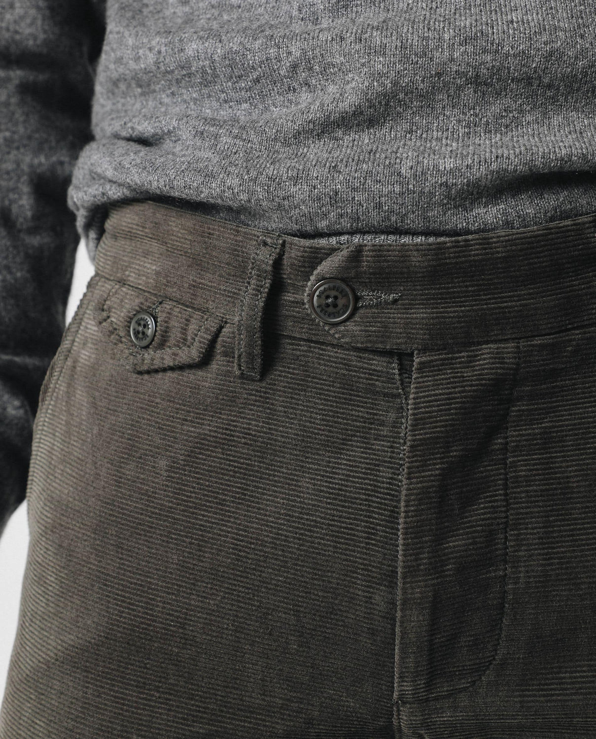 Pantalón garment dyed confeccionado en tejido de pana horizontal. Corte Regular Fit, cierre con botones y bolsillo cerillero.
