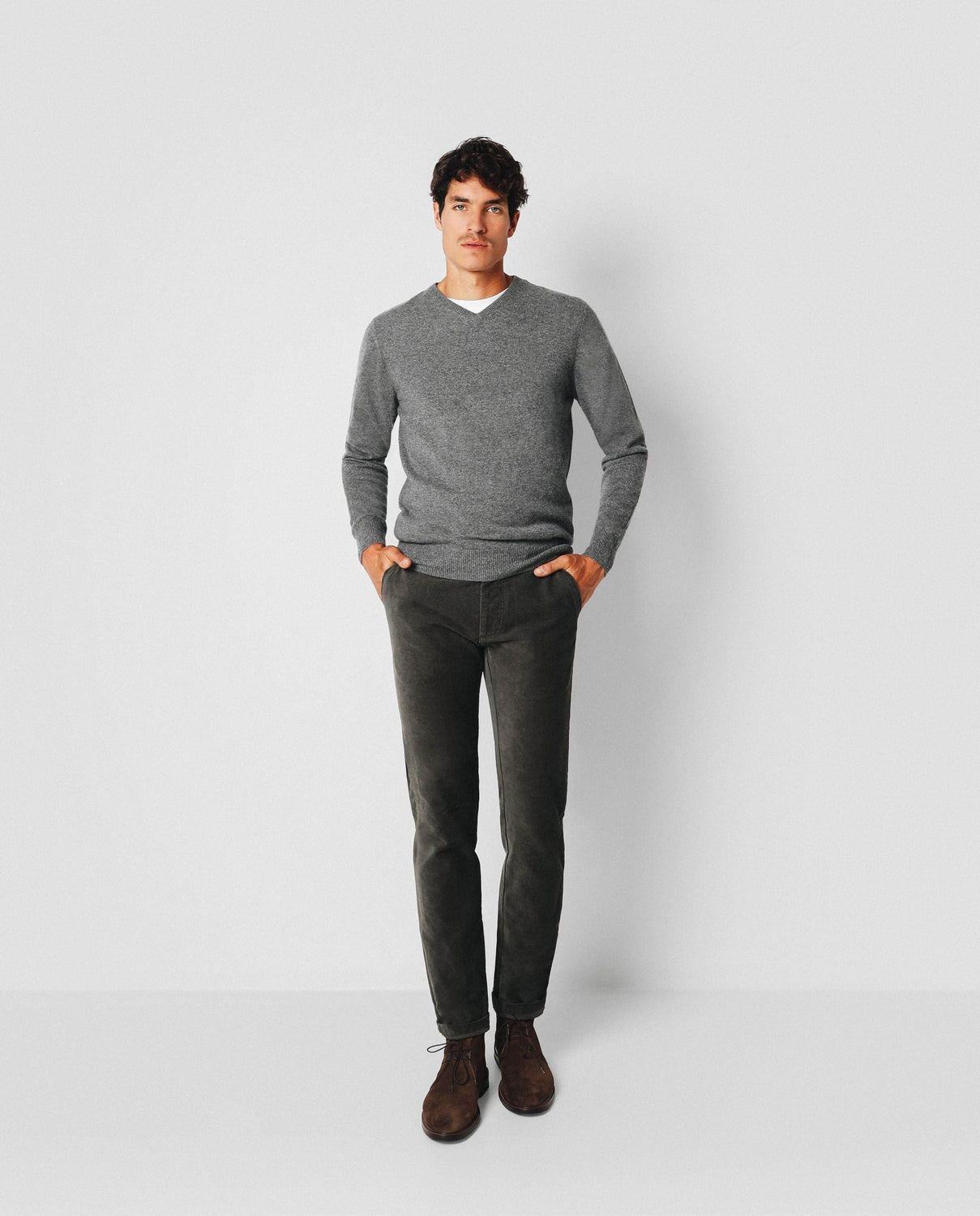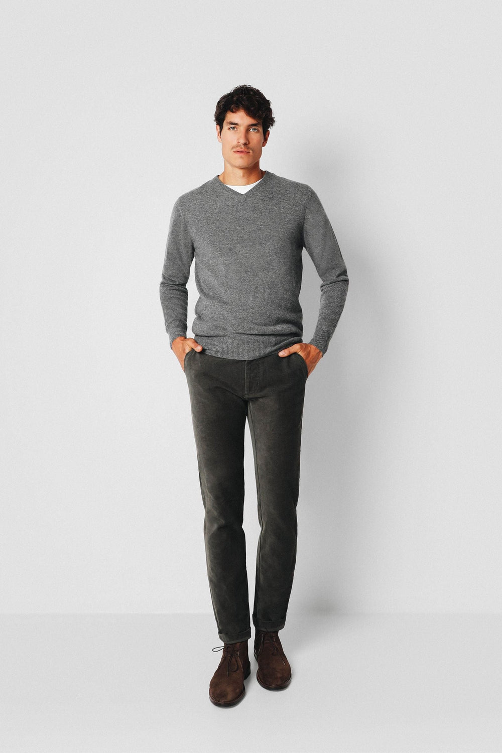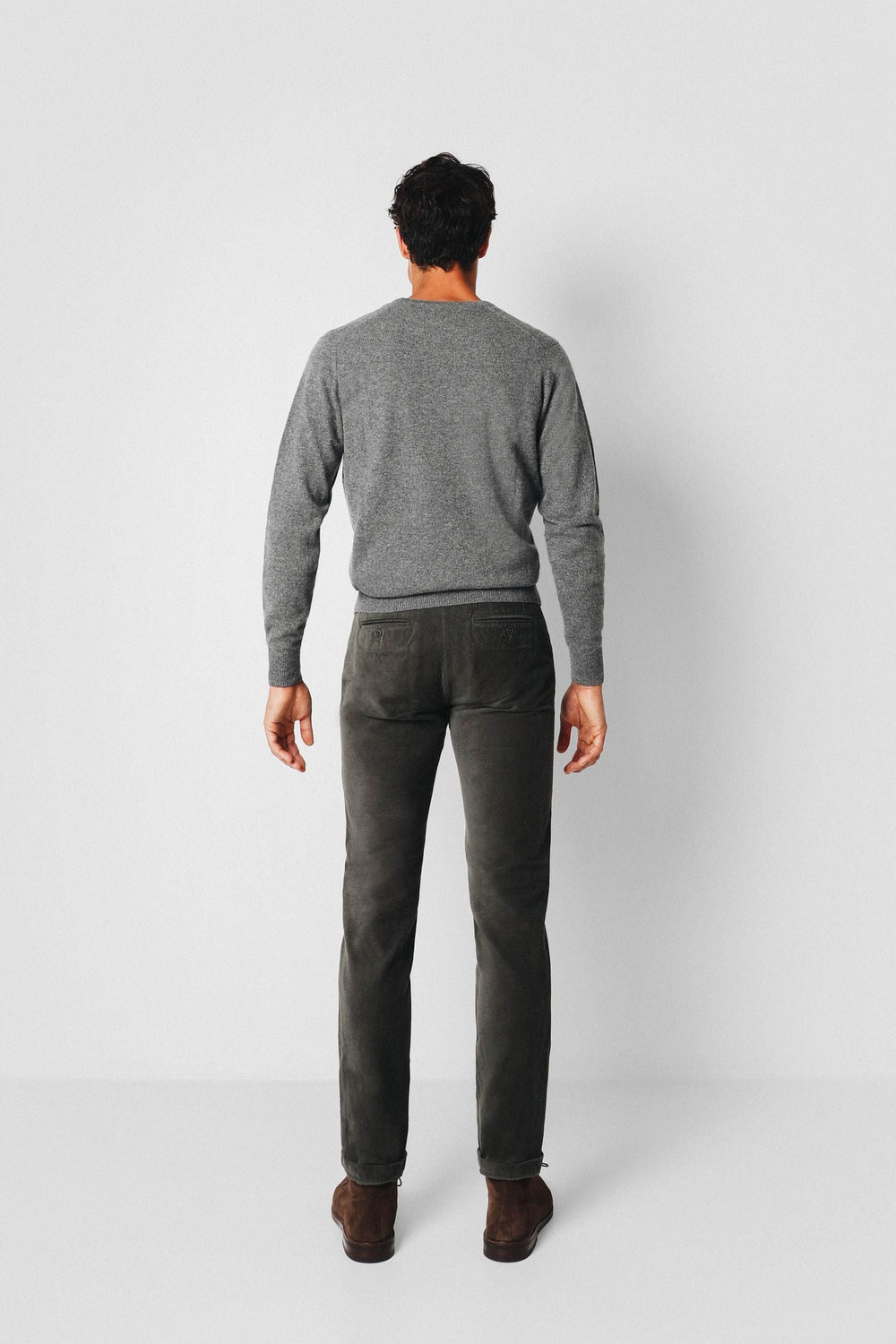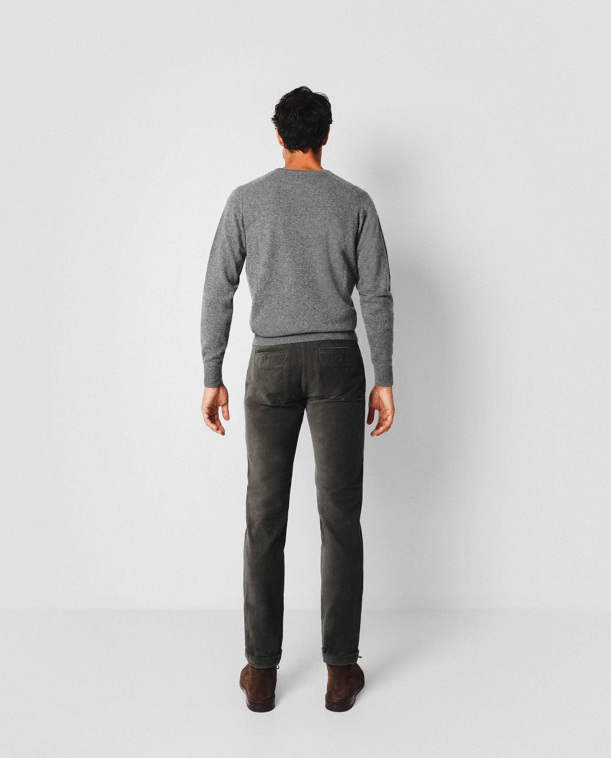 Pantalón garment dyed confeccionado en tejido de pana horizontal. Corte Regular Fit, cierre con botones y bolsillo cerillero.