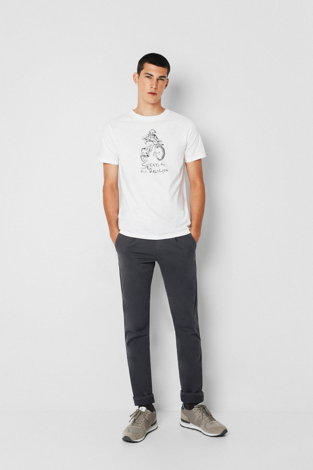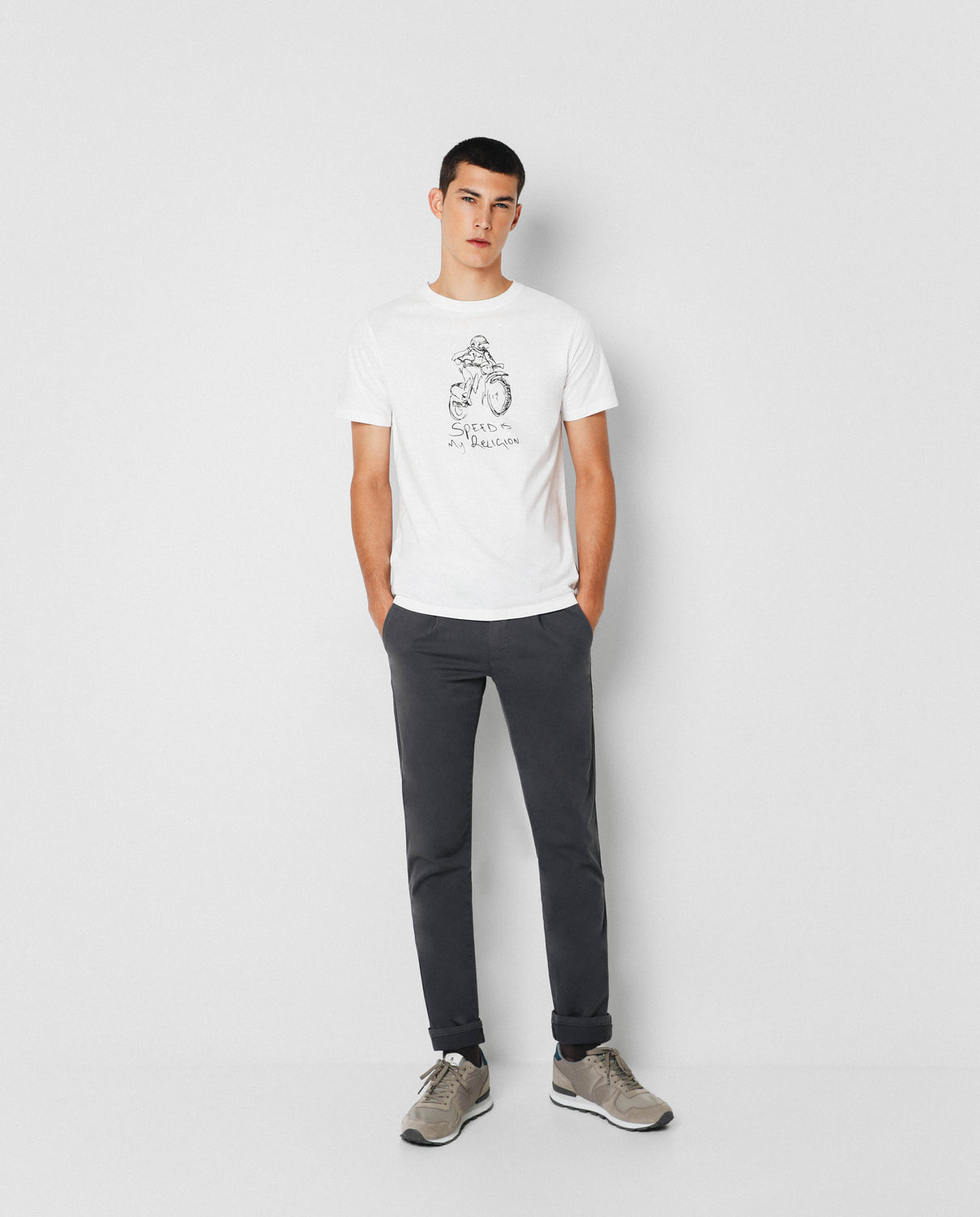 Pantalón garment dyed confeccionado en algodón. Corte Regular Fit con pliegues en el frontal, cierre con cremallera y botón que prolonga en cintura y bolsillos de vivo con botón en parte trasera.