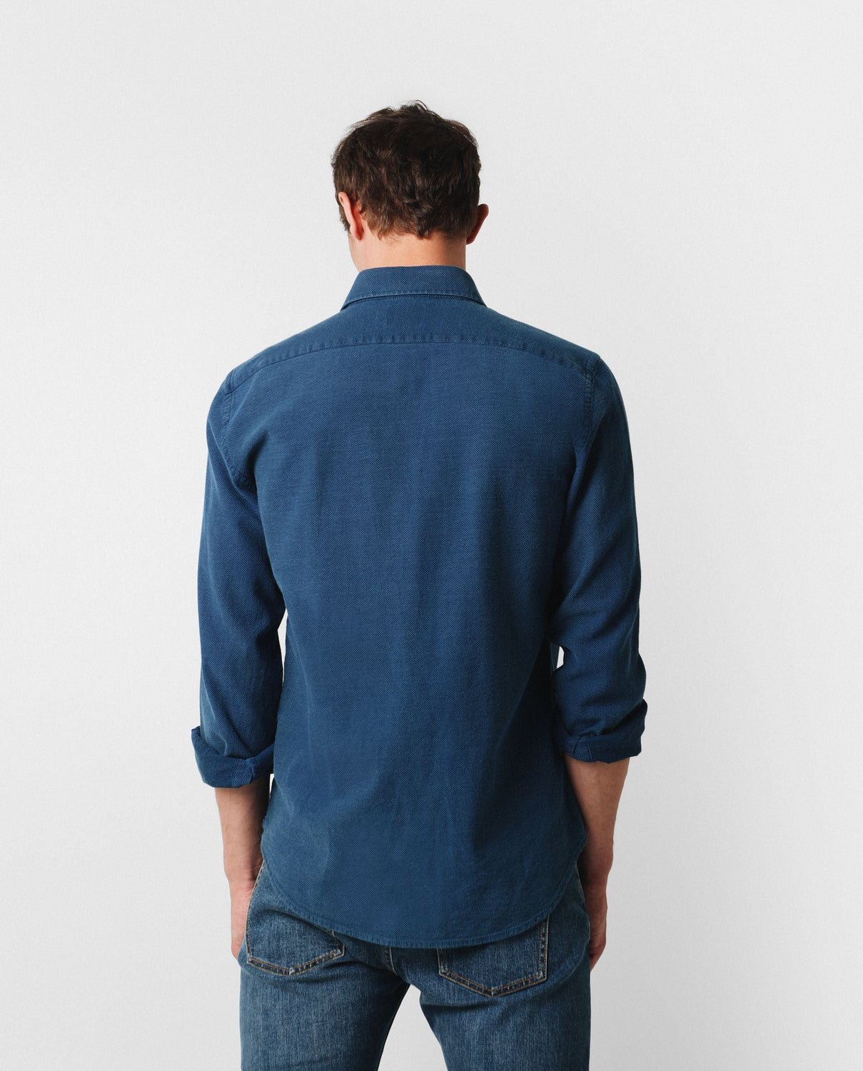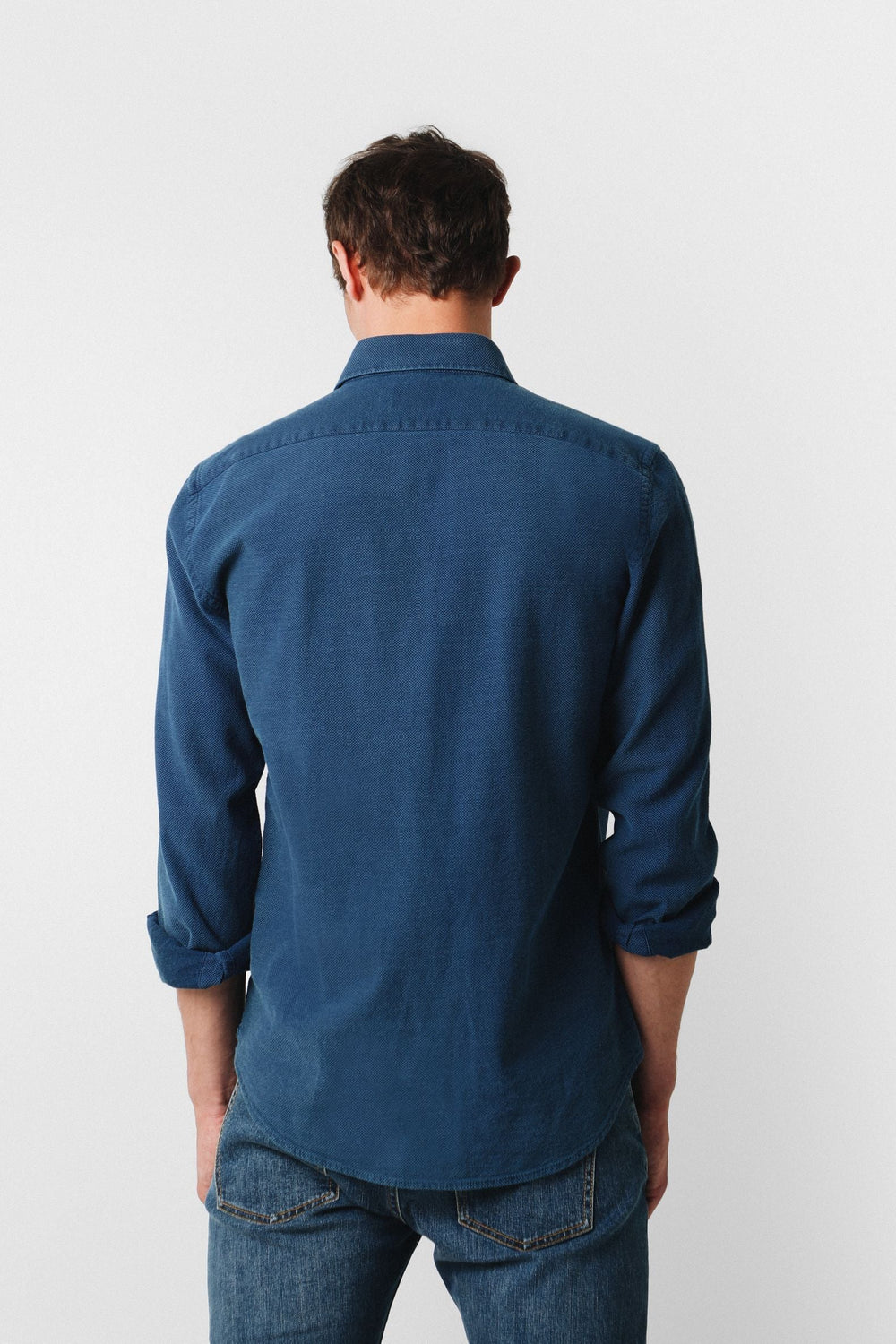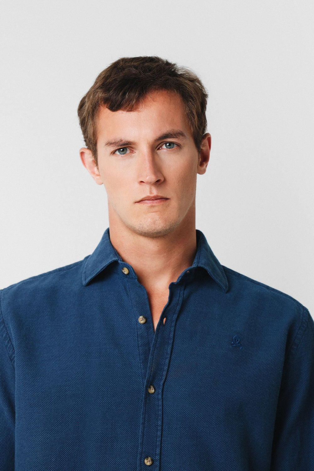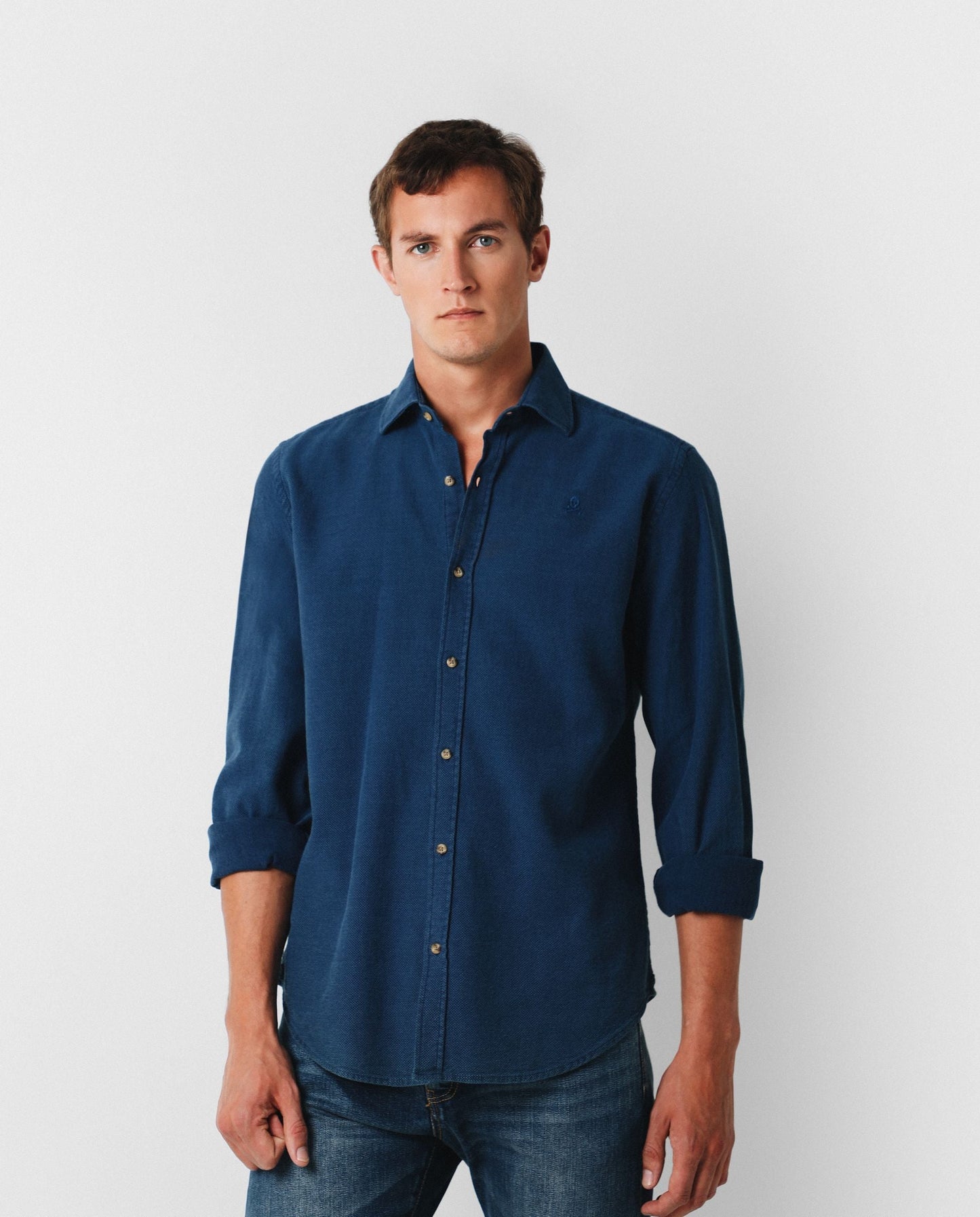 Camisa confeccionada en tejido denim. Corte Regular Fit, cuello konika y cierre con botones. Manga larga terminada en puño simple. Detalle de calavera bordada en el pecho.