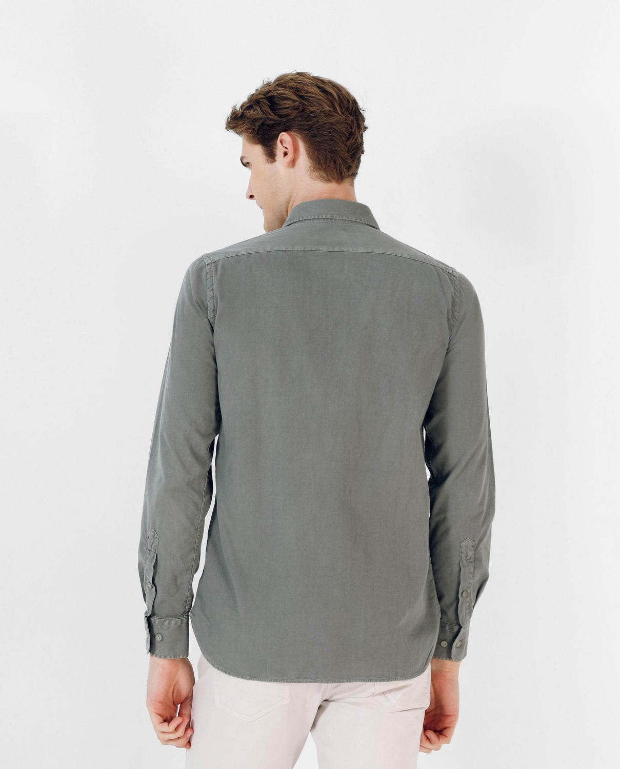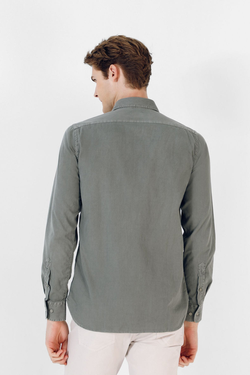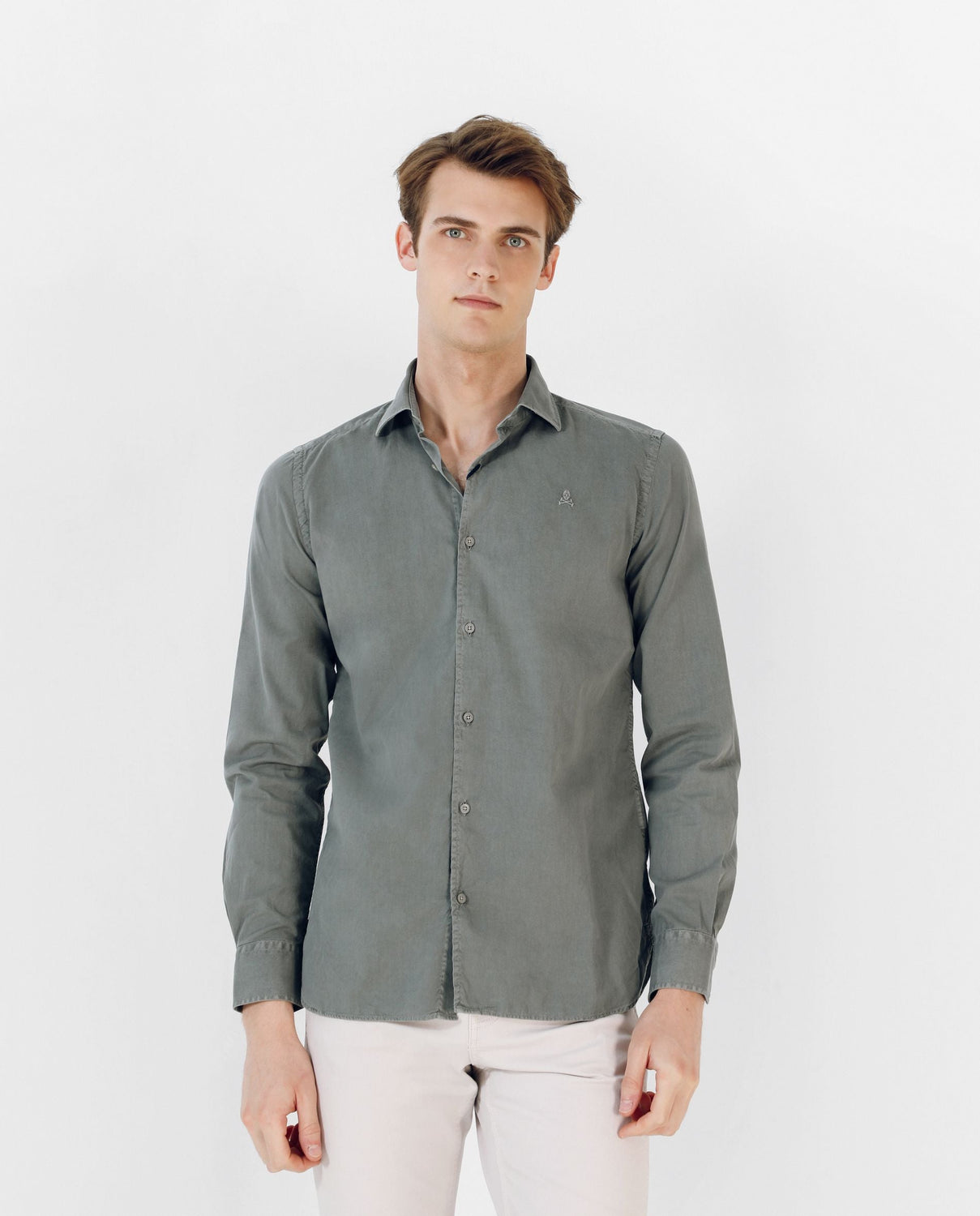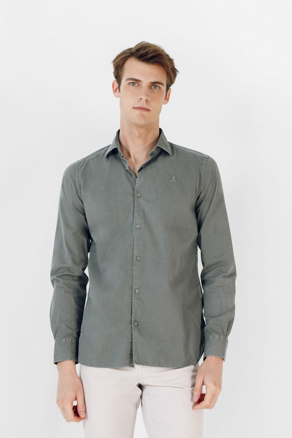 Camisa confeccionada en tejido 100% algodón. Corte Regular Fit, cuello Konika y cierre con botones sin tapeta. Manga larga terminada en puño simple. Detalle de calavera bordada en el pecho.