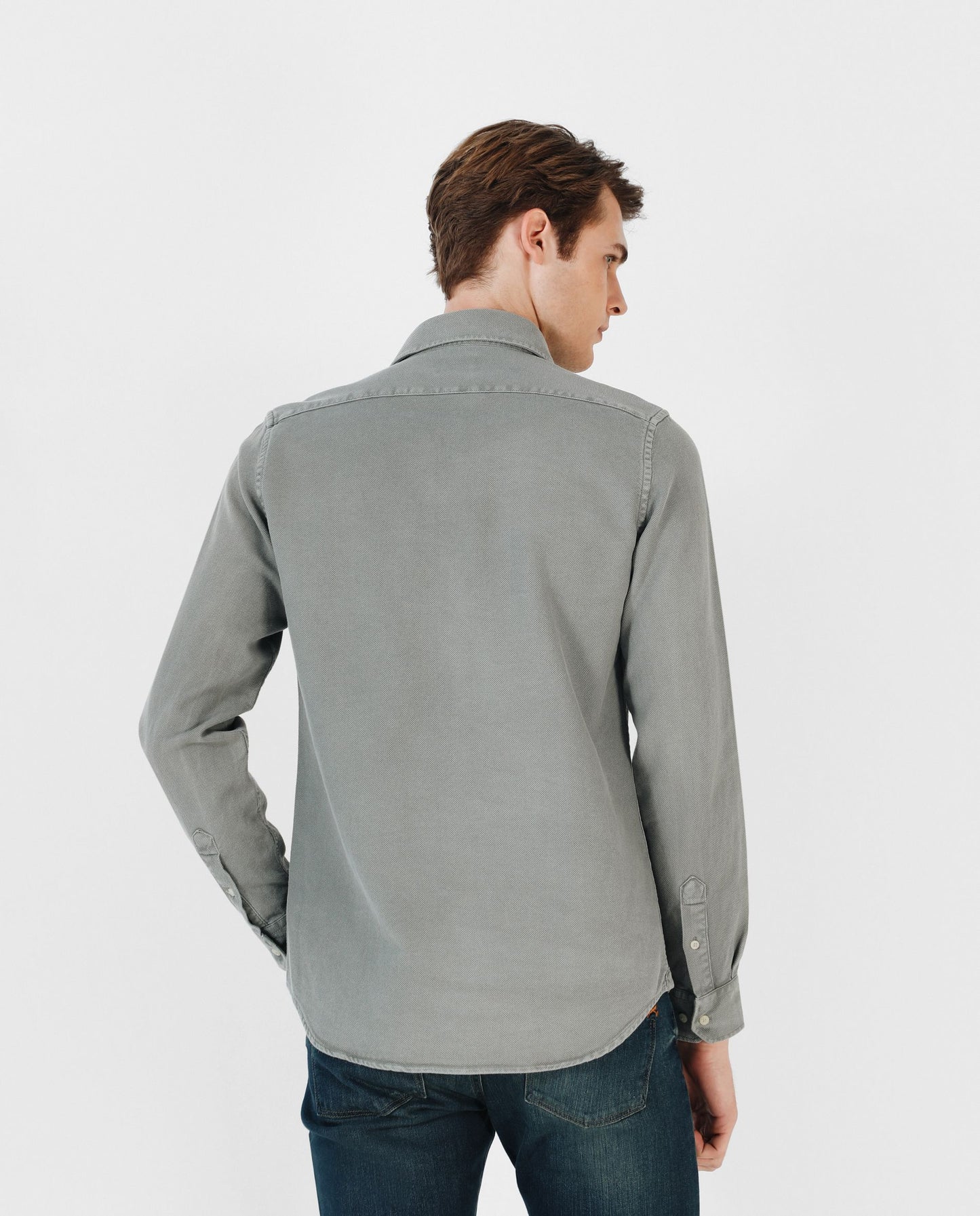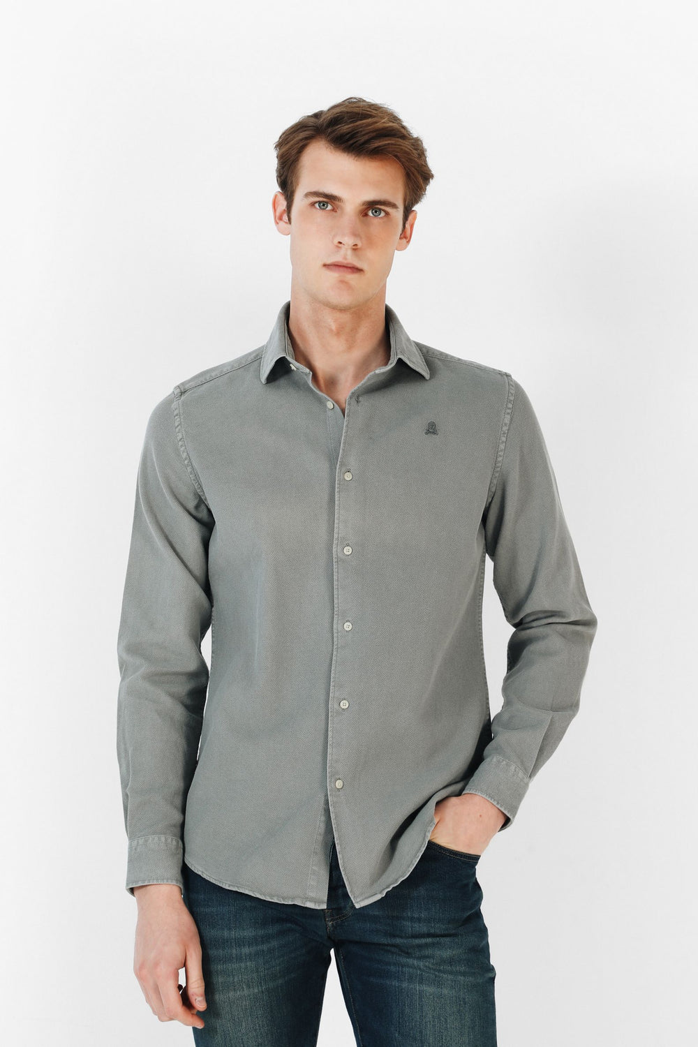 Camisa confeccionada en tejido 100% algodón. Corte Regular Fit, cuello cutaway con ballenas y cierre con botones. Manga larga terminada en puño simple. Detalle de calavera bordada en el pecho.