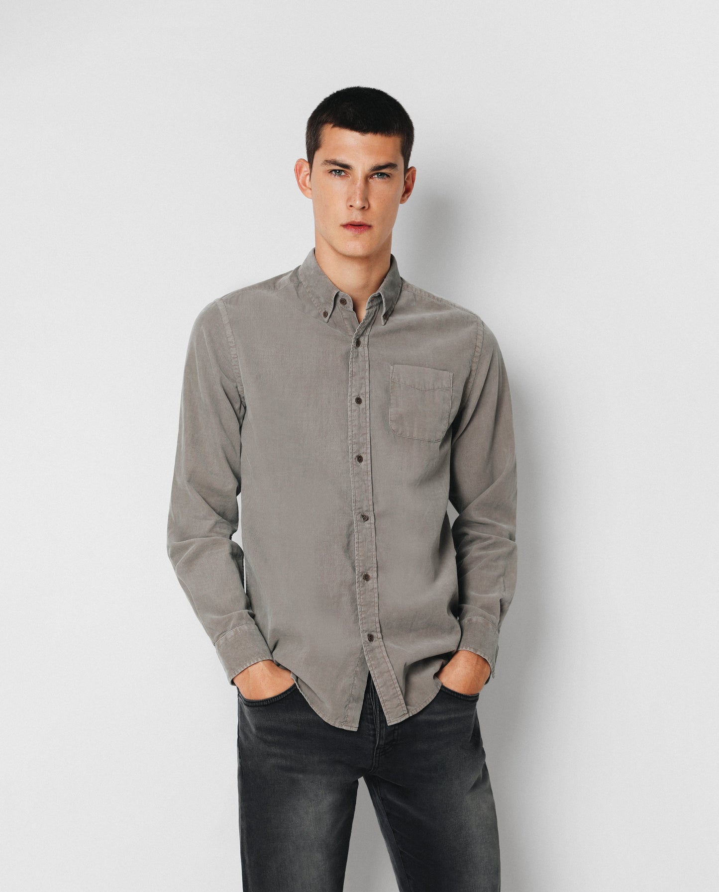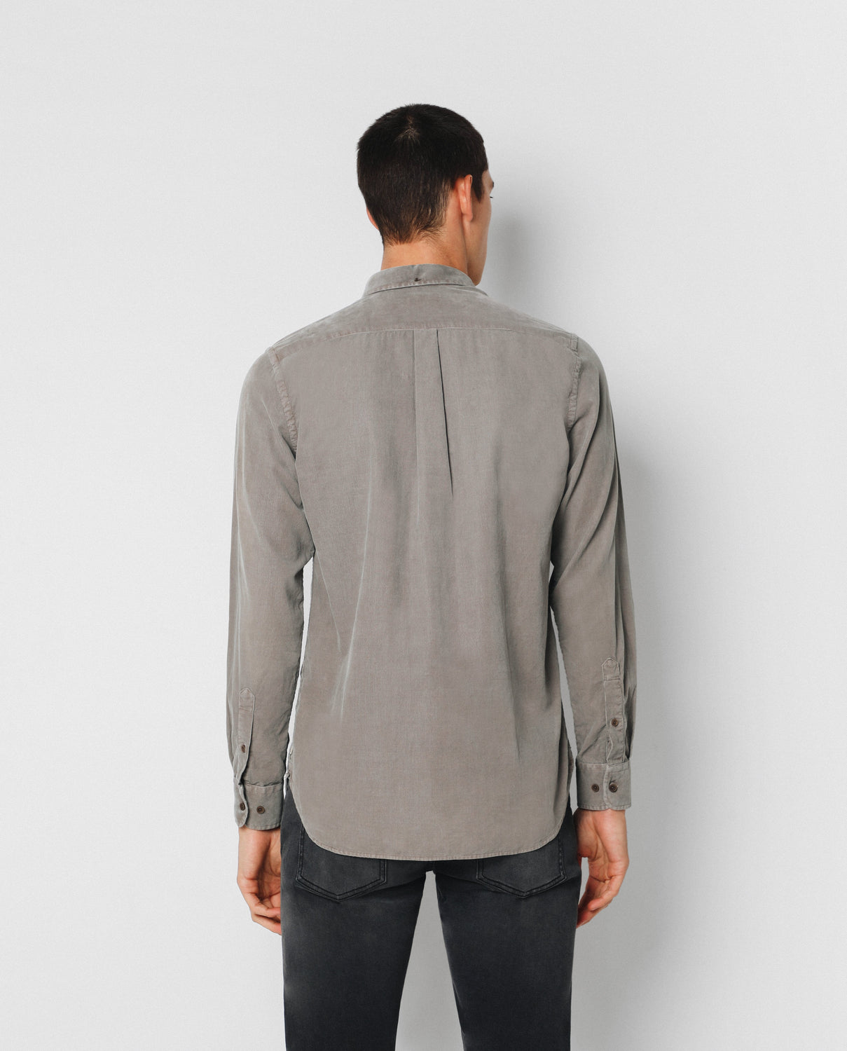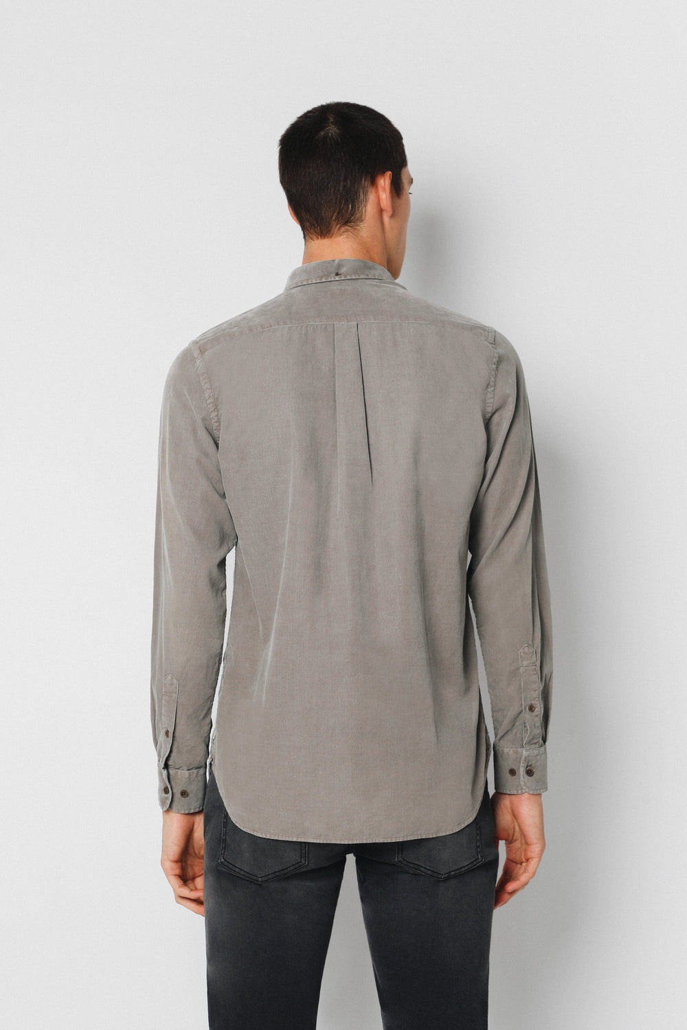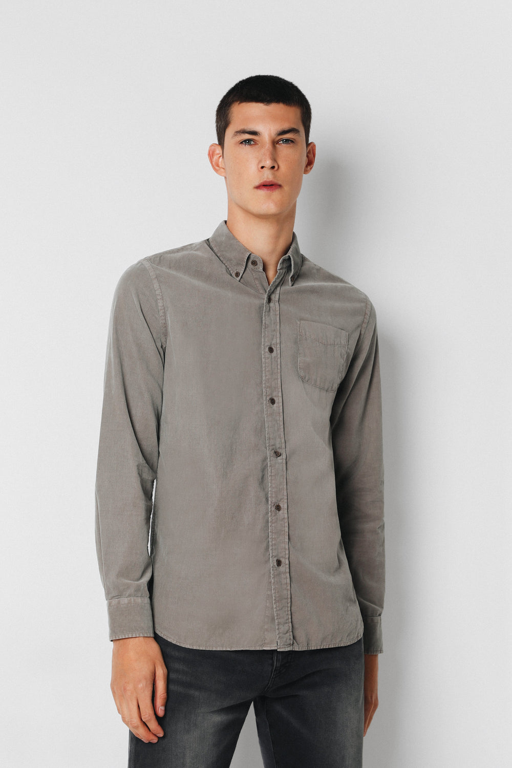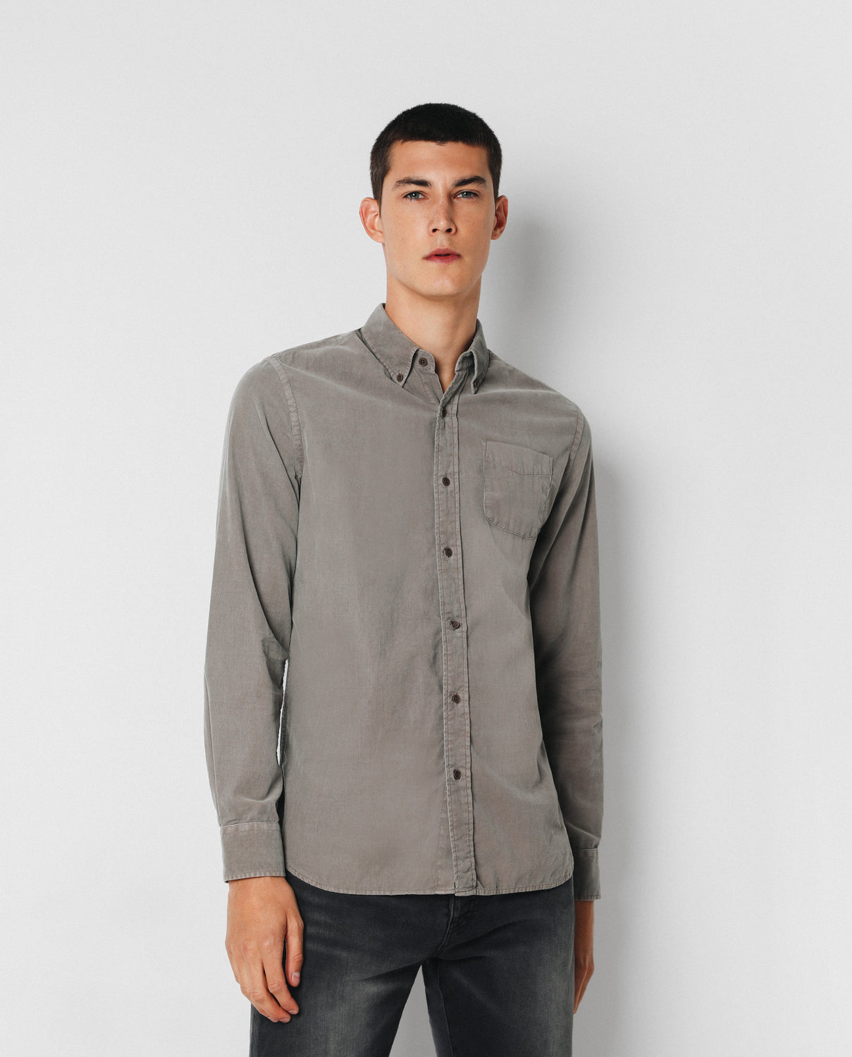 Camisa confeccionada en tejido de pana. Corte Regular Fit, cuello Button Down y cierre con botones. Manga larga terminada en puño simple, y bolsillo de plastrón en el pecho. Detalle de calavera bordada en el bajo de la tapeta.