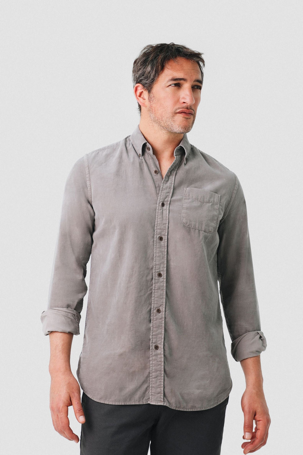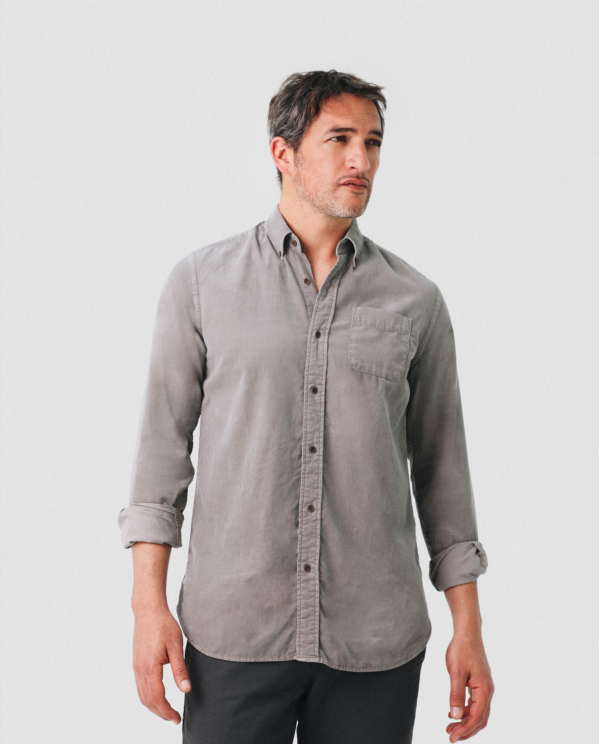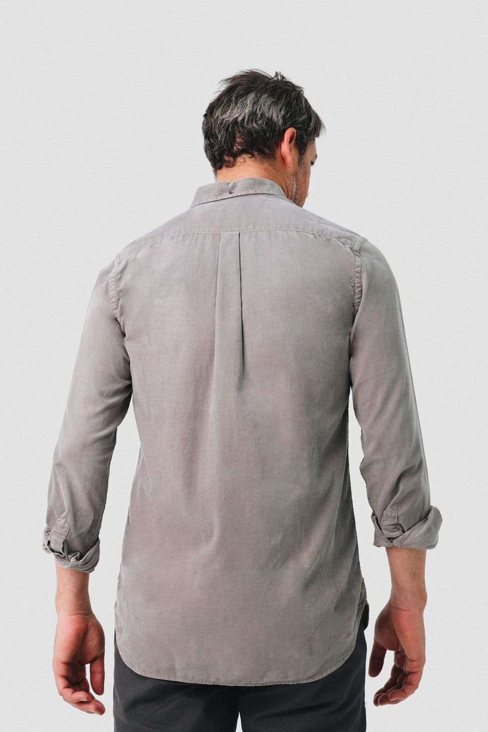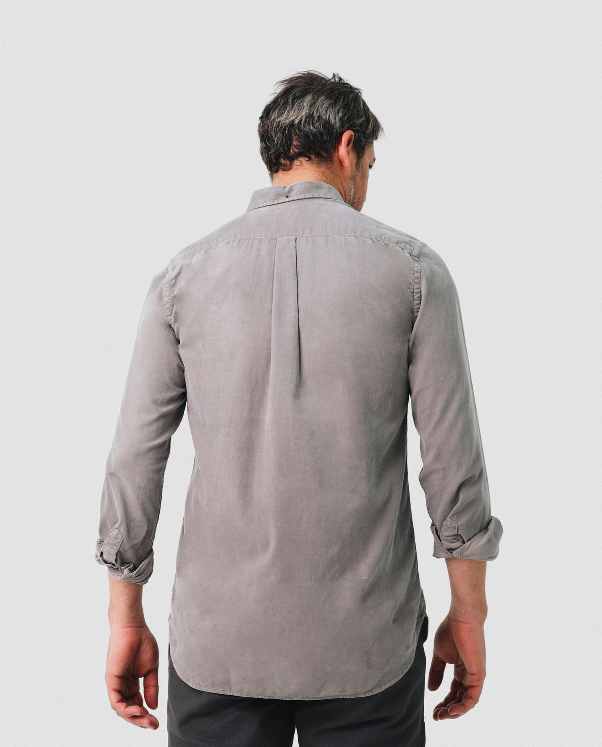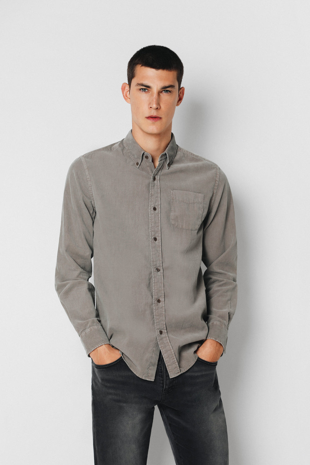 Camisa confeccionada en tejido de pana. Corte Regular Fit, cuello Button Down y cierre con botones. Manga larga terminada en puño simple, y bolsillo de plastrón en el pecho. Detalle de calavera bordada en el bajo de la tapeta.
