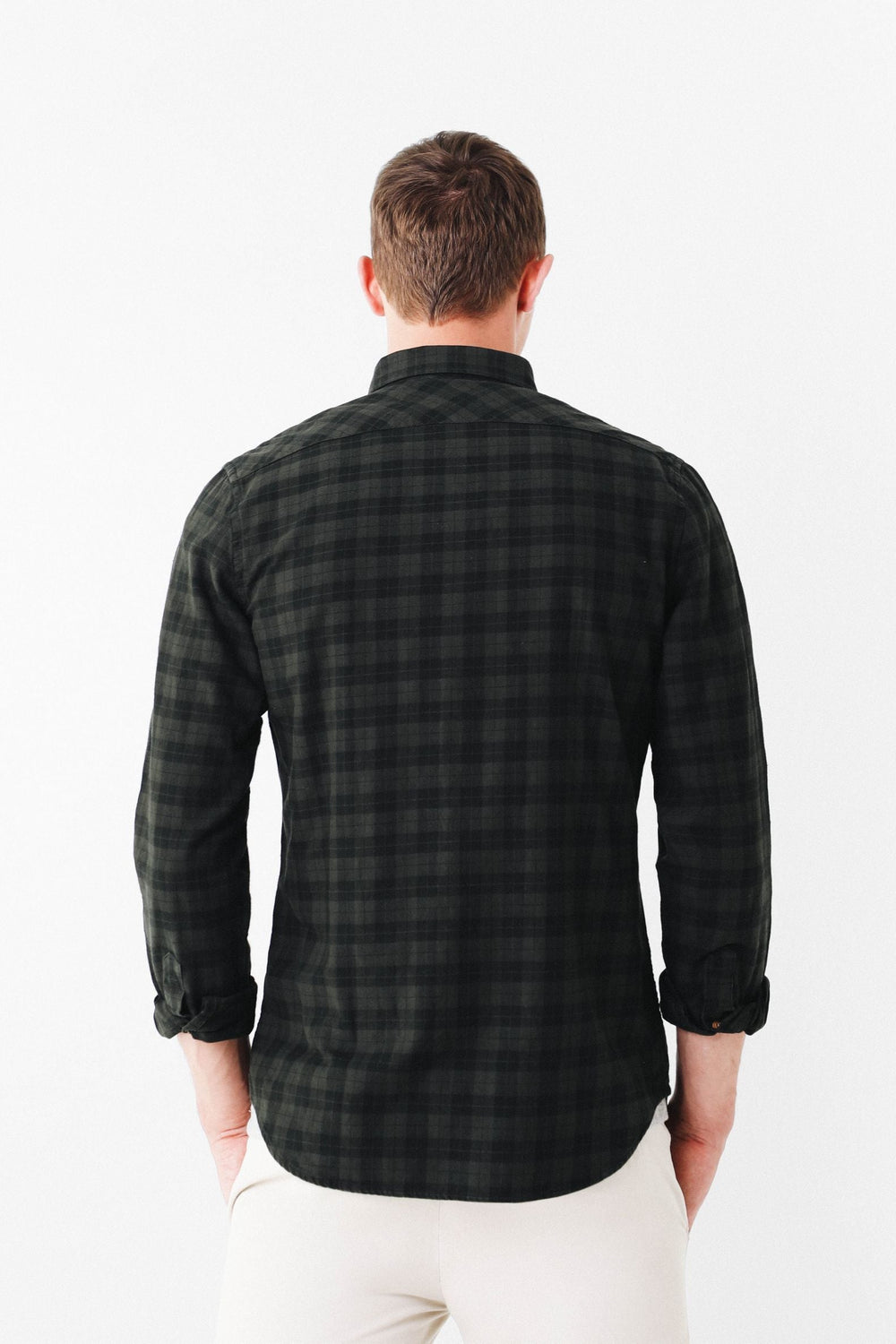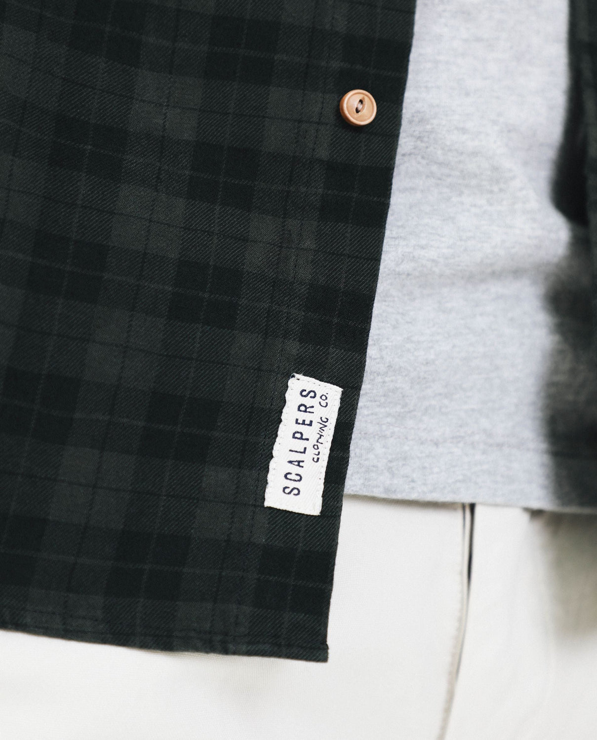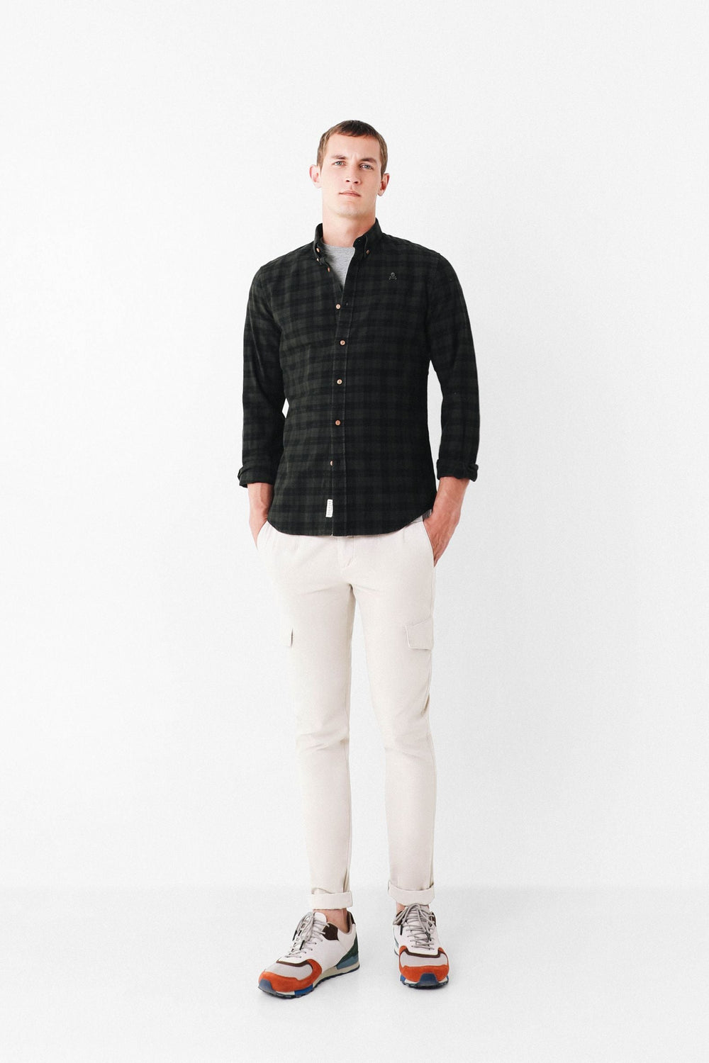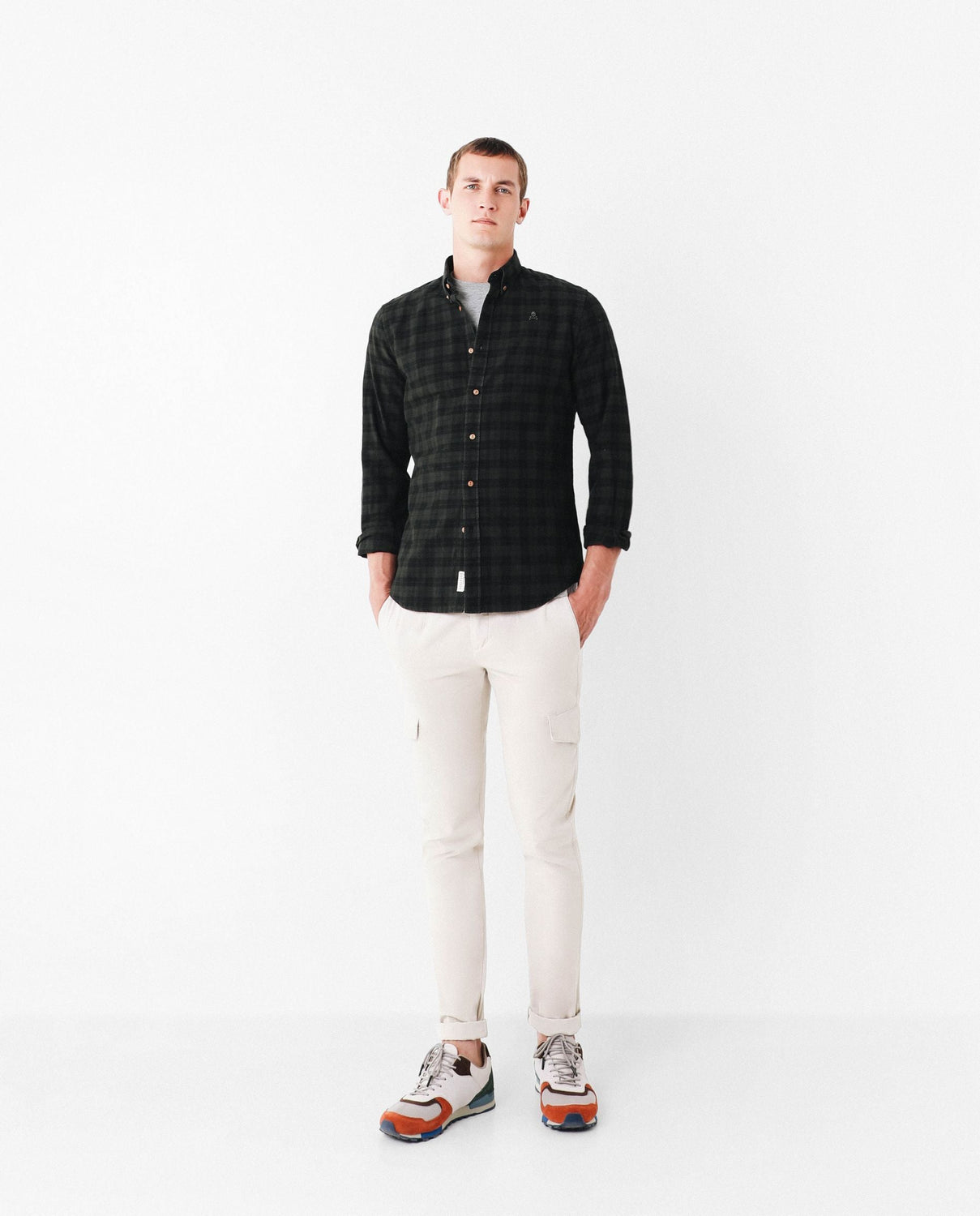 Camisa de cuadros garment dyed confeccionada en tejido 100% algodón. Corte Regular Fit, cuello Button Down y cierre con botones. Manga larga terminada en puño y detalle de calavera bordada en el pecho.
