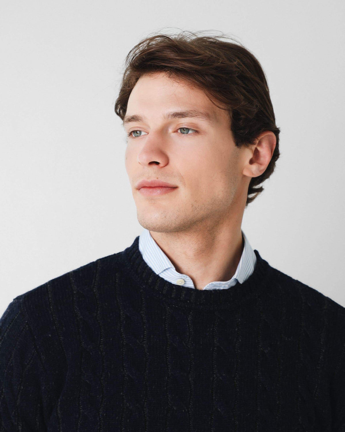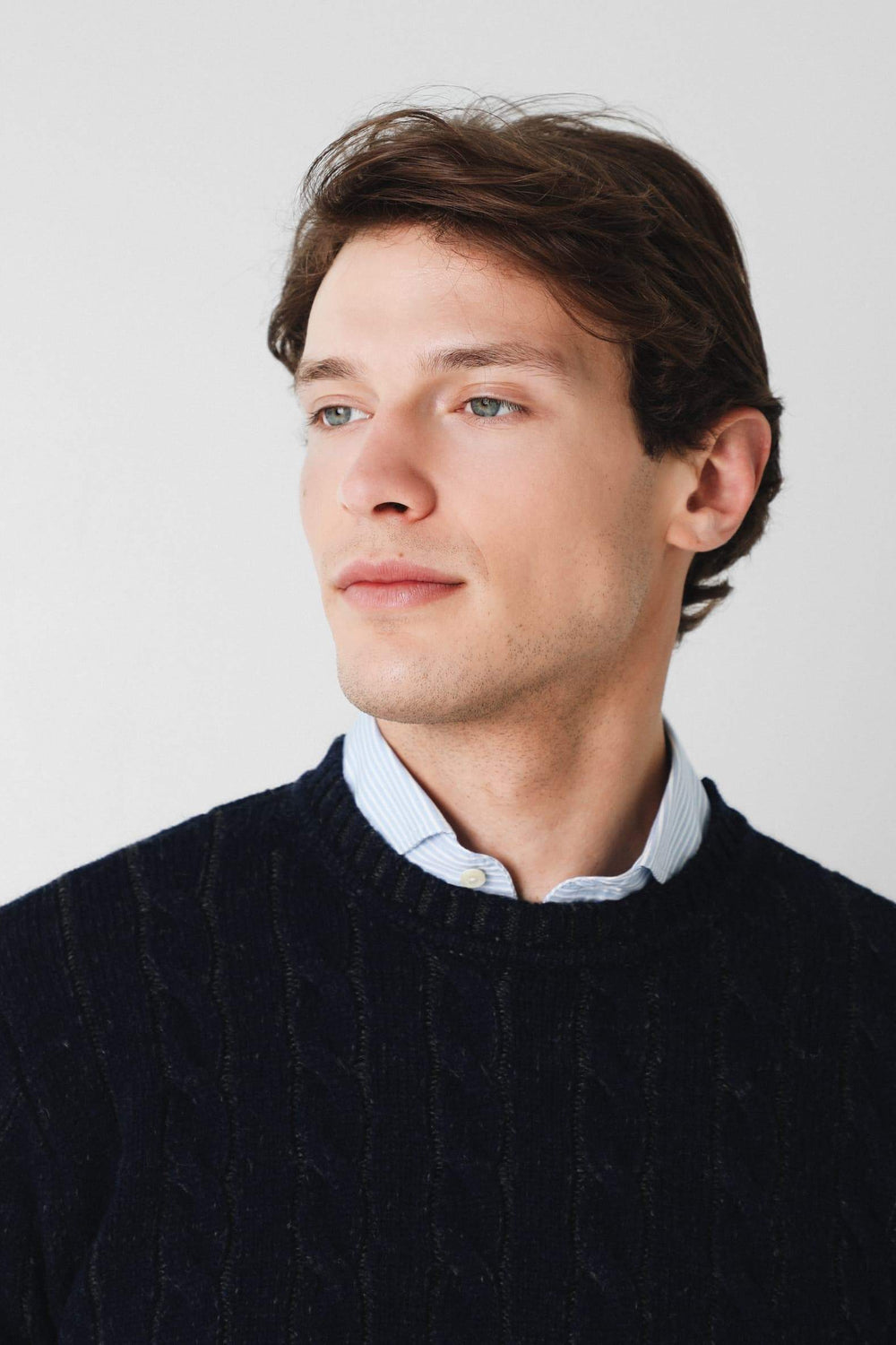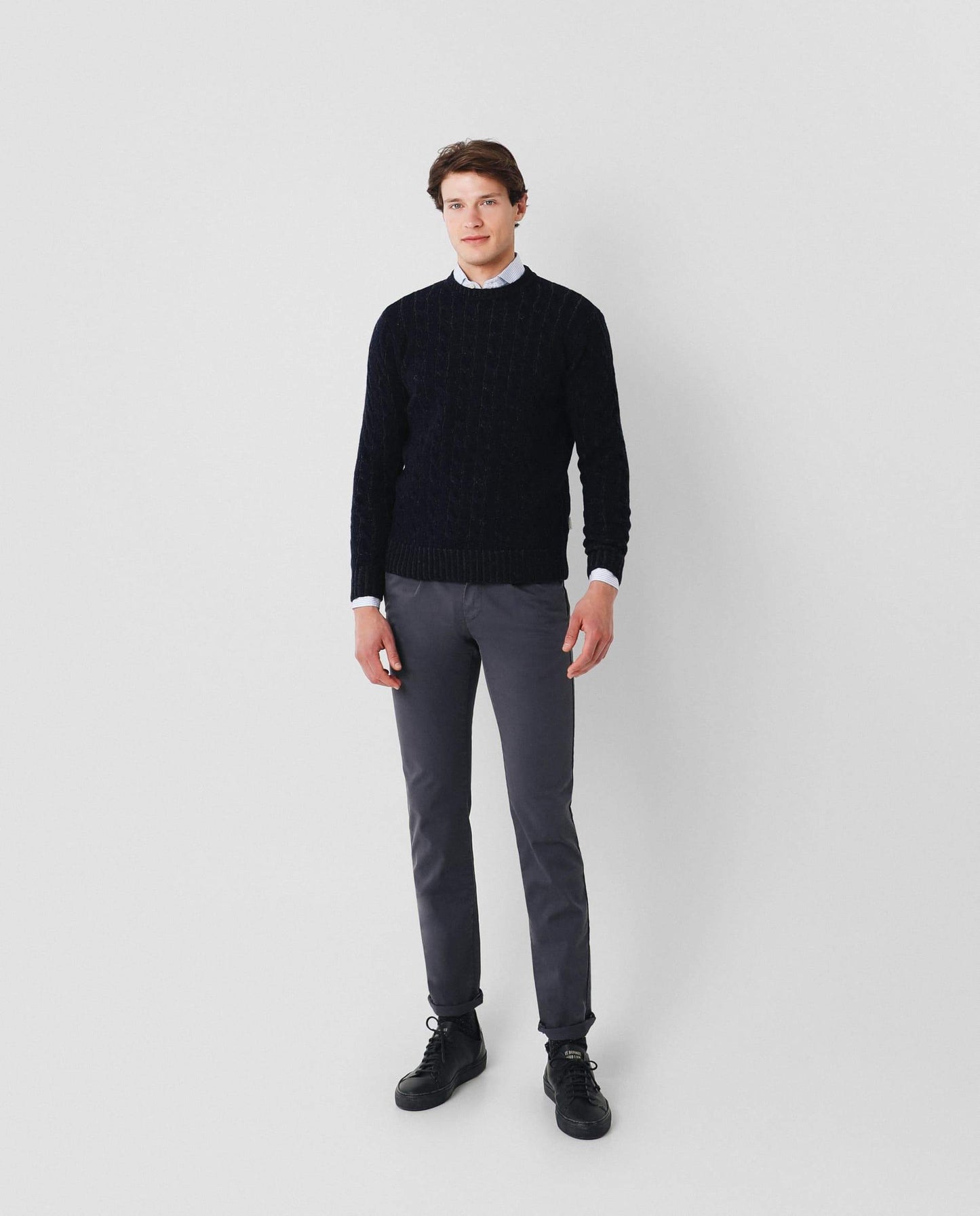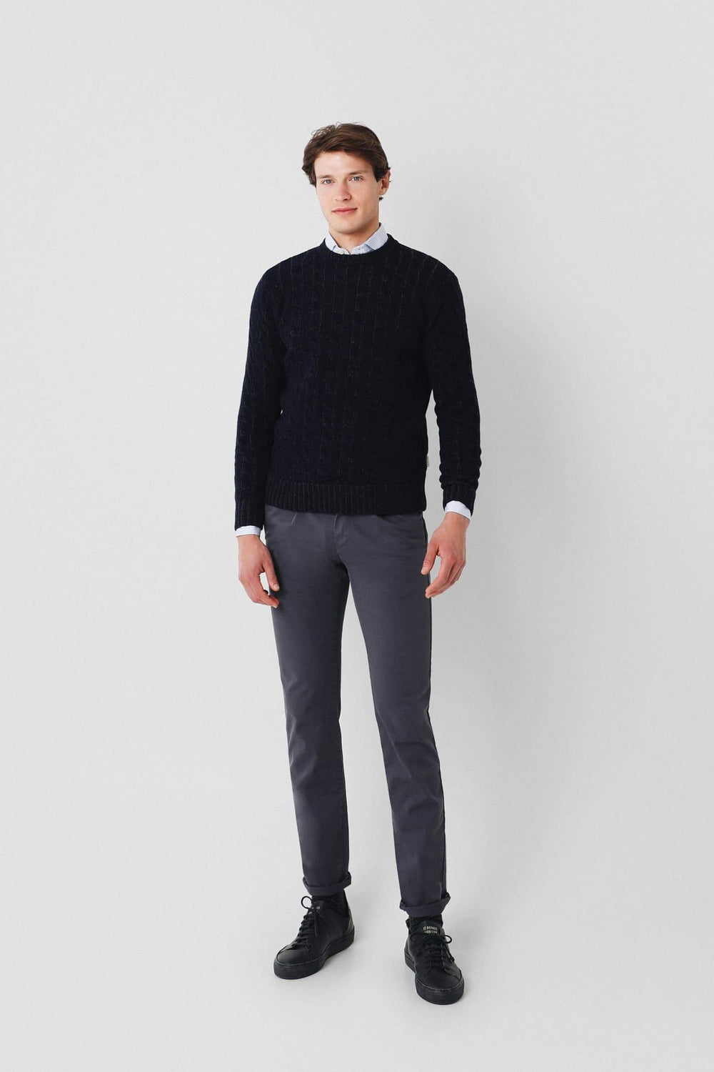 Jersey trenzado en dos tonos de hilo confeccionado en lana merino. Corte Regular Fit, cuello redondo y manga larga.