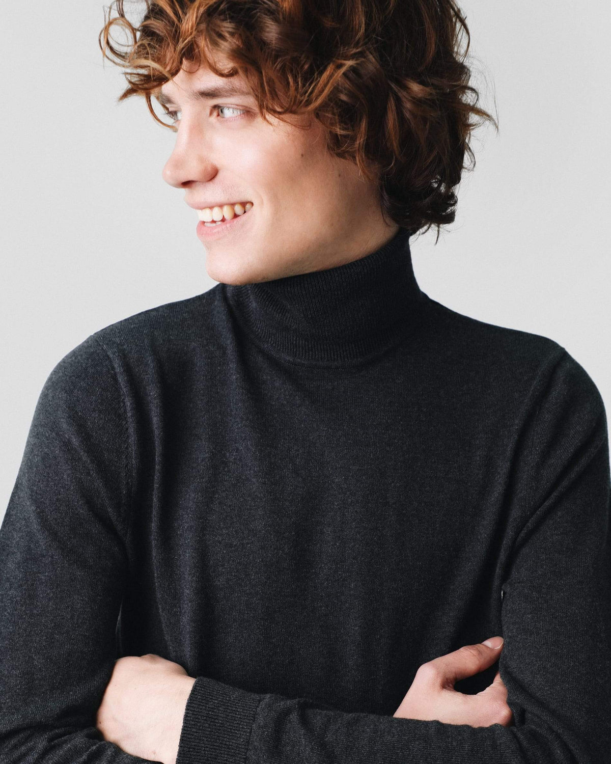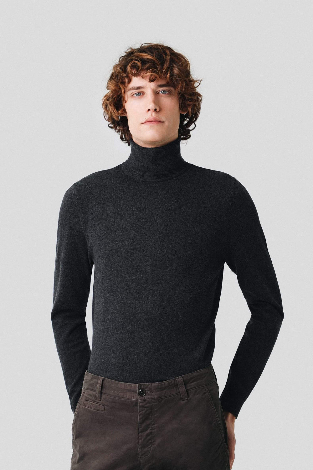 Jersey confeccionado en tejido de algodón y cashmere. Corte Regular Fit, cuello vuelto y manga larga. Detalle de calavera bordada en el bajo.