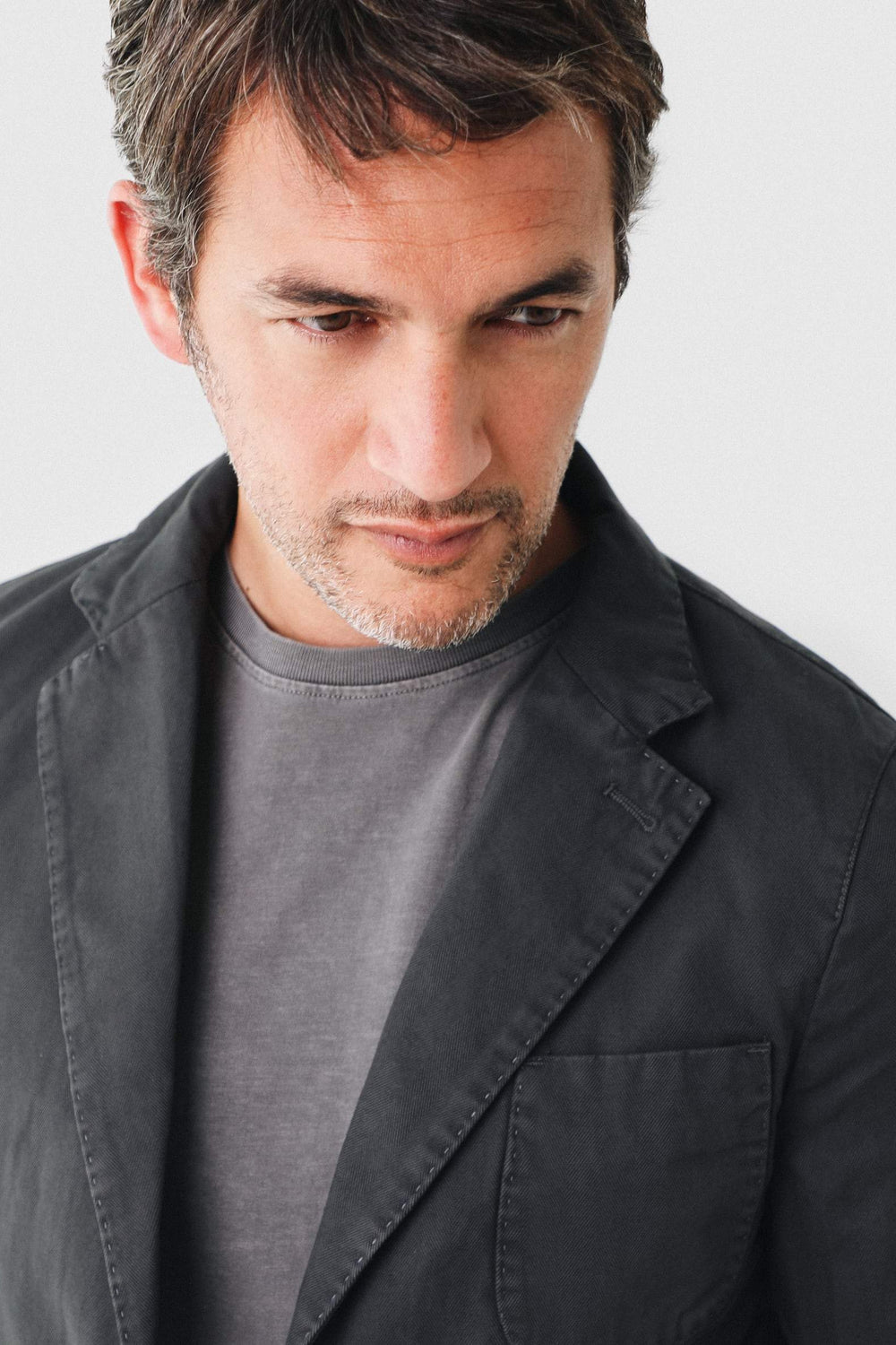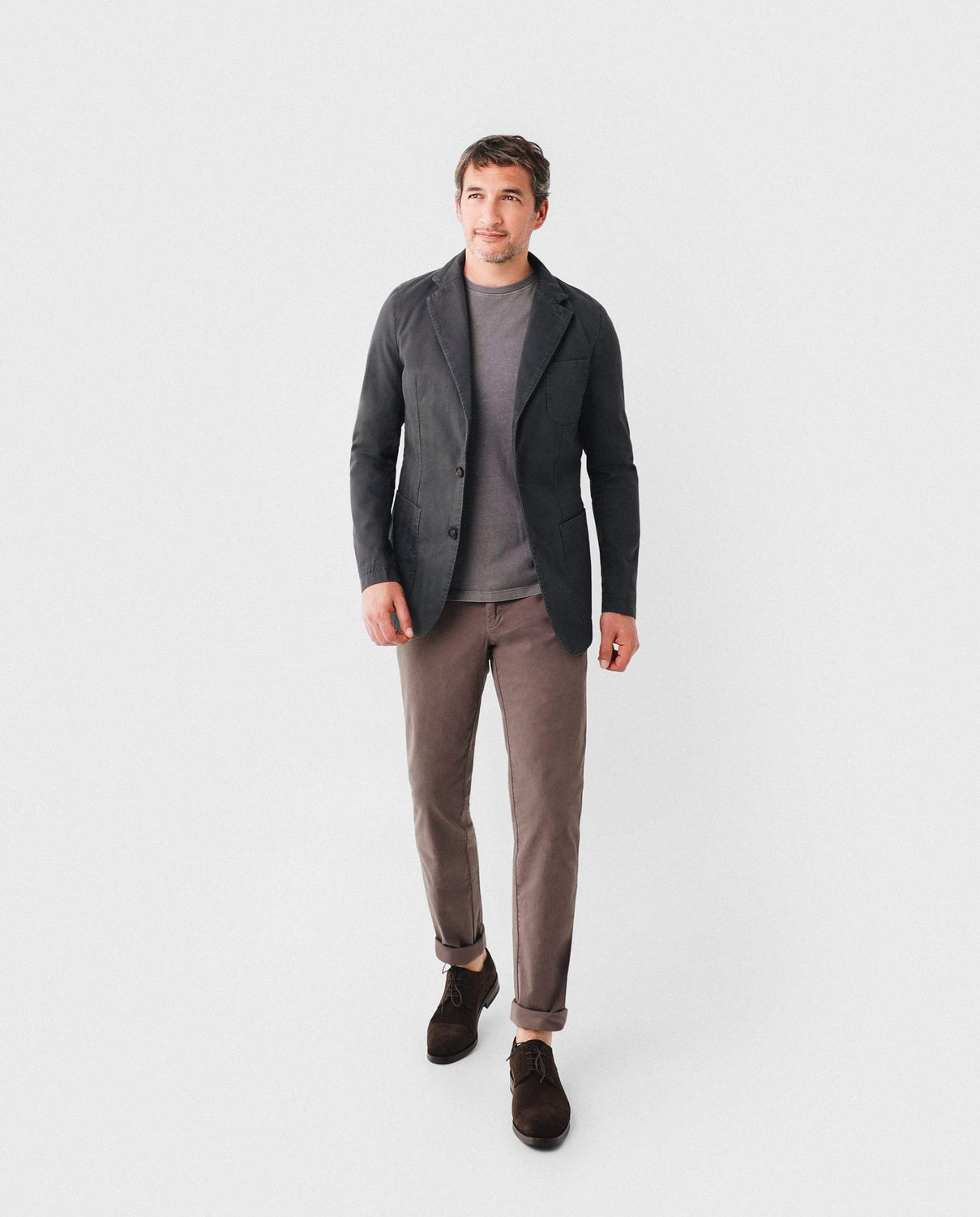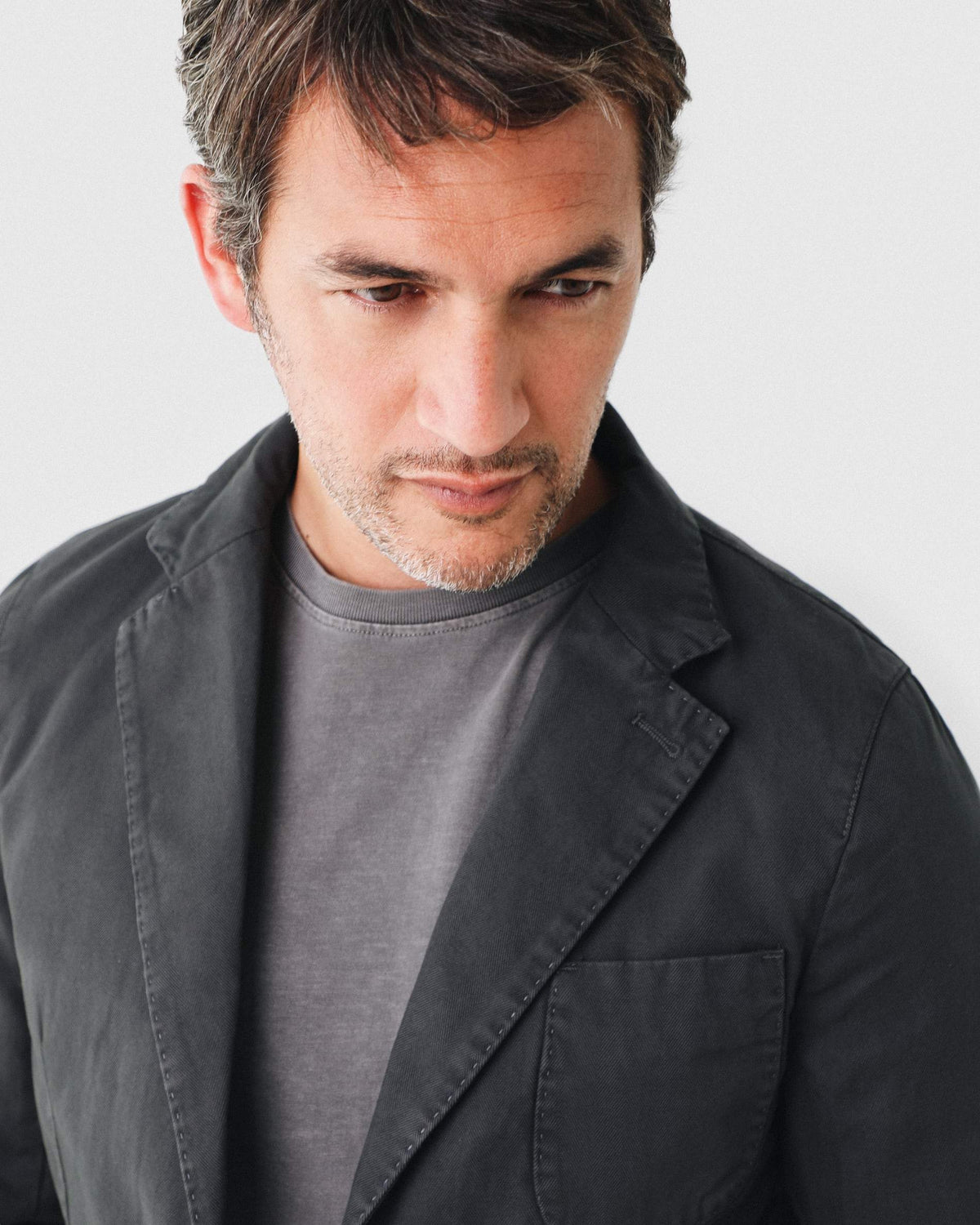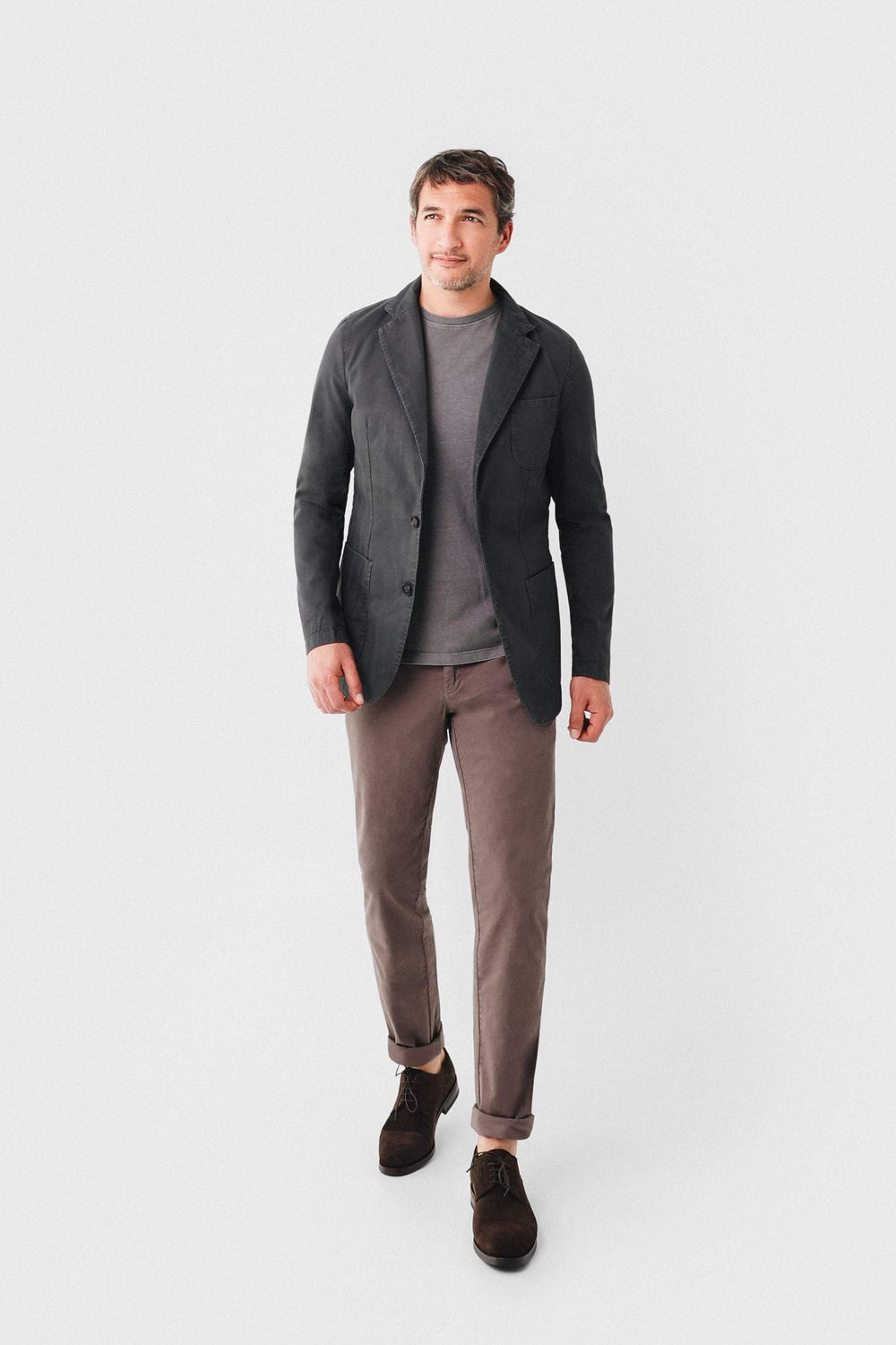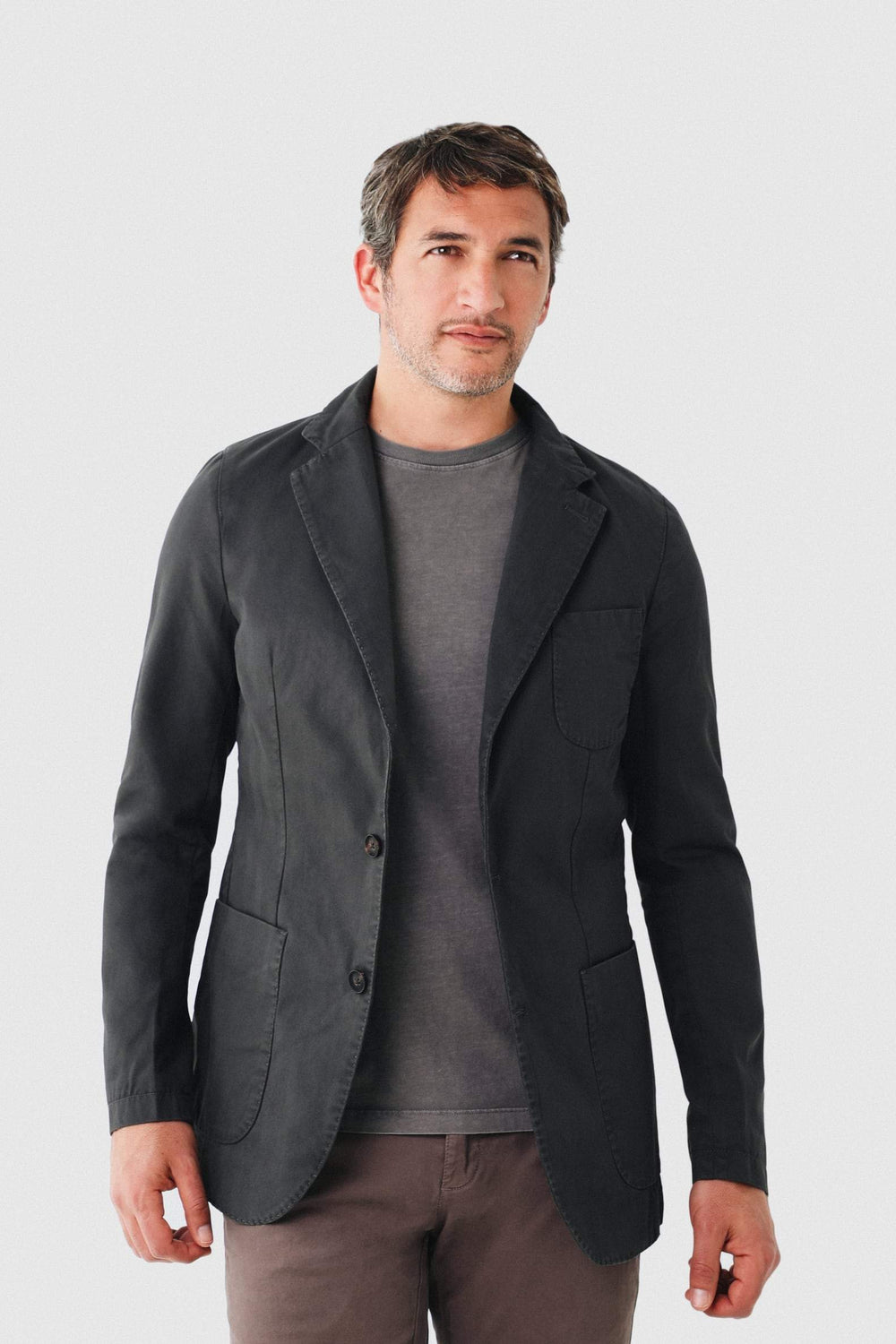 Blazer casual de corte regular fit, cierre con botones, cuello con solapas de muesca y bolsillos de plastrón.
